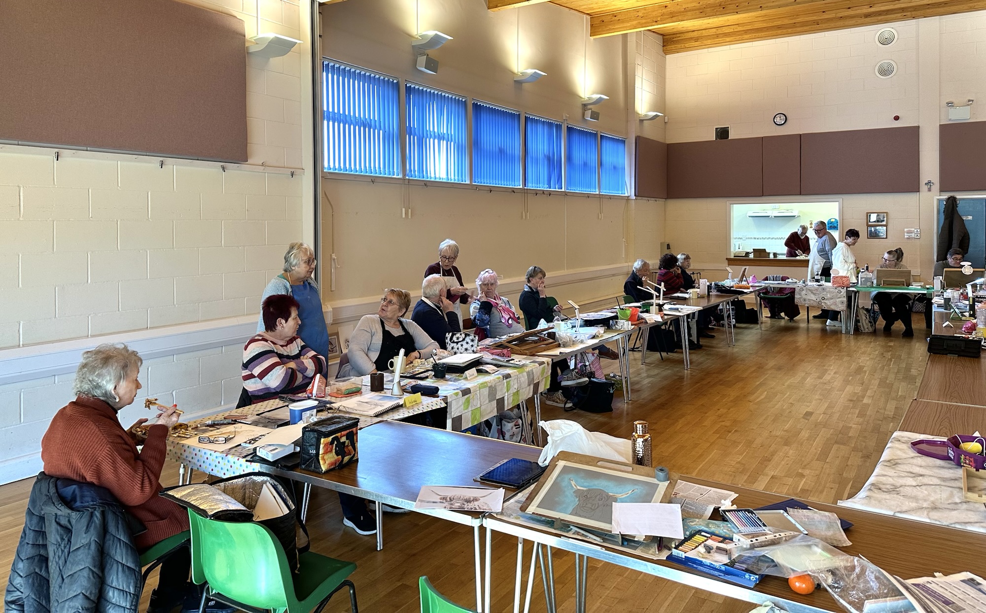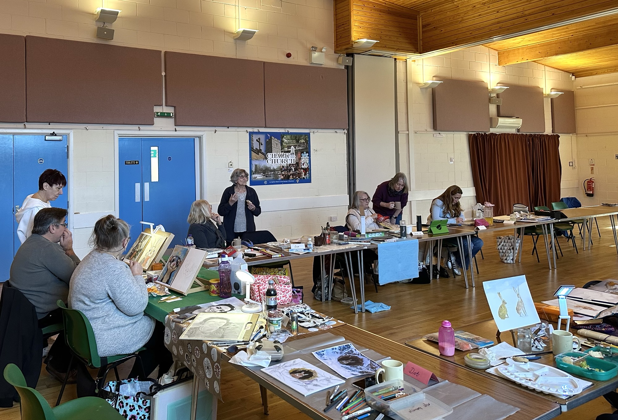 Our annual Open Day had 23 artists painting at the hall, 22 members and a young friend of one member being creative with us to see if she’d like to join the group. We welcomed about 40 friends, family, local residents and people who had seen the Open Day advertised on social media.