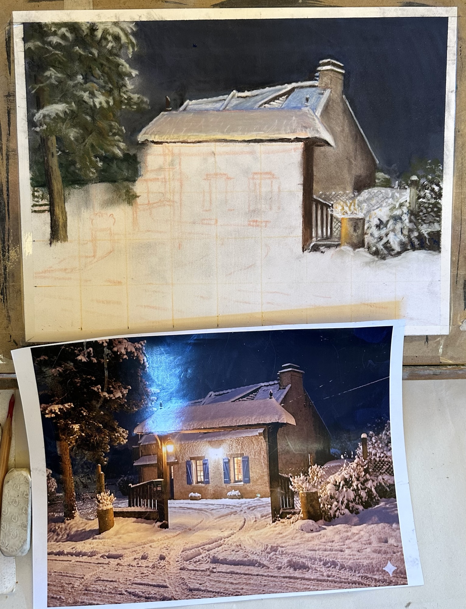 Soft Pastels and Pastel pencils on White Pastelmat