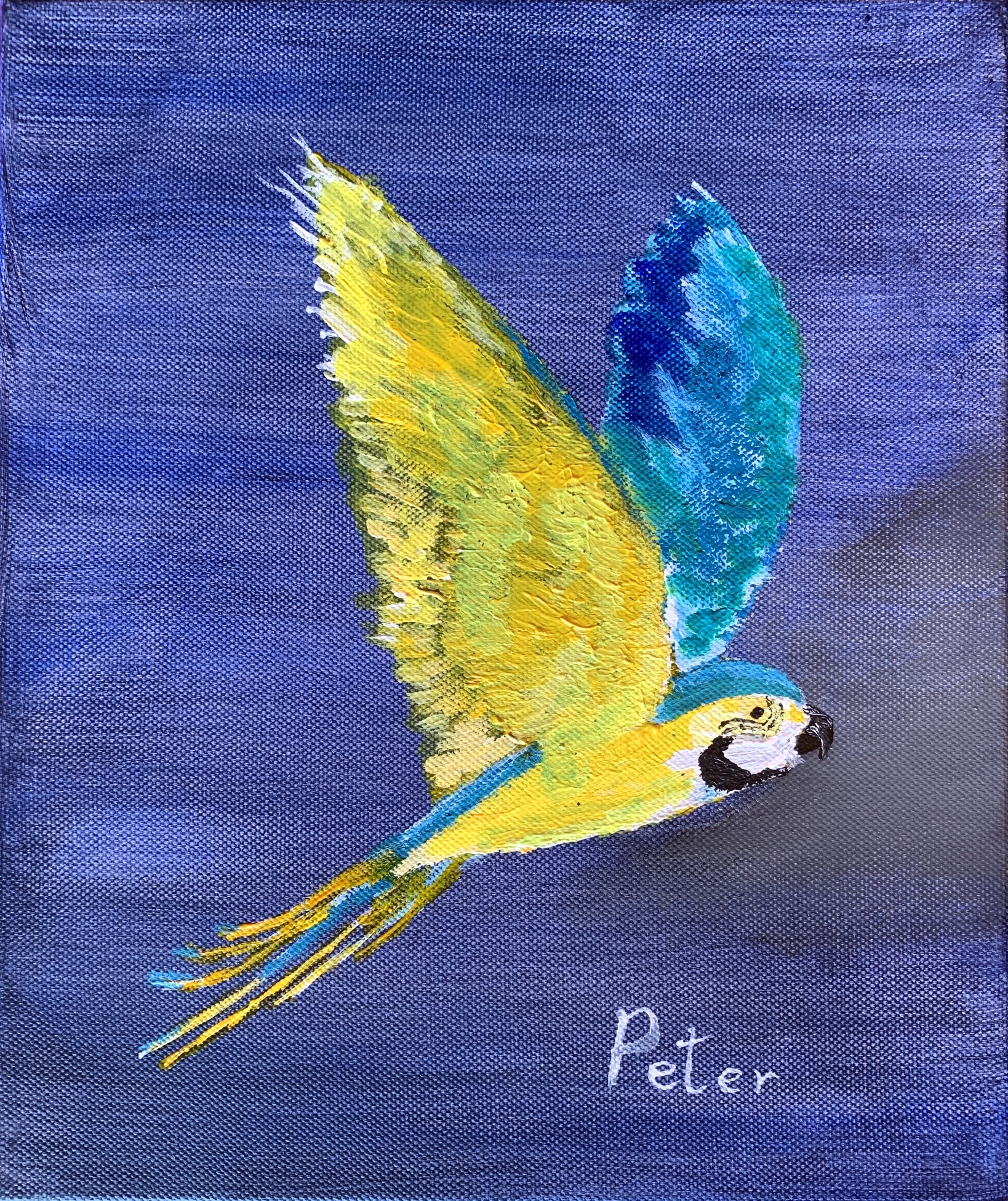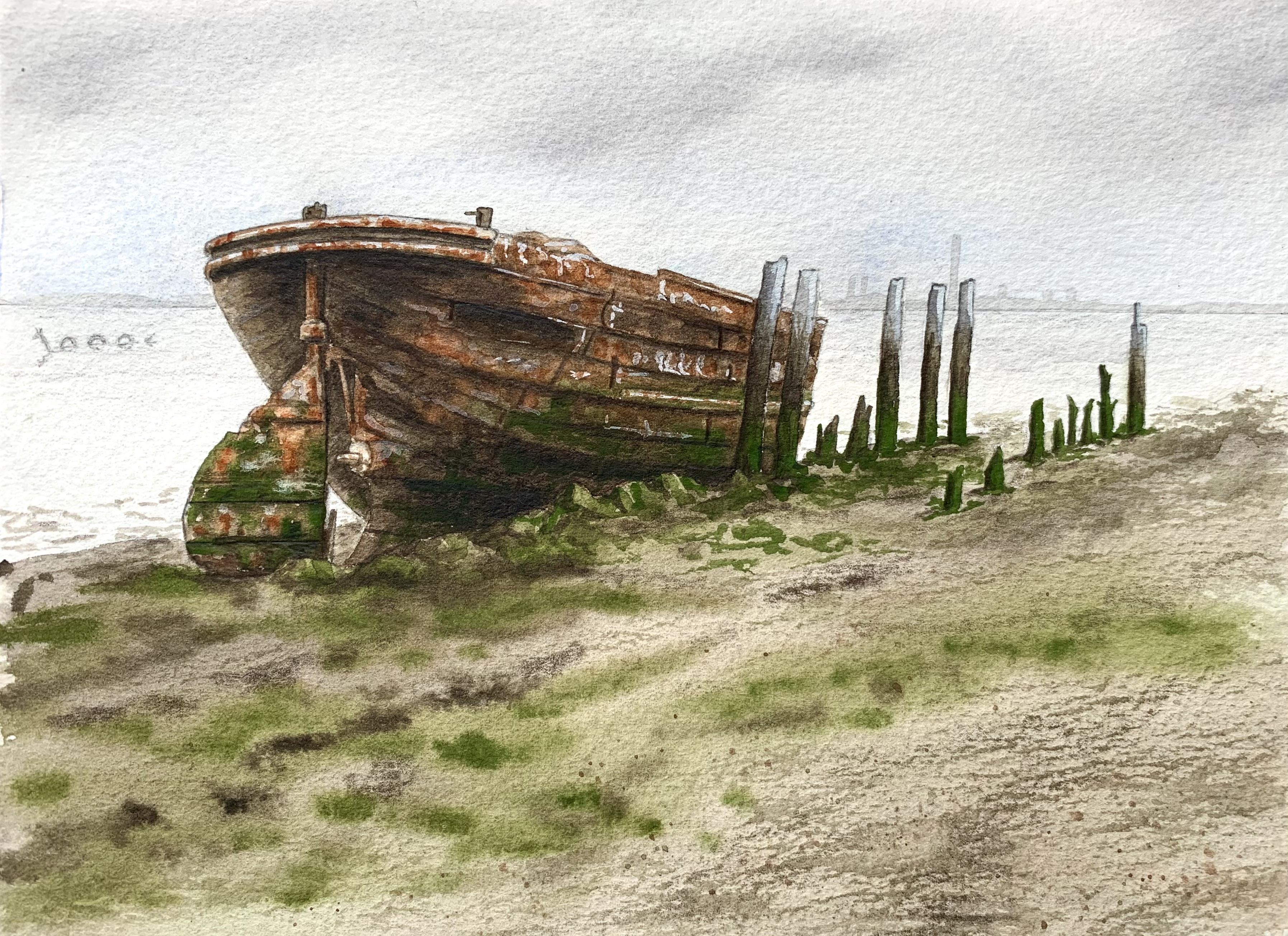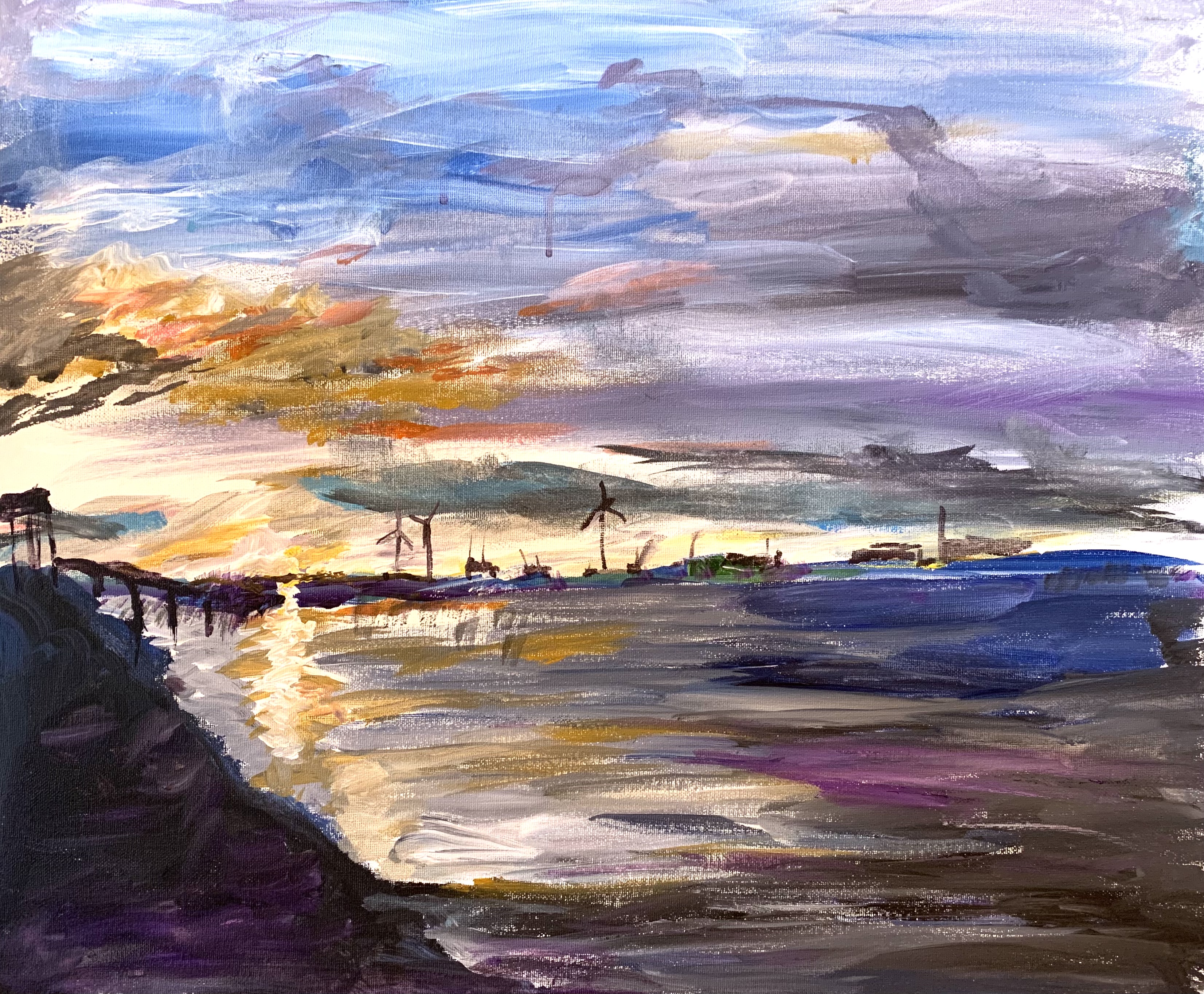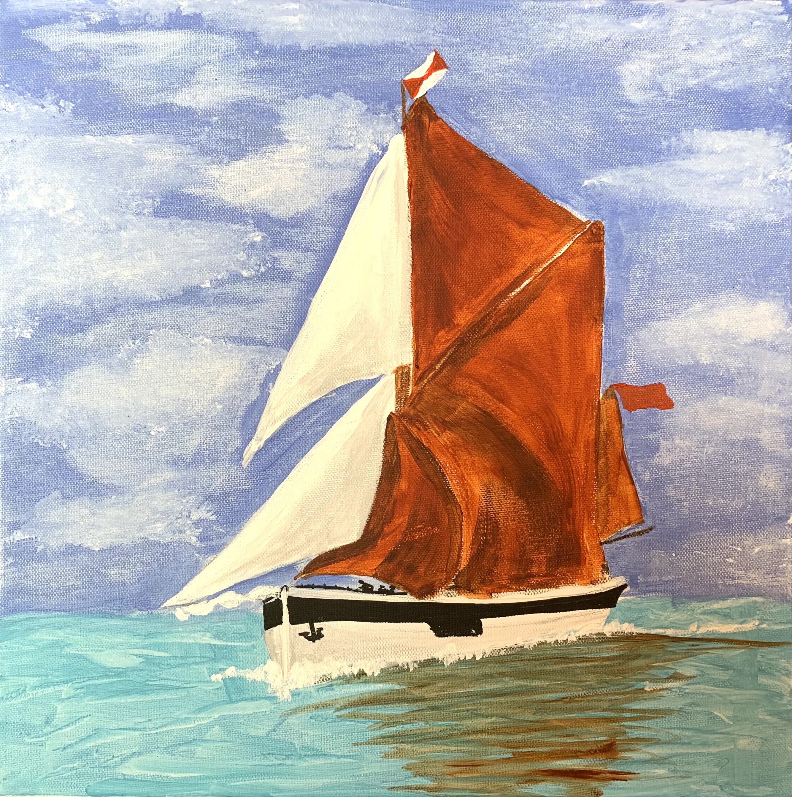 The suggested subjects were the Thames Estuary and the goddess Juno. The Thames was painted in London and along the north Kent coast, with big skies and wide waters. There were sailing and abandoned boats and barges, flowers, birds, fish and the Dartford Bridge. Members also painted their own choice of subject which is always welcome, to enjoy seeing how creative you are. (Any paintings of Brian May for the PAOTM will be posted at the end of the month.)
