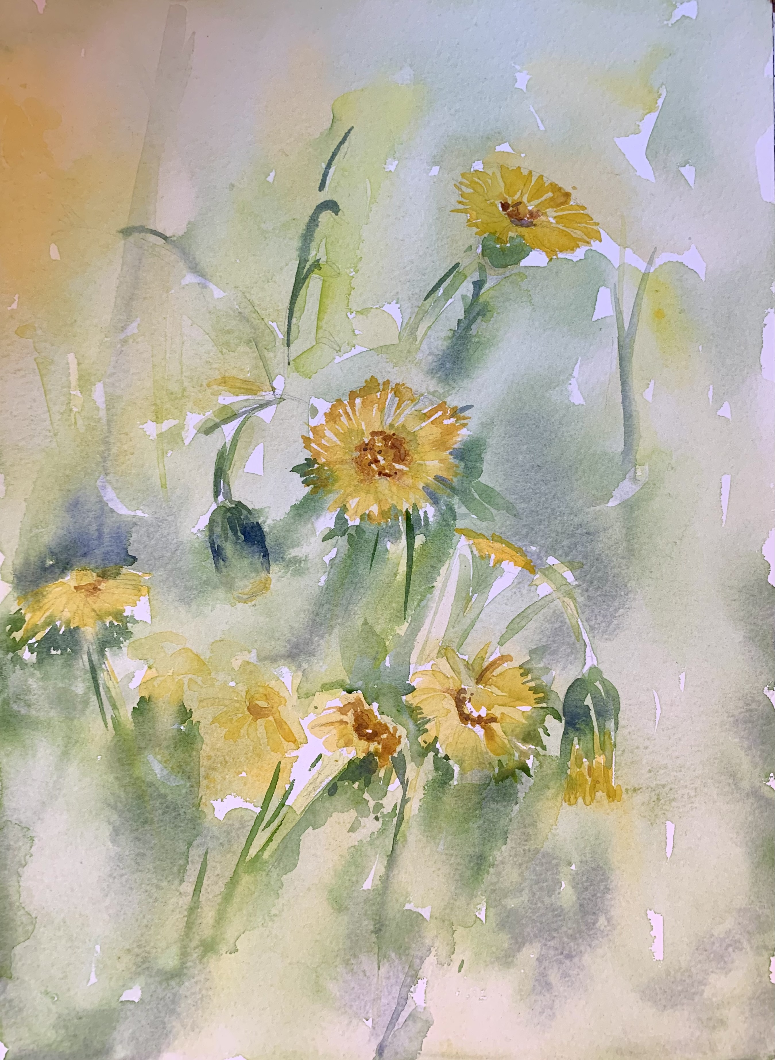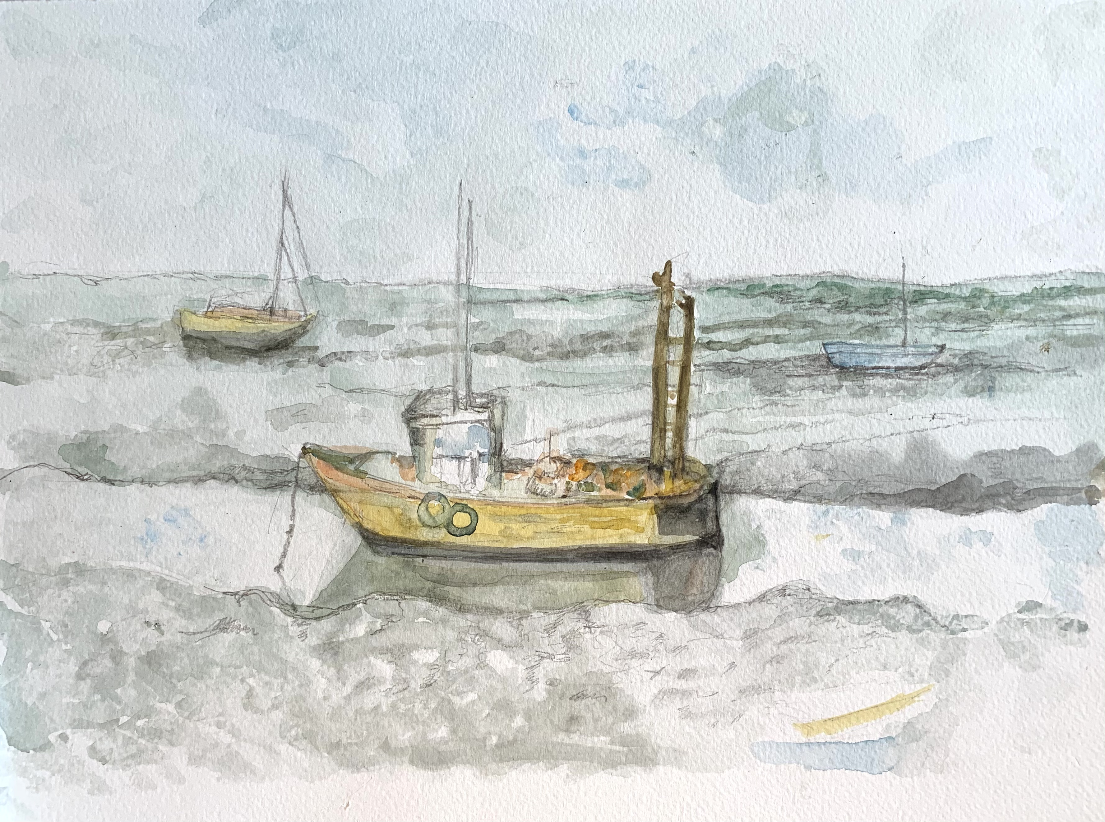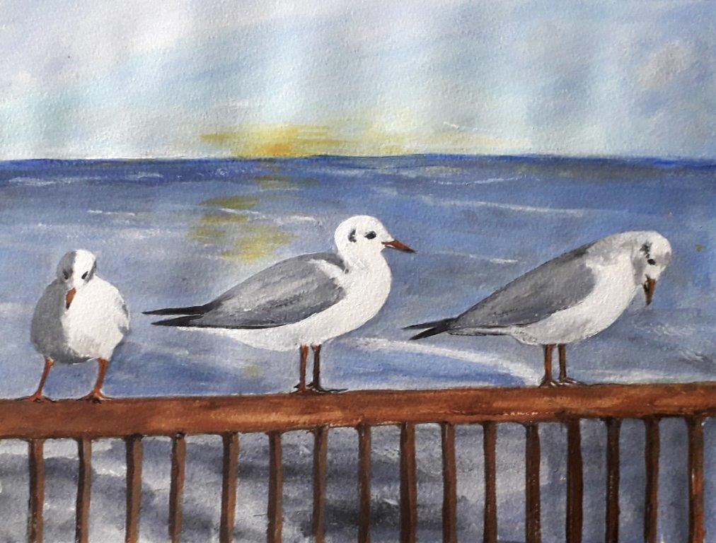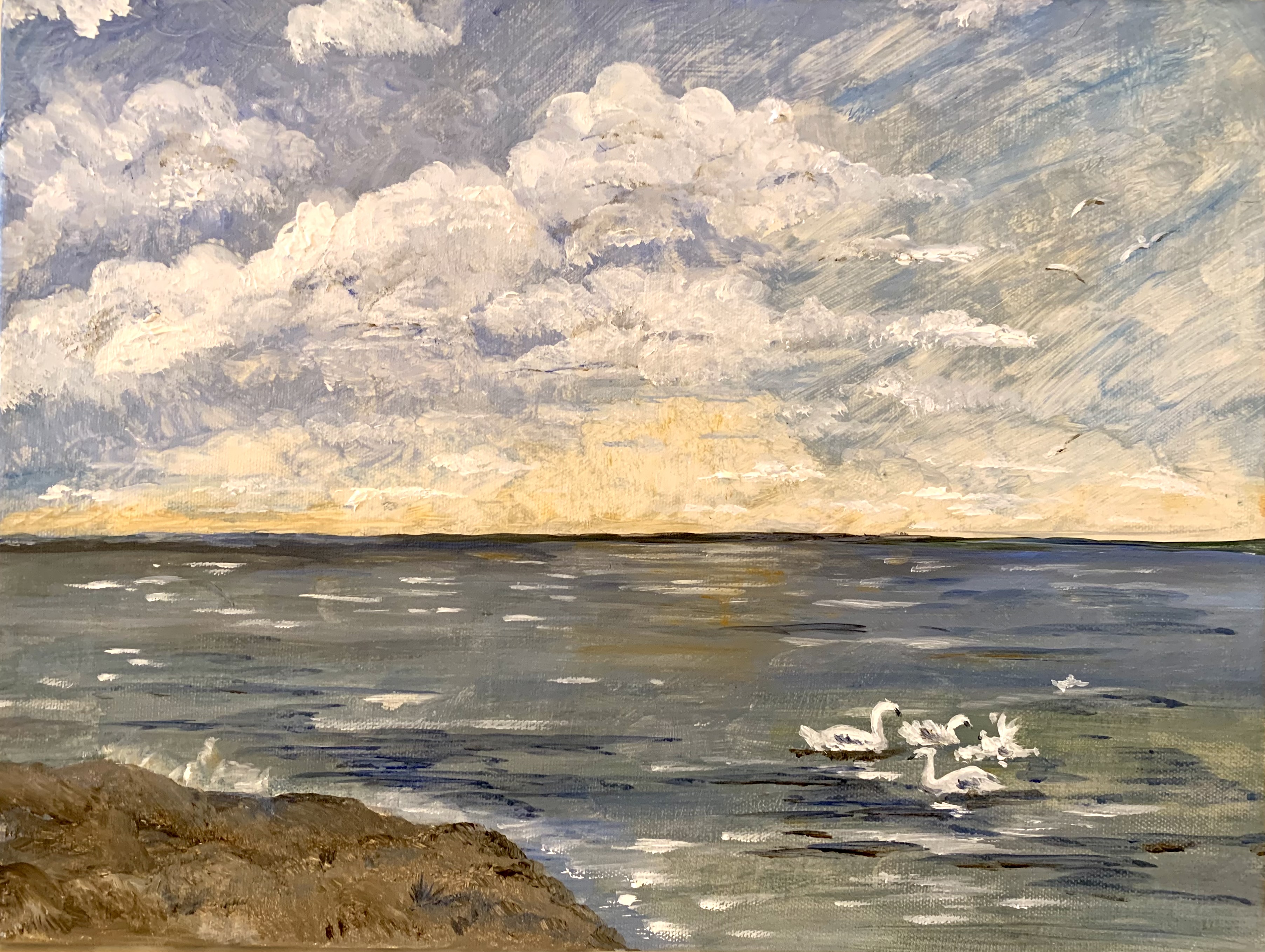 The suggested subjects were the Thames Estuary and the goddess Juno. The Thames was painted in London and along the north Kent coast, with big skies and wide waters. There were sailing and abandoned boats and barges, flowers, birds, fish and the Dartford Bridge. Members also painted their own choice of subject which is always welcome, to enjoy seeing how creative you are. (Any paintings of Brian May for the PAOTM will be posted at the end of the month.)