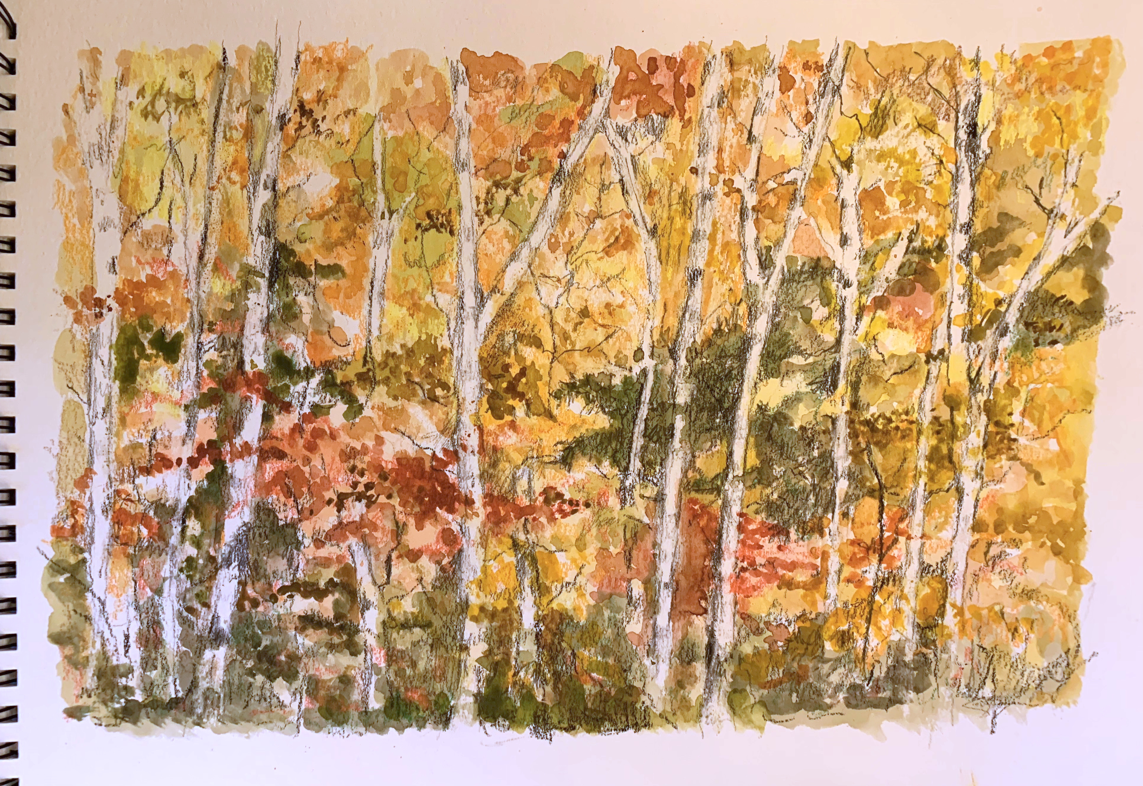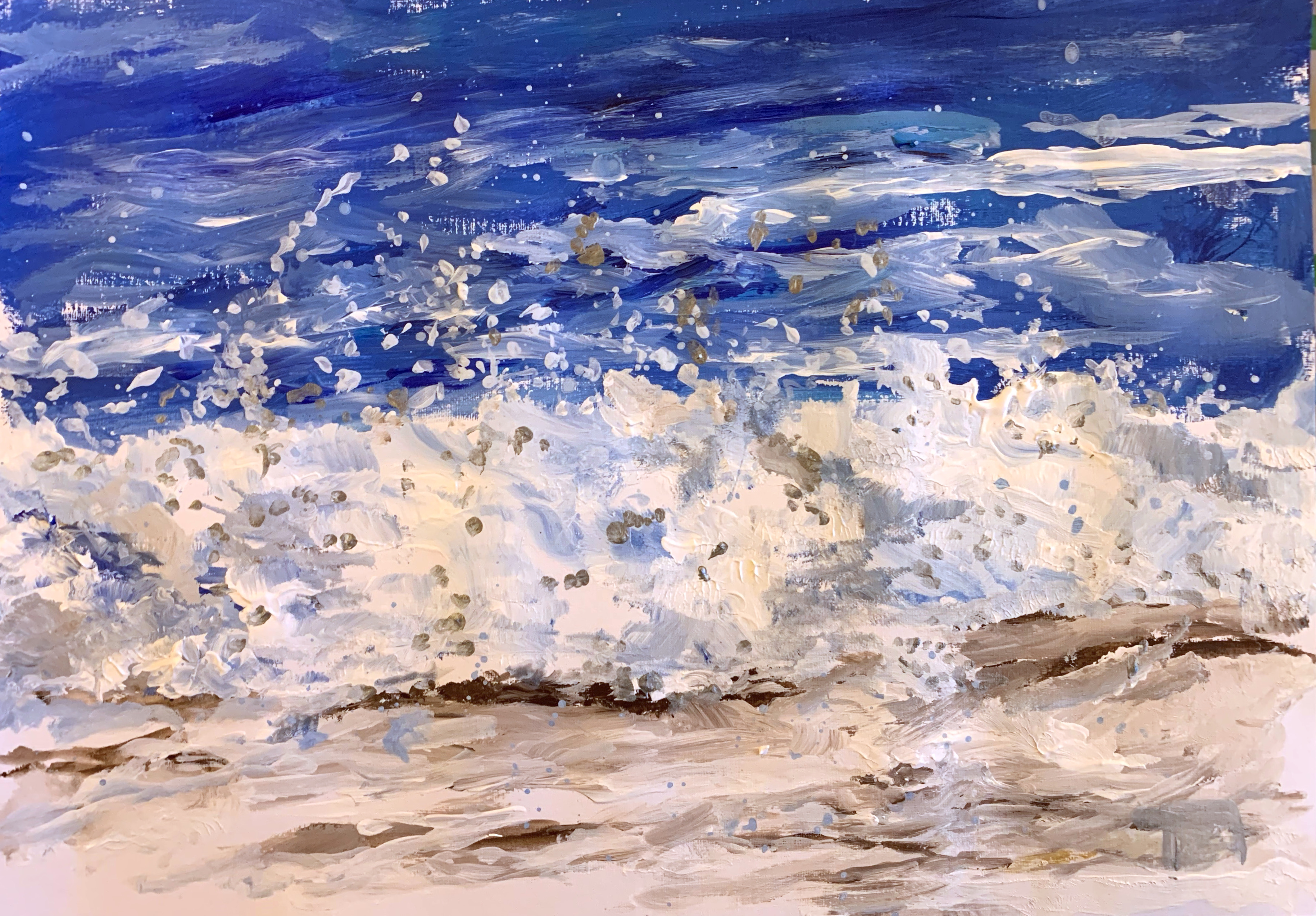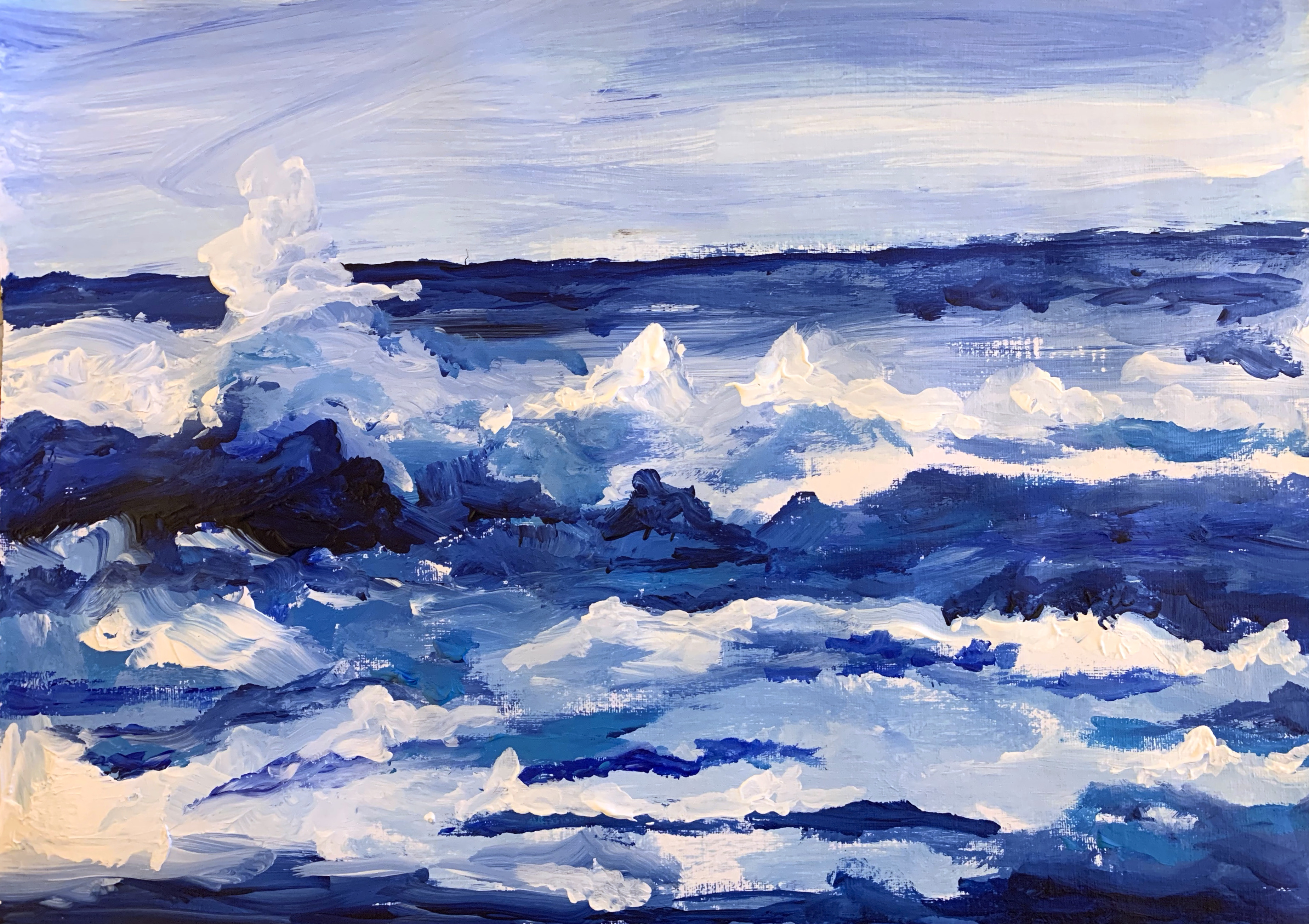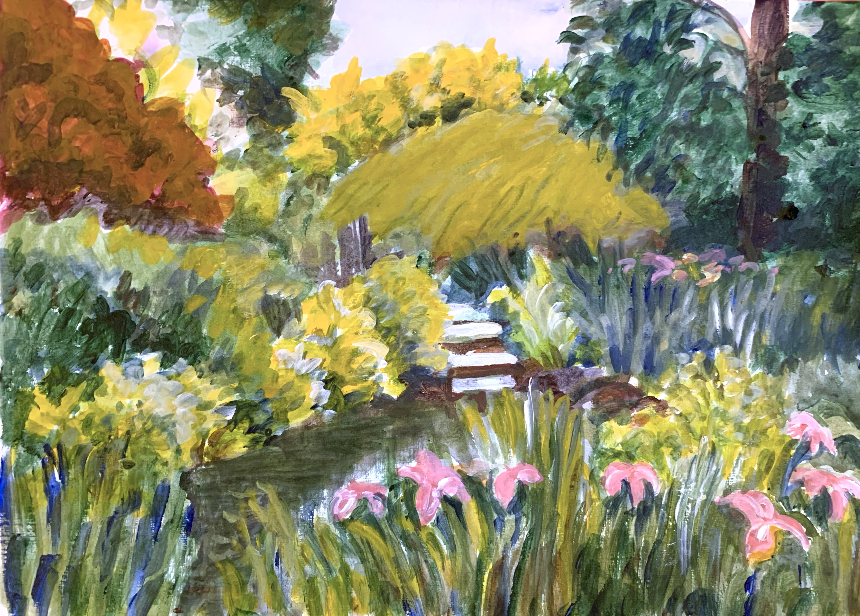 This painting is watercolour and ink on Bockingford watercolour paper. Inspired by a view Steve photographed looking west from Gravesend it’s an industrial scene and beautiful sunset with a little artistic licence. From monocrome to saturated colour, they’re super pictures, well done!