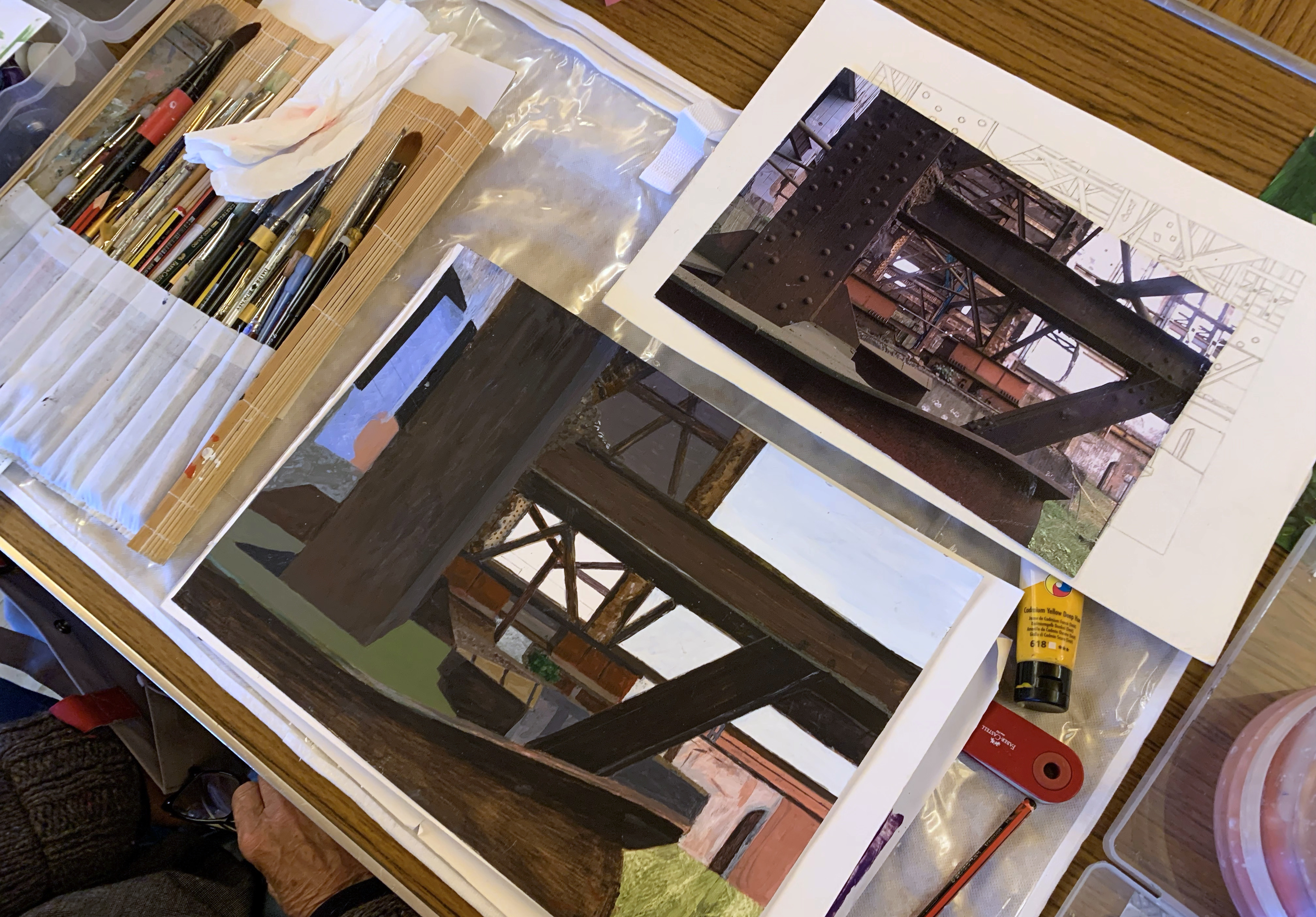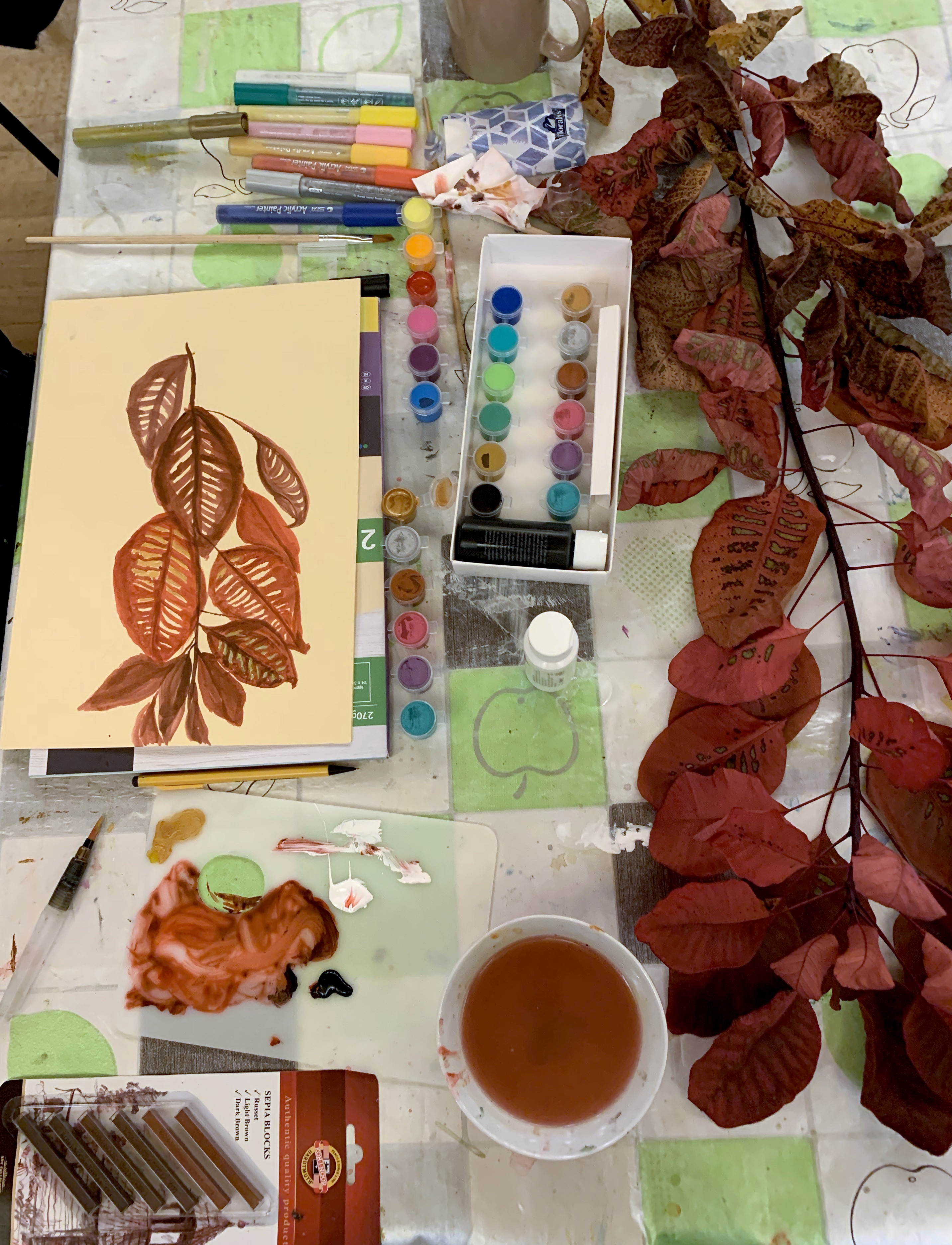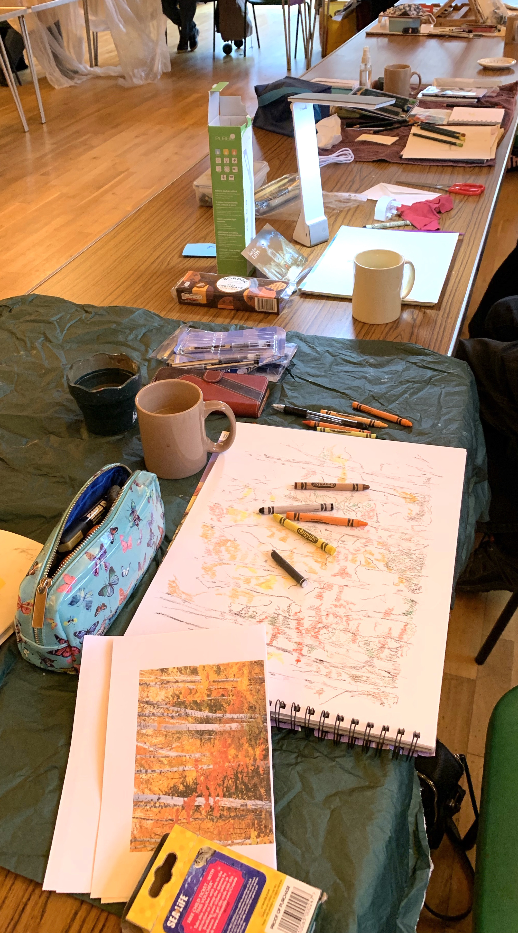 Eighteen members attended the day and some managed to paint whilst others didn’t get to open their paintboxes as the day was so busy! One member was visited by her delightful grandchildren and they stayed and created some paintings of their own. Possible M&C members for the future?