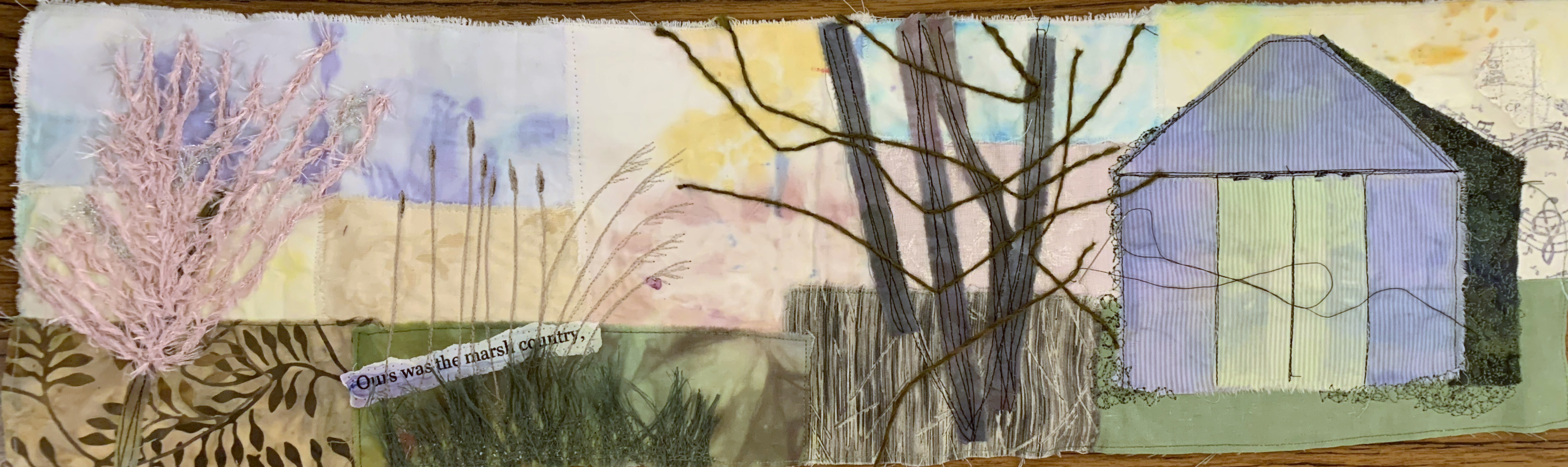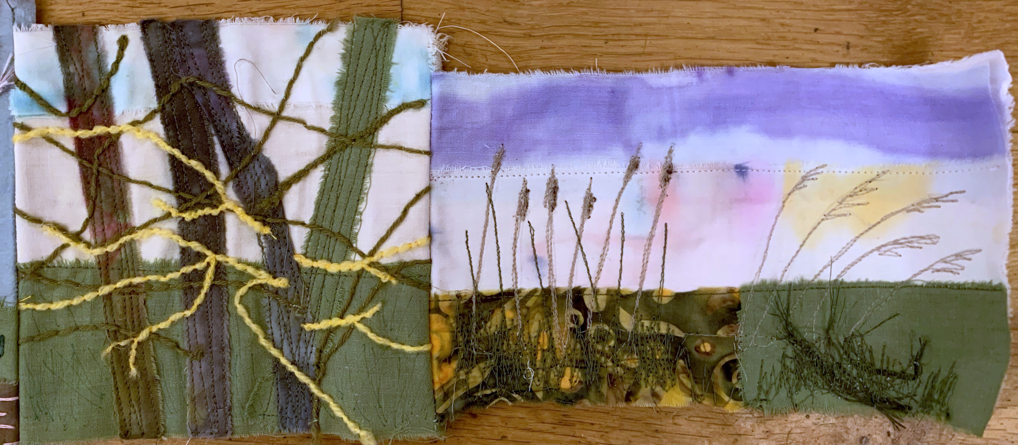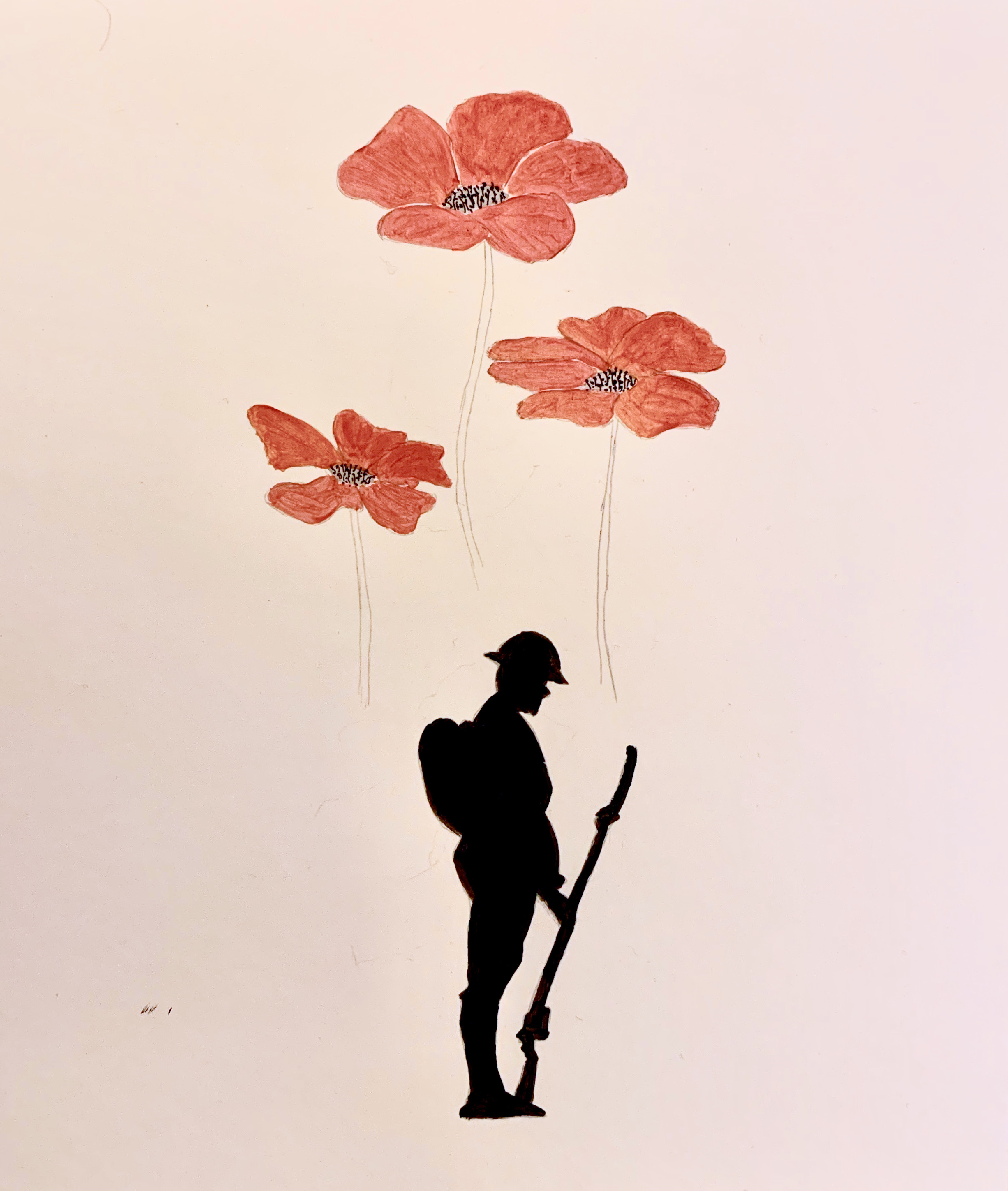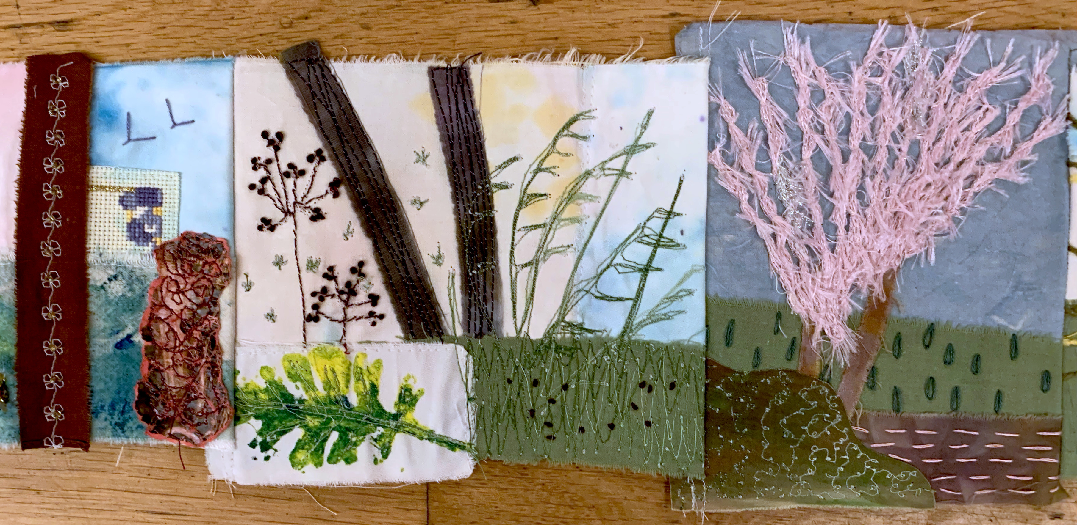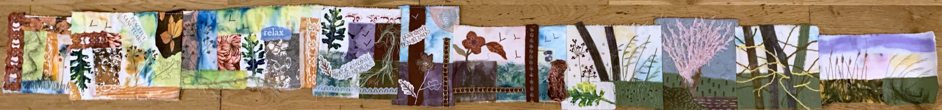 On Remembrance Day it’s apt to post these photos of paintings created last night of a soldier’s silhouette and poppies. Members also painted autumnal and winter scenes, embroidered panels of fabric which had been stamped, coloured and painted and carried on with paintings they want to get finished for our Open Day on Saturday 27th November.