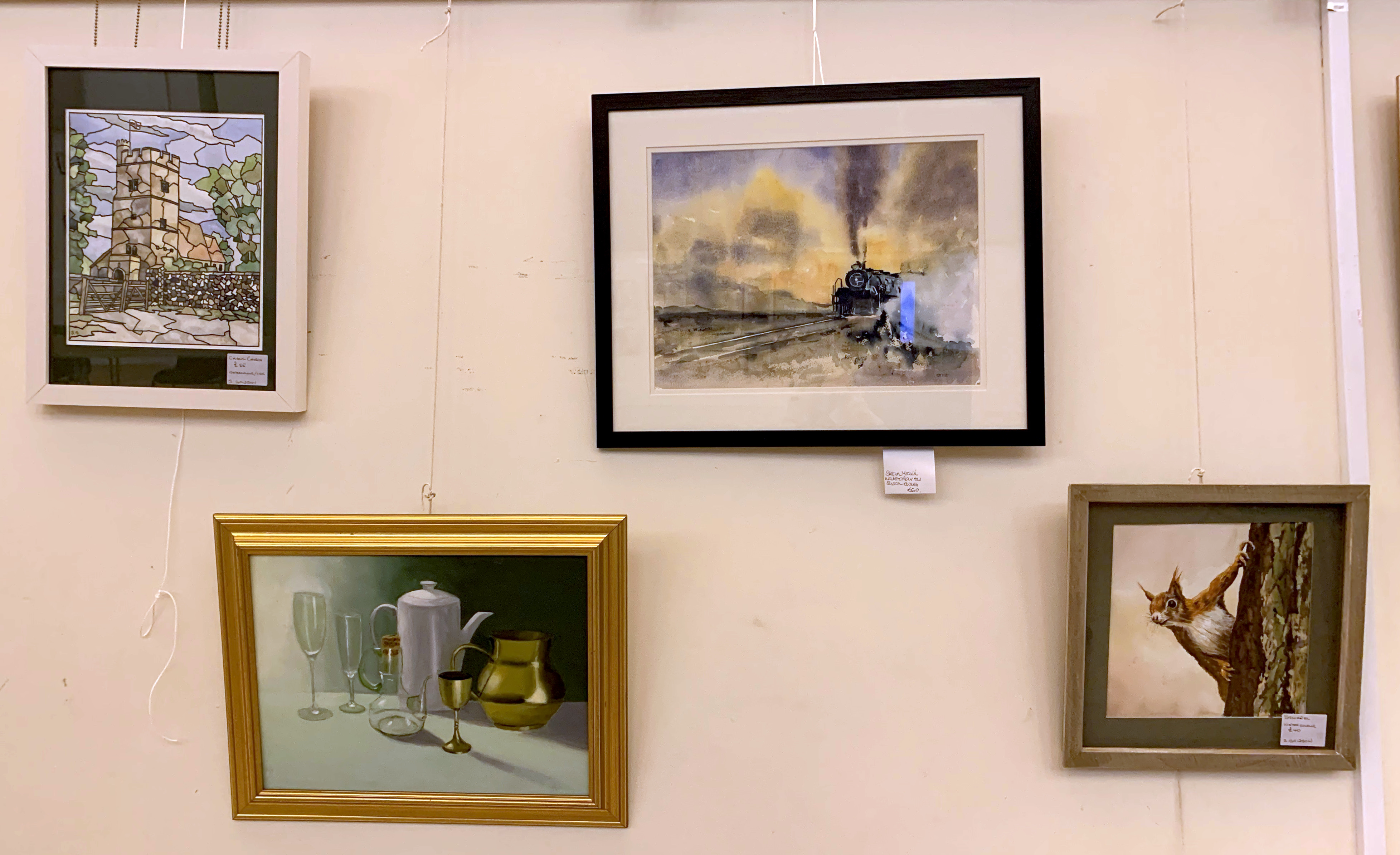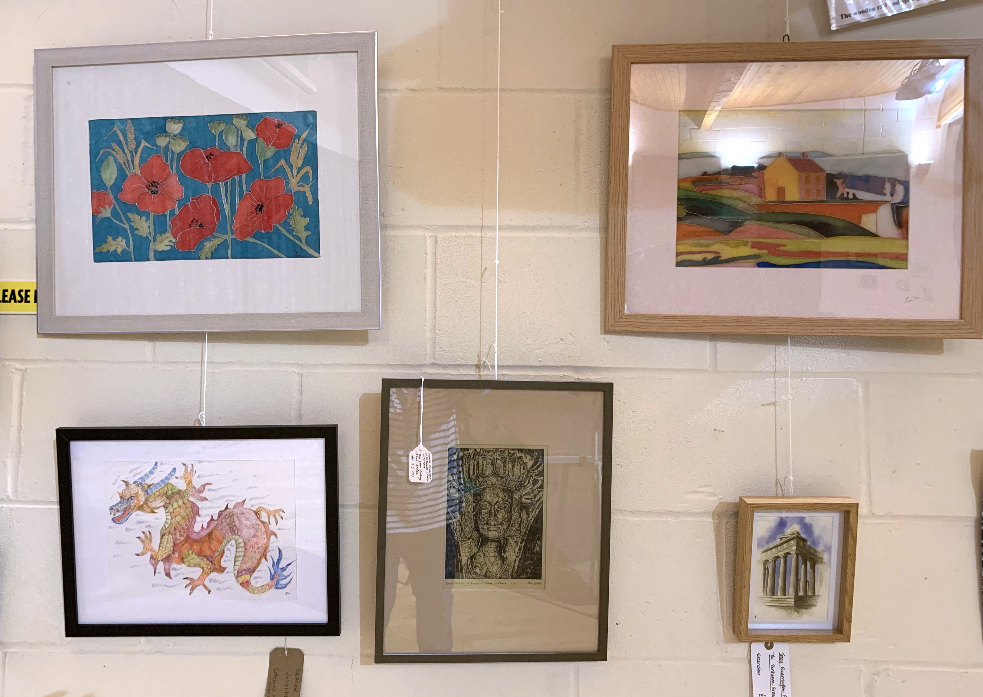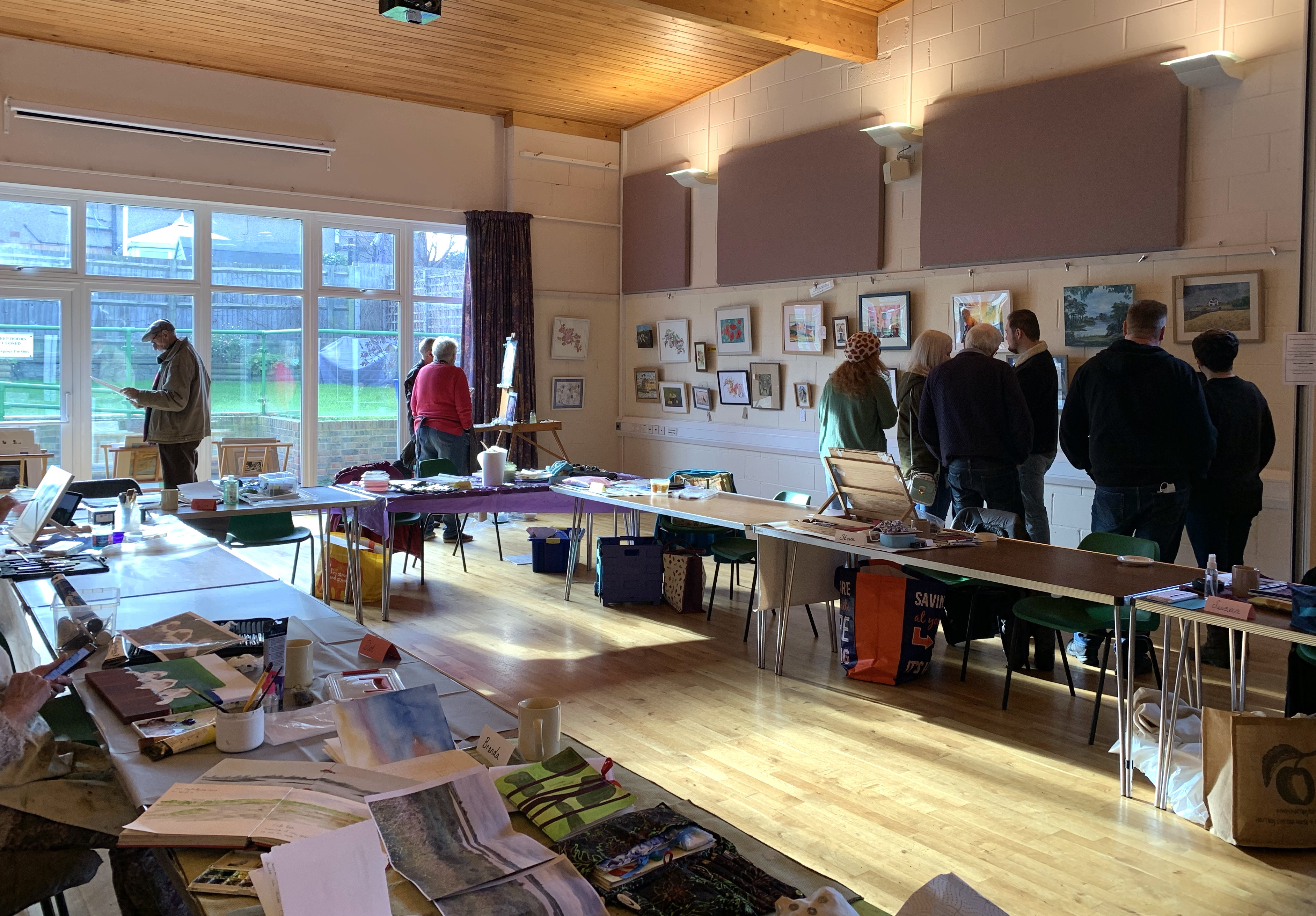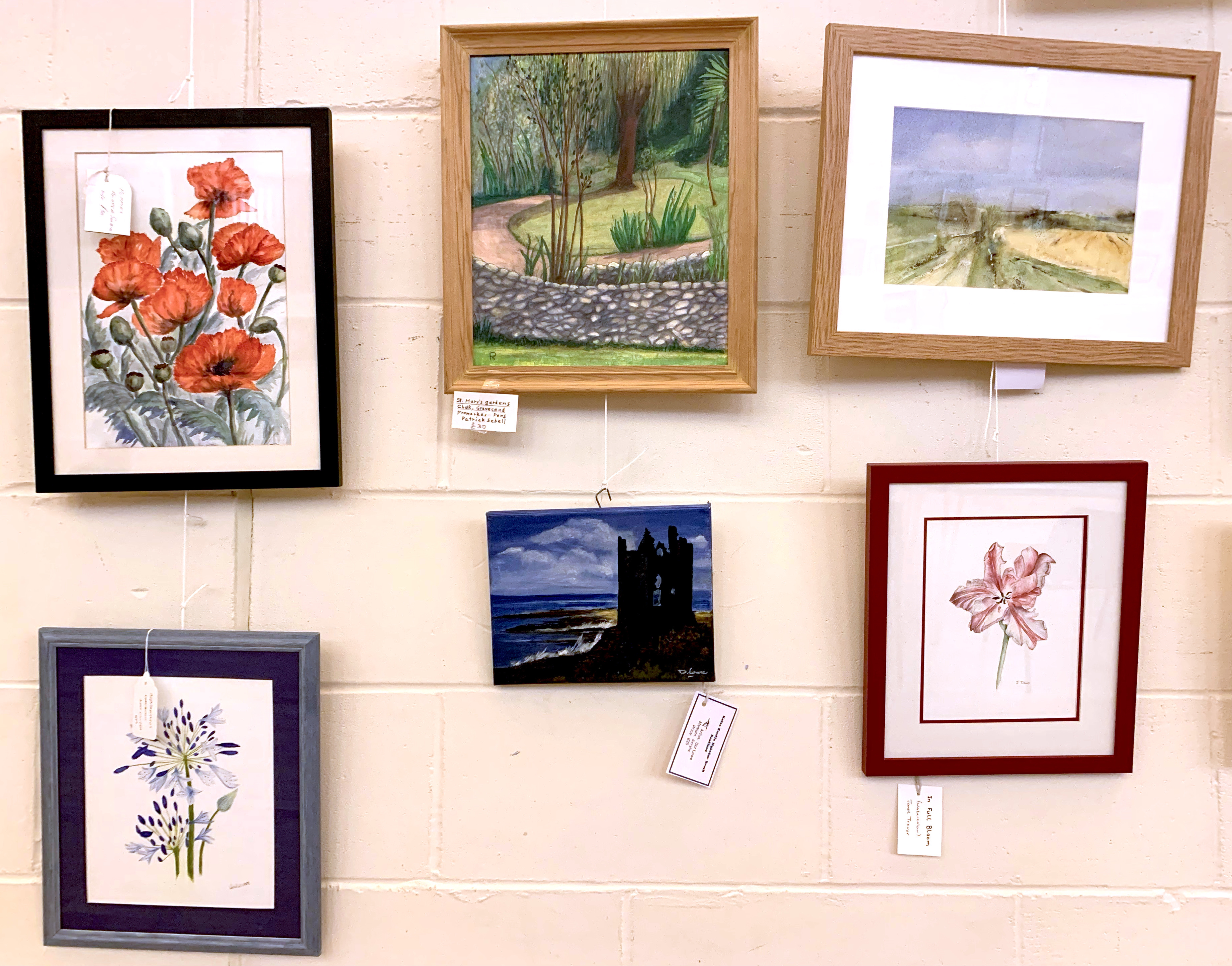 Steve will soon be emailing everyone to ask how many framed paintings you will have ready for our Open Day, along with their names and price or NFS (Not For Sale). You can have up to 6 framed paintings as long as they’re not in clip frames and not too big to hang from the hooks. All with D rings, strung across the back and a label hanging down below the frame or on the front with your name, name of the picture, medium and the price. You can also have unlimited mounted pictures for the browsers, but they must be for sale, all labelled front or back.