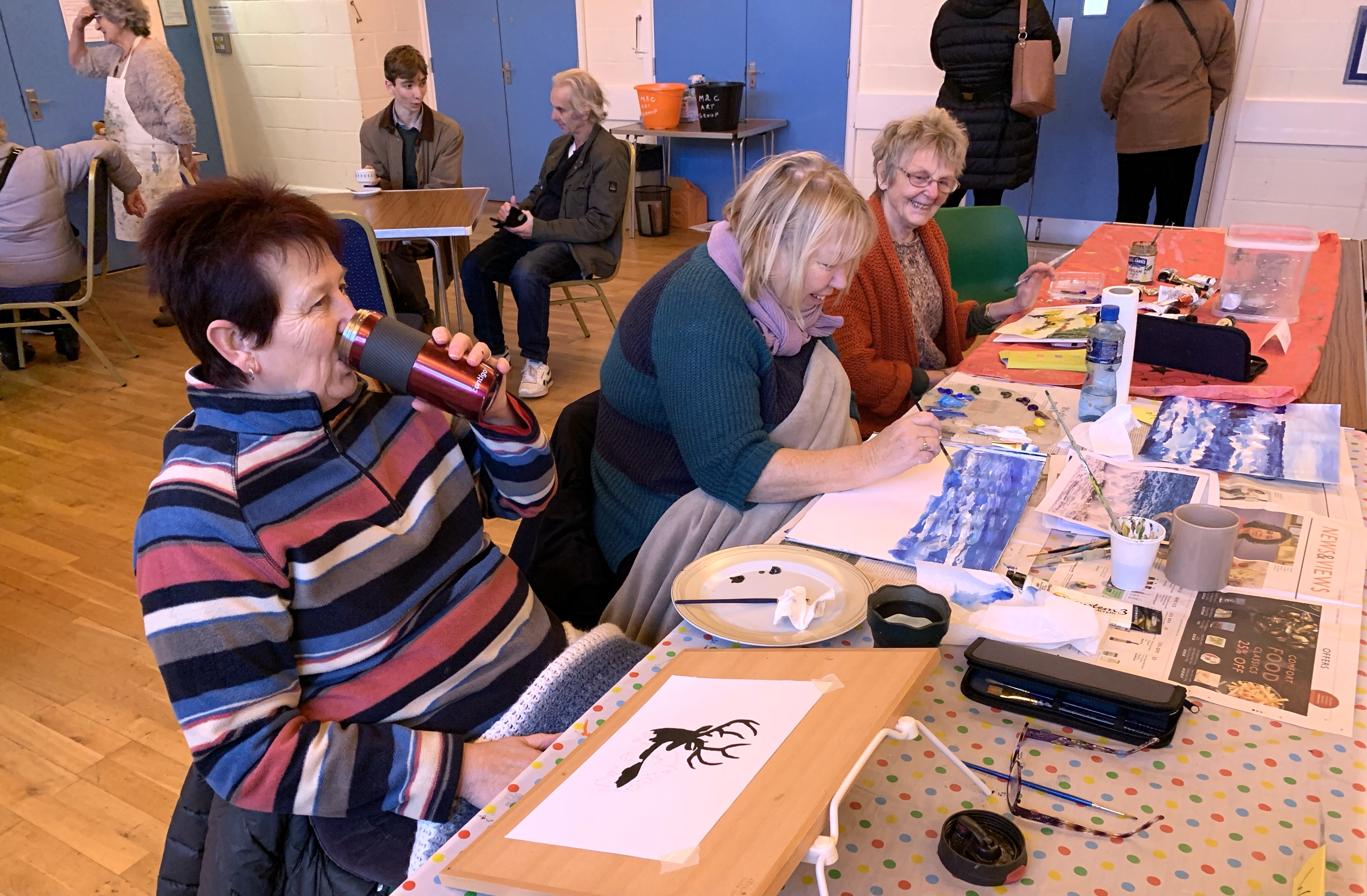For our first Open Day in two years we didn’t know whether to expect a handful of visitors or more. On a bitterly cold and wet day at least 60 visitors came along to admire and buy the paintings. Everyone welcomed the guests and talked about art over the four hours. Your enthusiasm shone through and it was a fabulous day, well done to one and all!