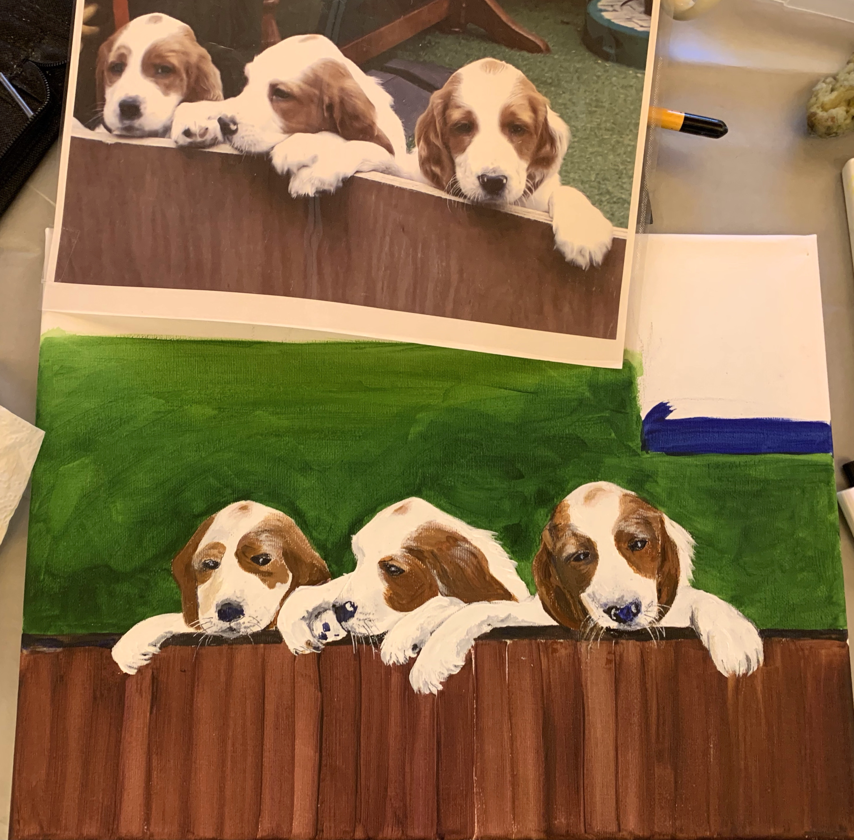 Tracy is not happy with the final painting as Daniel’s face went rather splodgy, but there’s a vague likeness. The skull in the background is much better she says!