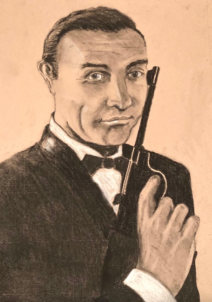 The task this month was to draw or paint your favourite actor playing 007 James Bond in the official EON films. Only two members created pictures, so presumably James Bond films aren’t popular with our members!