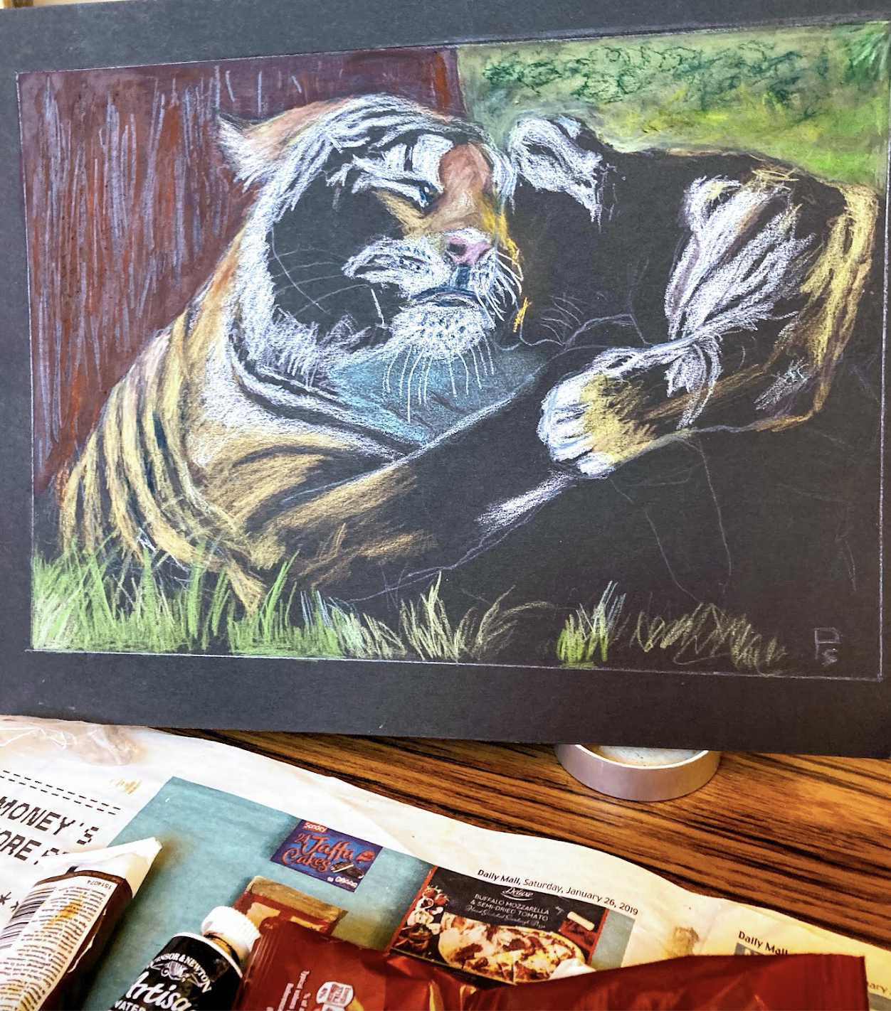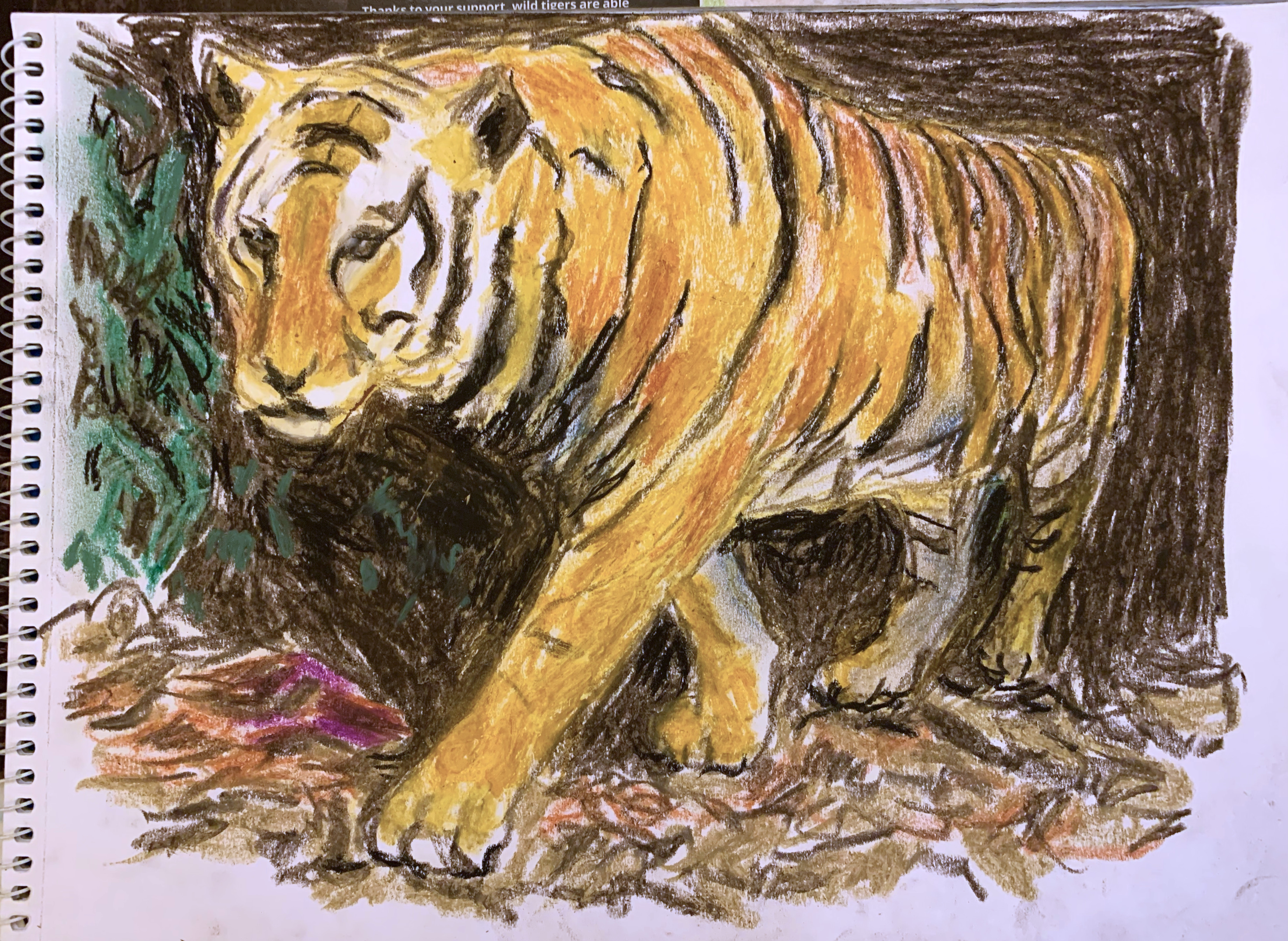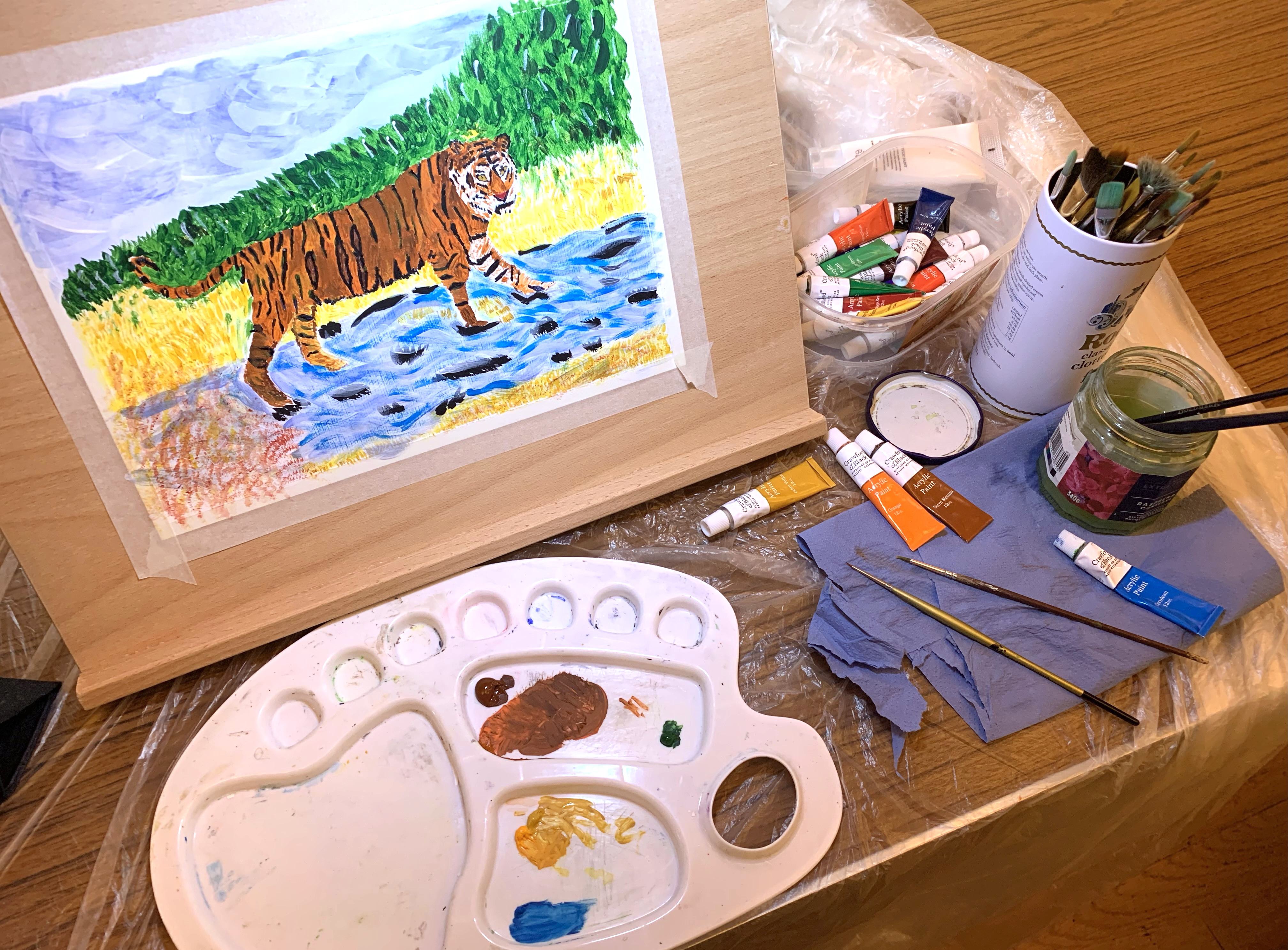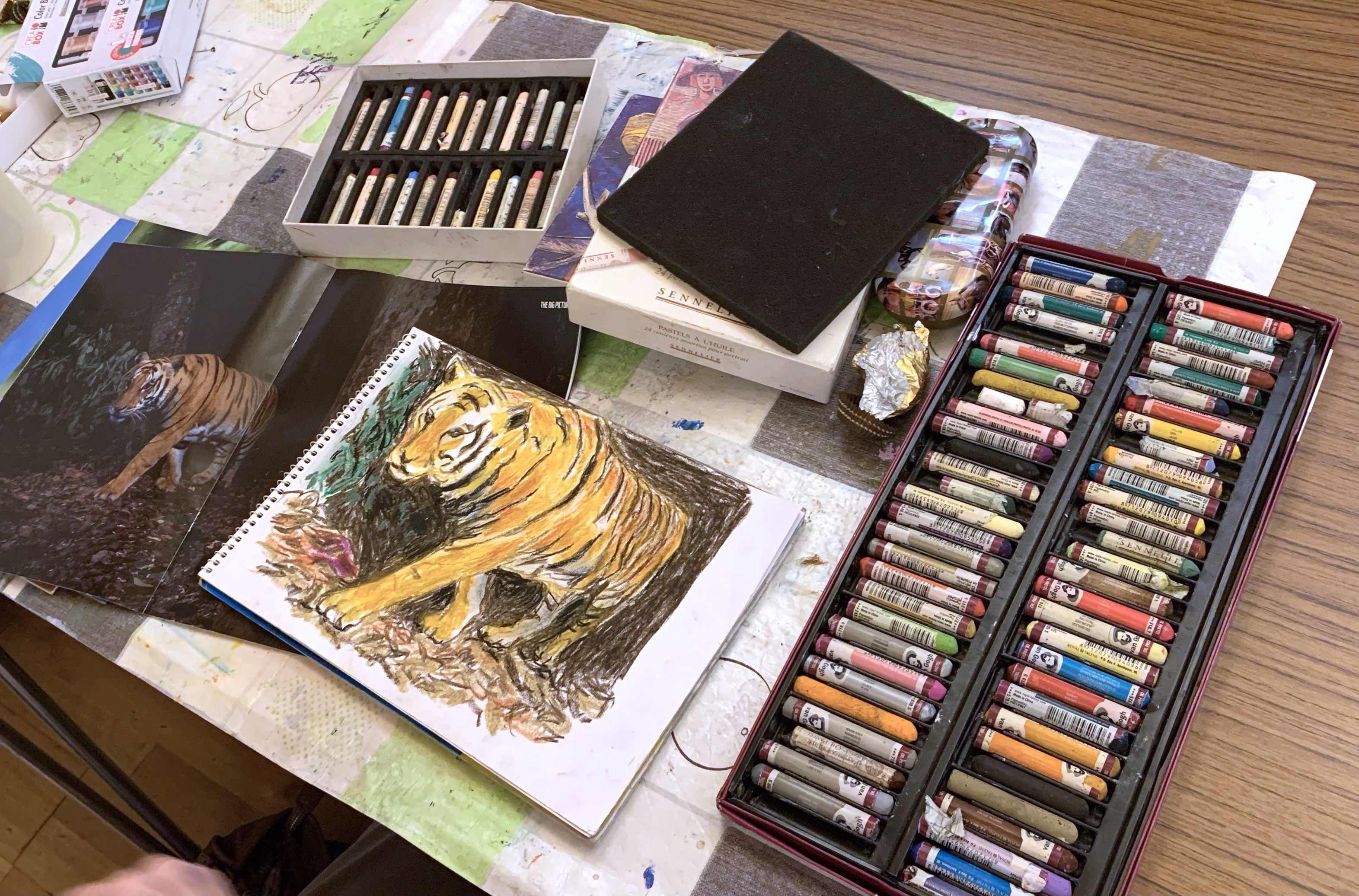 Created in watercolours, acrylics, oils, pastels and pencils the suggested subject of tigers proved very popular. Most pictures are works in progress and will be finished at home or at the next session on Saturday 26th February. All the tigers were orange coloured apart from one Pantone ‘Very Peri’ purpley one!