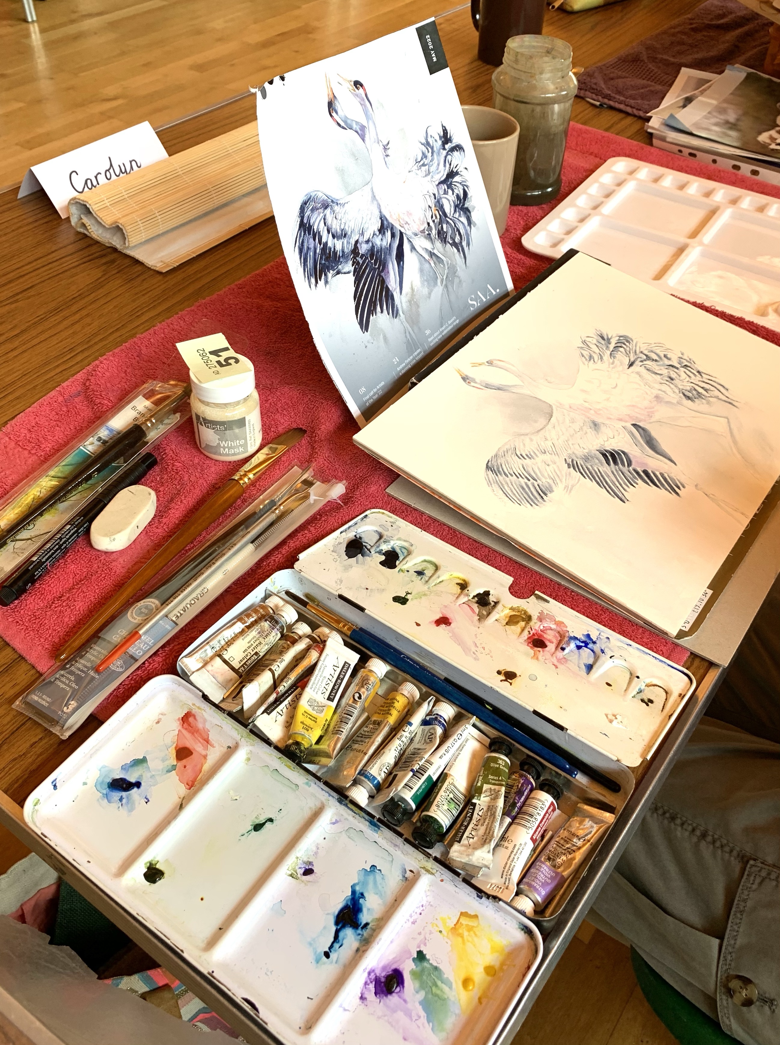 Over twenty members attended Saturday’s session and the day was full of chatter and enjoyment walking around seeing all the pictures that were produced. The theme of ‘animals’ could be interpreted in any way in any medium, so there were many animals that took shape during the day. Mediums used were watercolours, oils, acrylics, graphite pencils, coloured pencils, pastels, collage, felt pens and pen and ink.