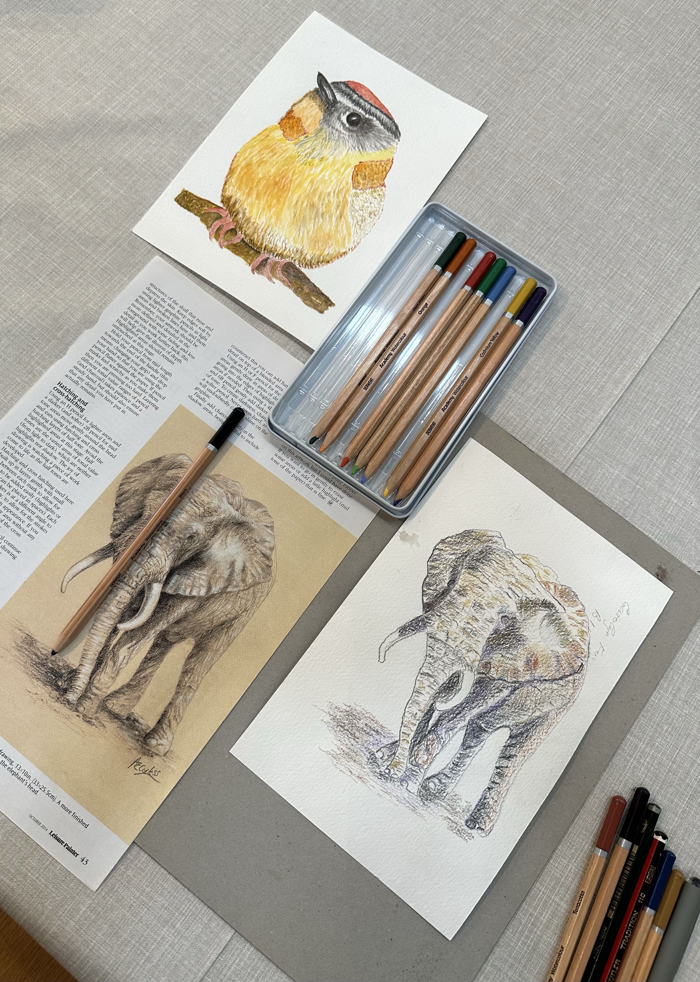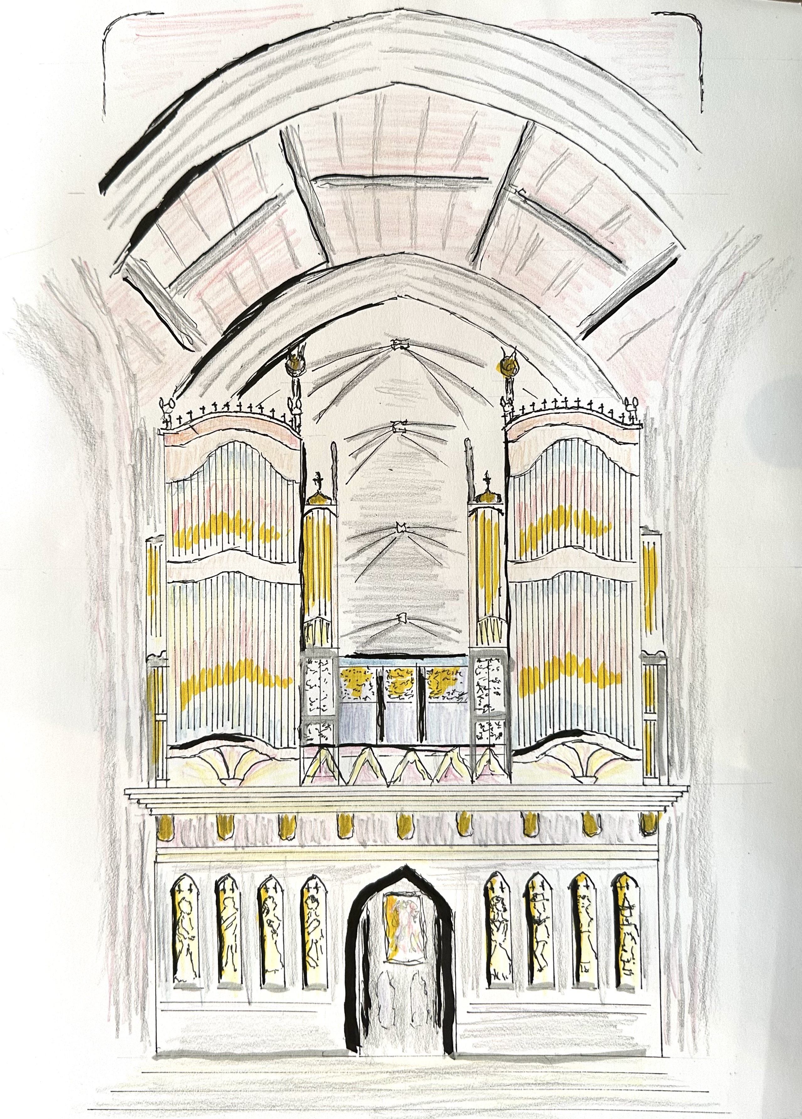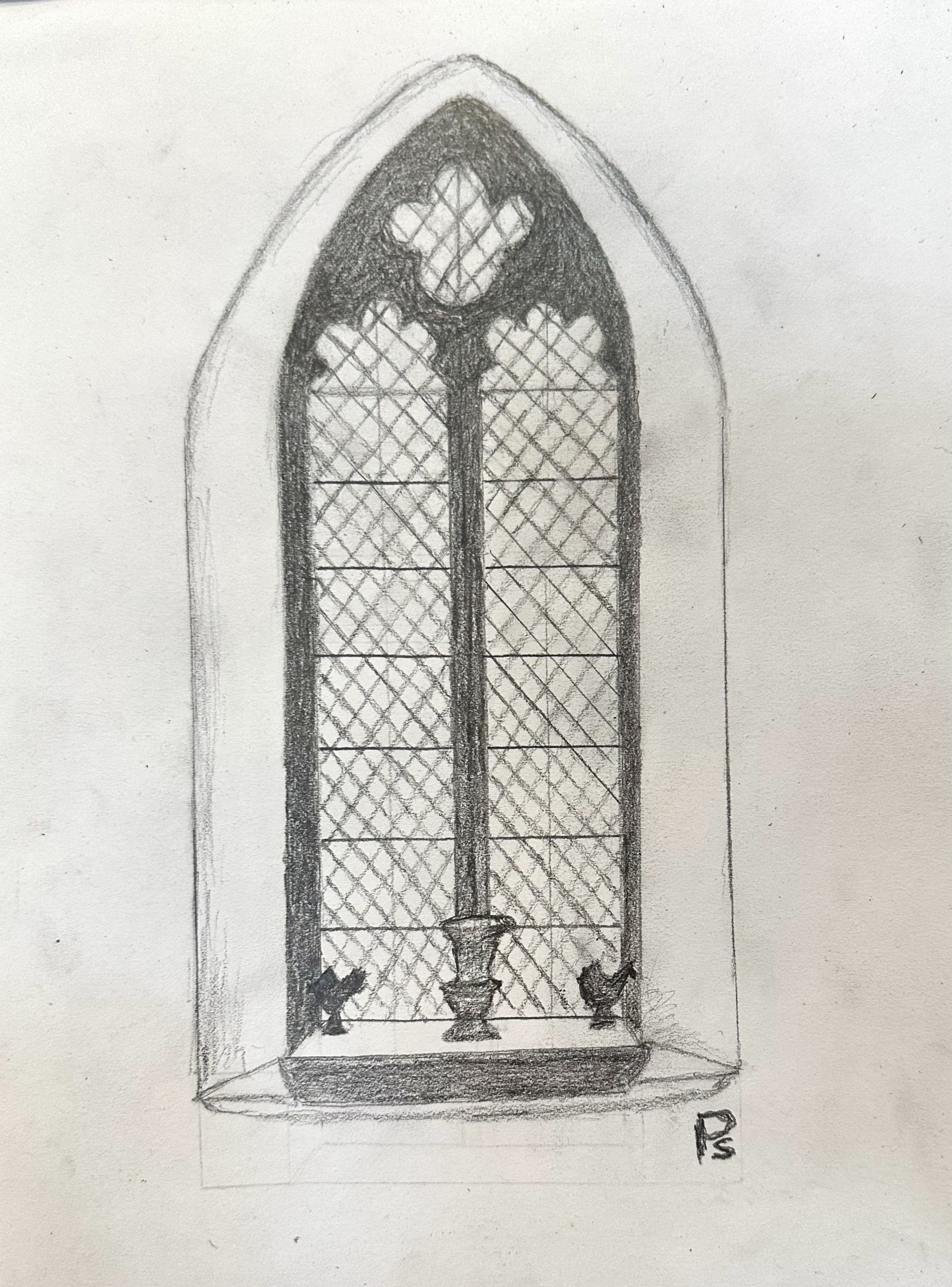 We all had a fantastic day sketching and colouring with dry media as painting wasn’t allowed at the table, and having a good natter of course. Luckily we weren’t outside as at one point the heavens literally opened, with torrential rain causing flooding in the streets outside. Adult and child visitors to the cathedral came to look at our pictures and to have a chat, which was lovely. It was a very memorable day for the art group and thank you to everyone who gave a donation to cathedral funds, we raised £123.