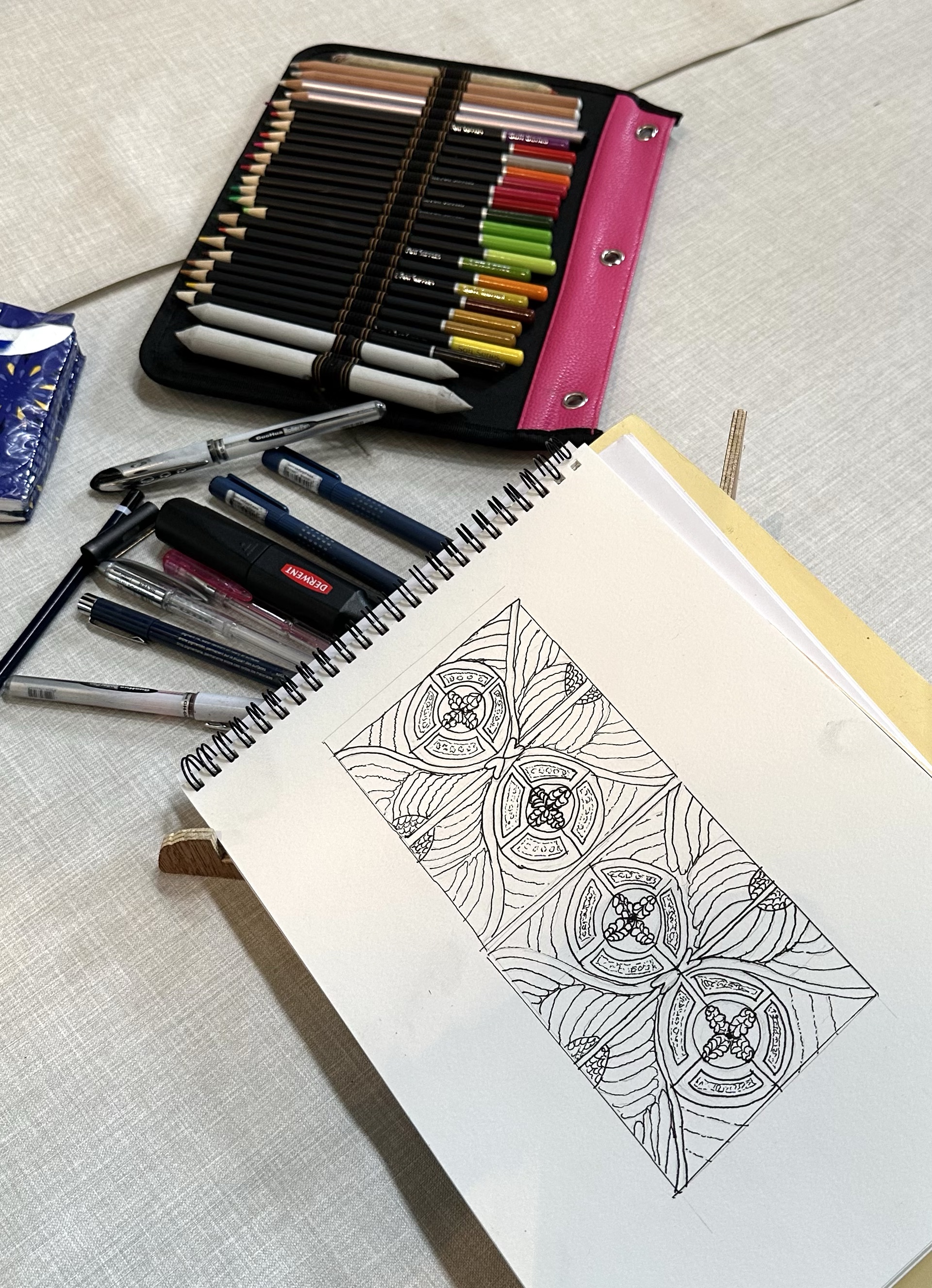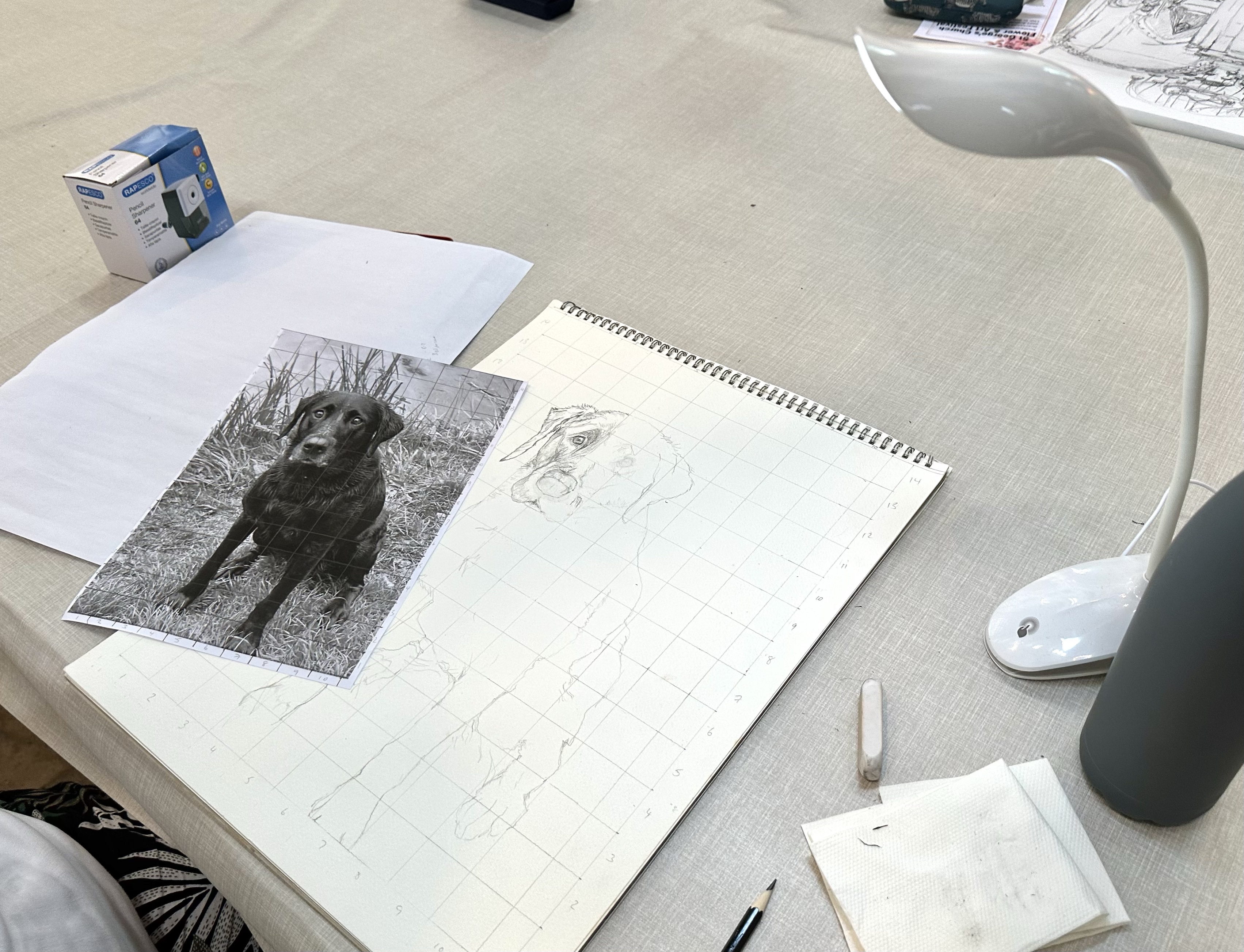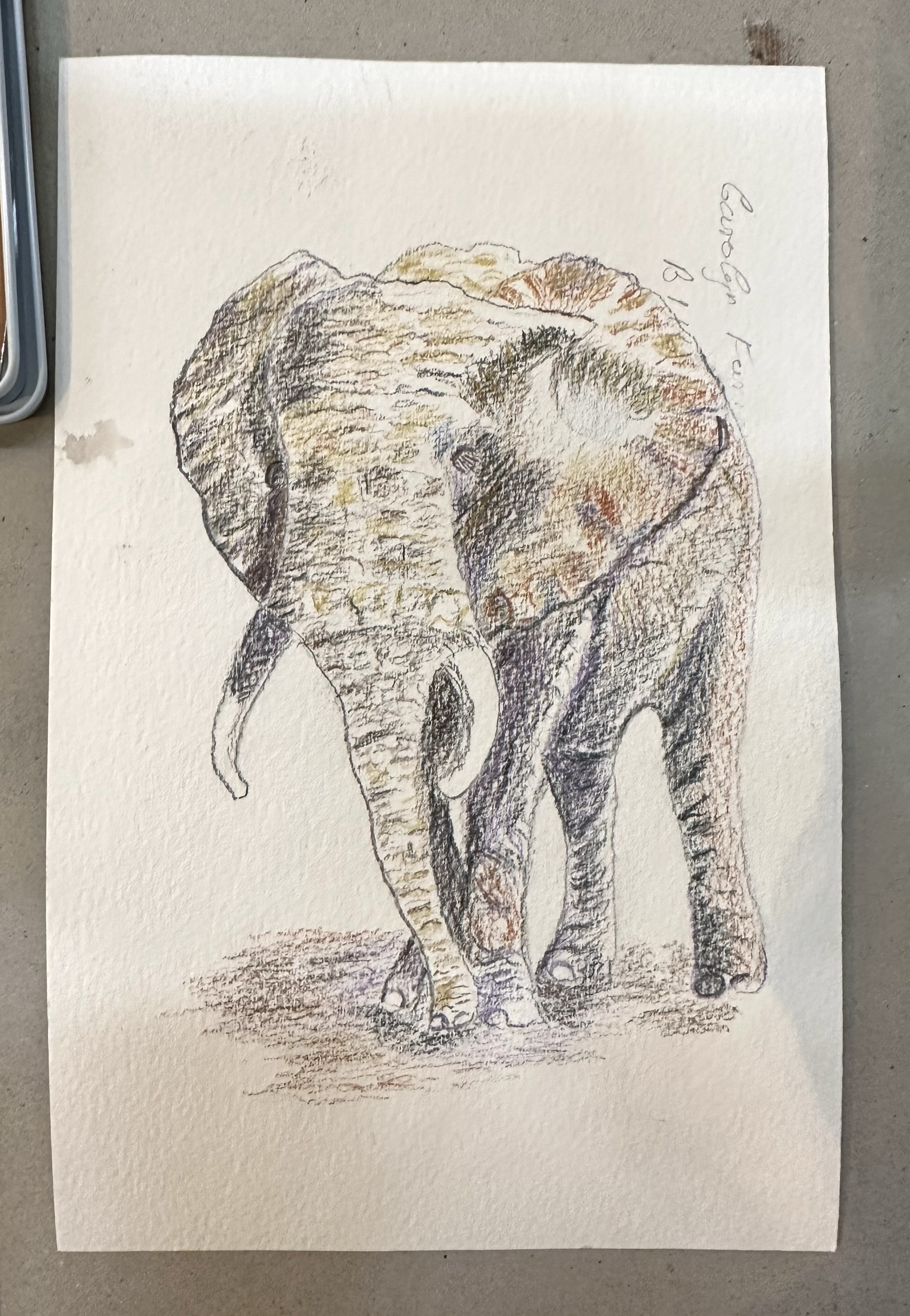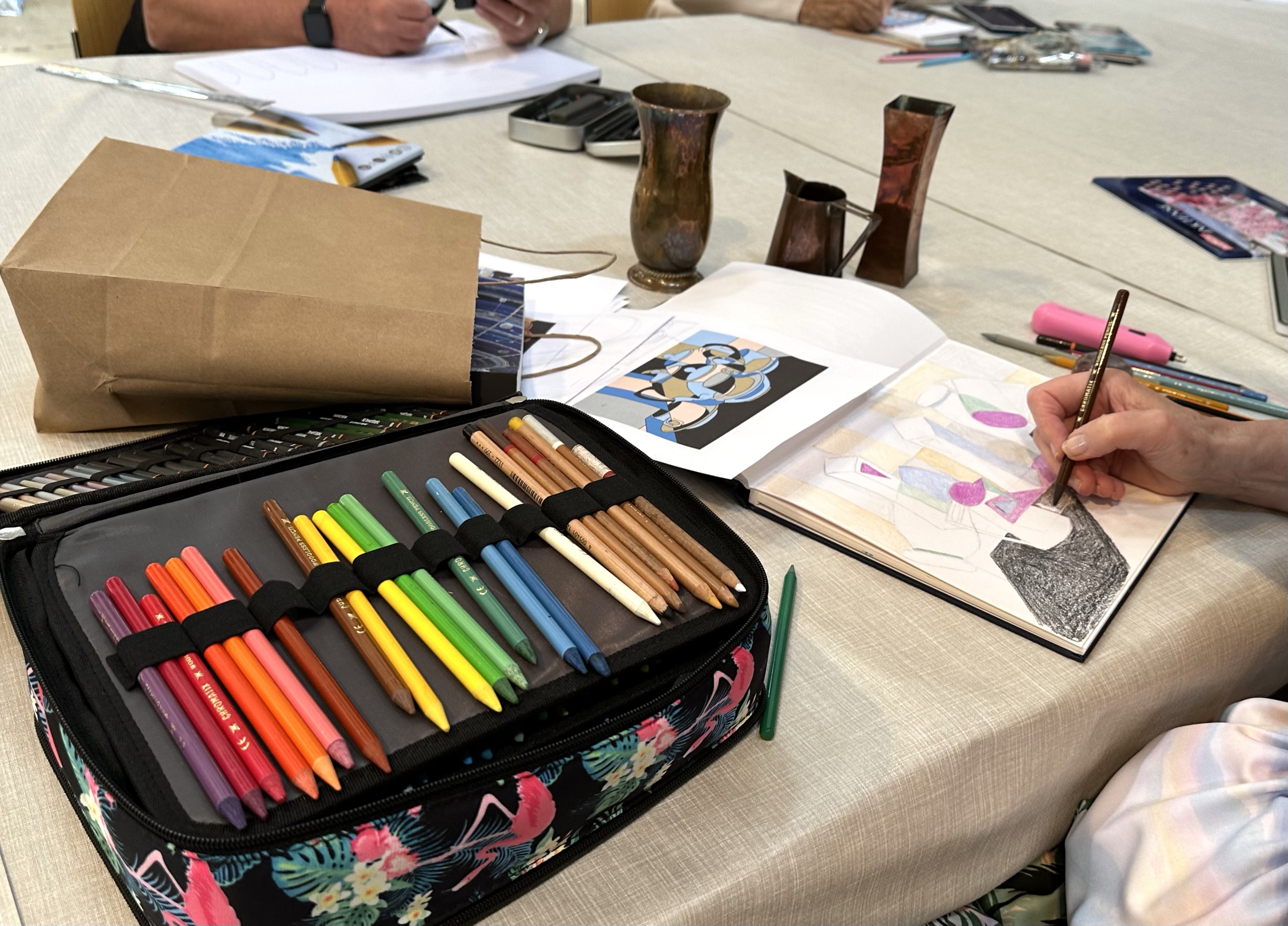 We all had a fantastic day sketching and colouring with dry media as painting wasn’t allowed at the table, and having a good natter of course. Luckily we weren’t outside as at one point the heavens literally opened, with torrential rain causing flooding in the streets outside. Adult and child visitors to the cathedral came to look at our pictures and to have a chat, which was lovely. It was a very memorable day for the art group and thank you to everyone who gave a donation to cathedral funds, we raised £123.