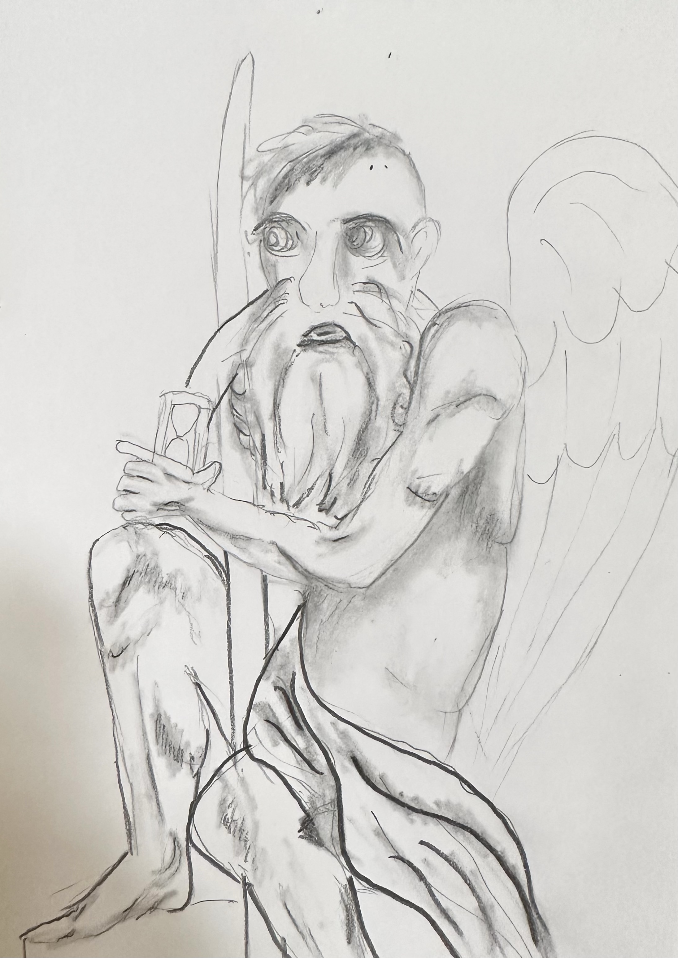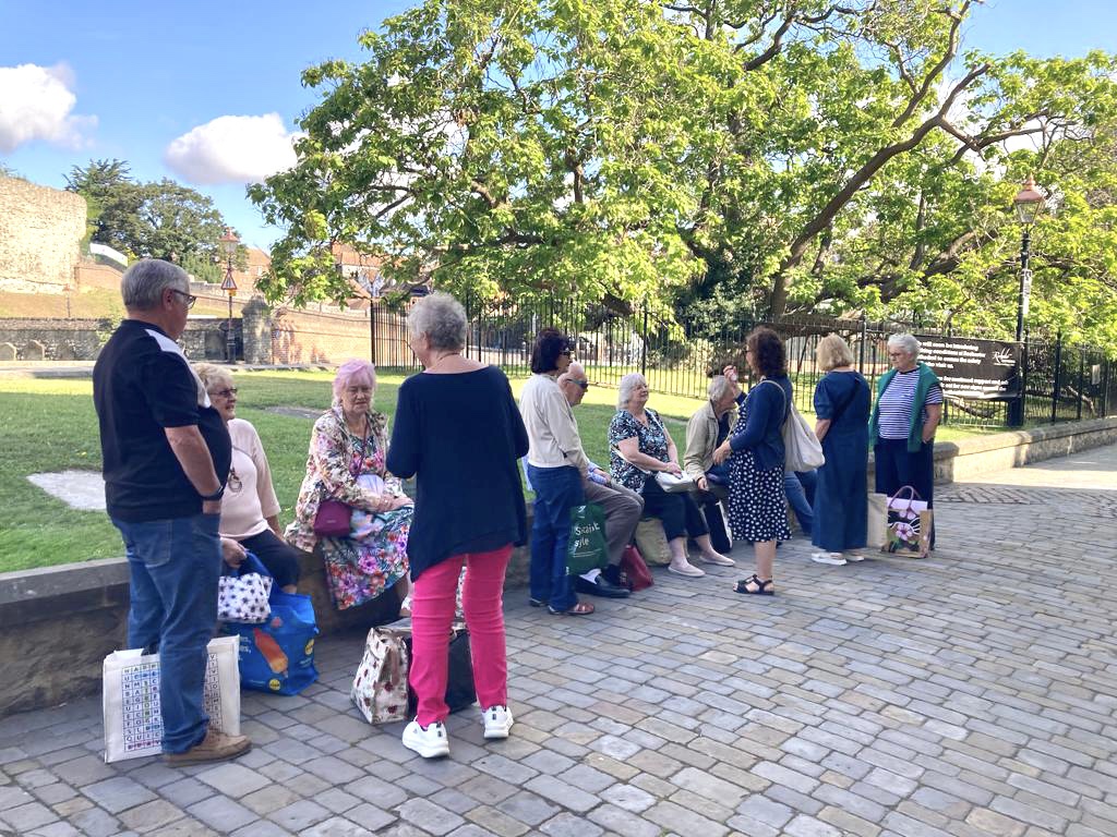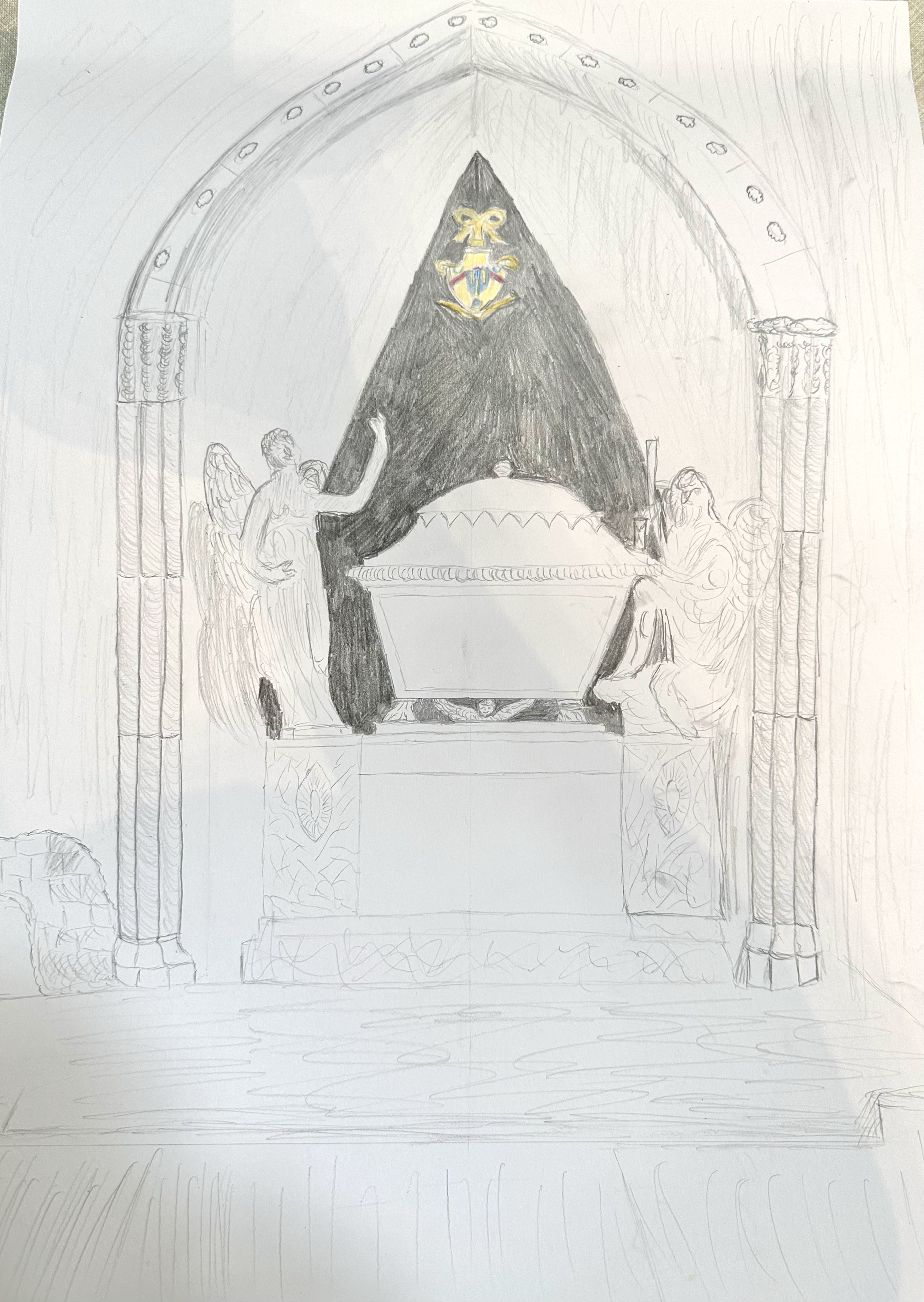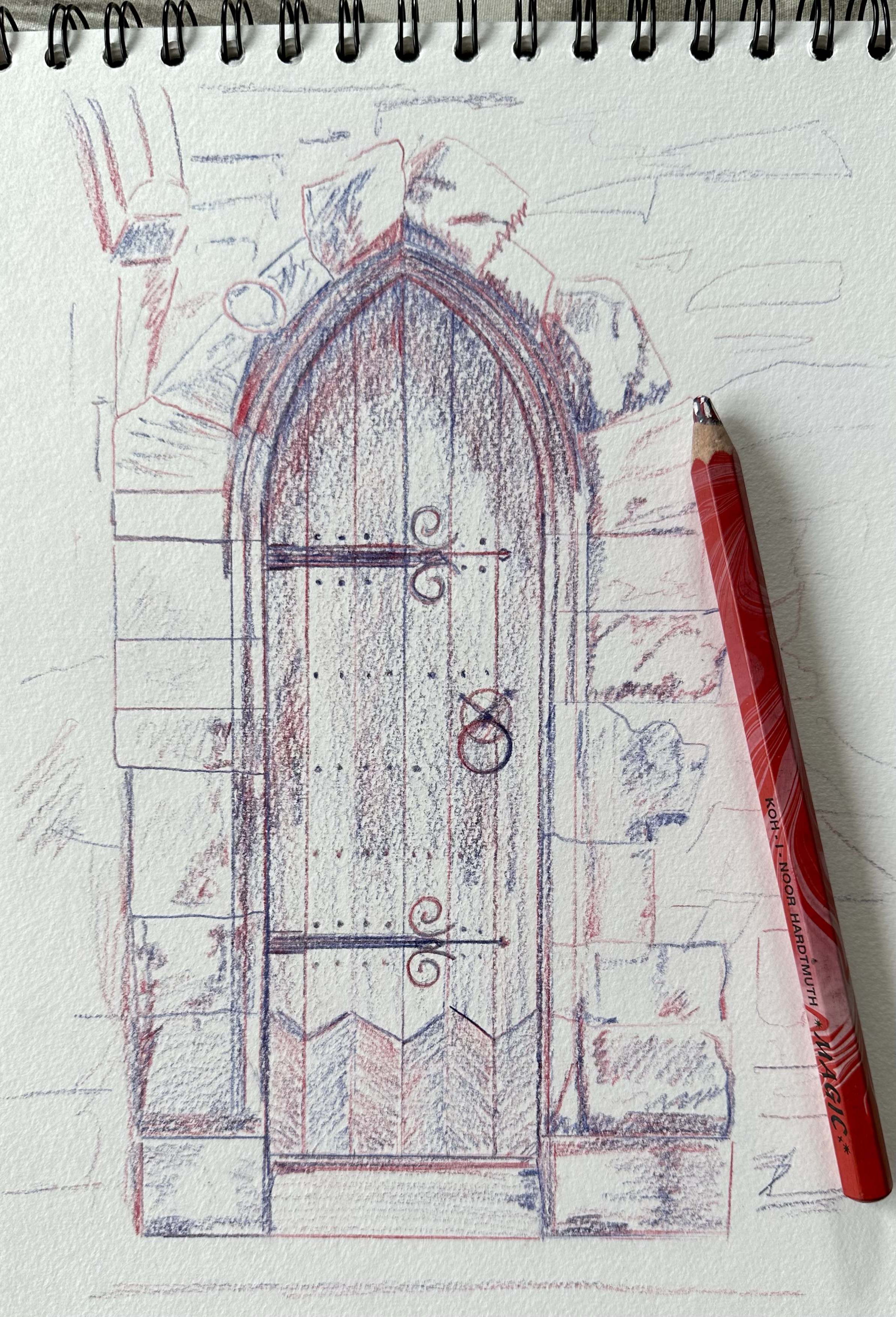 Twenty one members visited Rochester Cathedral to sit and draw at the Fenland black oak table, a piece of fossilised wood over 5000 years old. It was a deep, brownish-black colour and highly polished, placed in the central nave of the cathedral. The section we used was covered in waterproof material, so thankfully we didn’t have to worry about making a mess on it, which would have been disastrous!