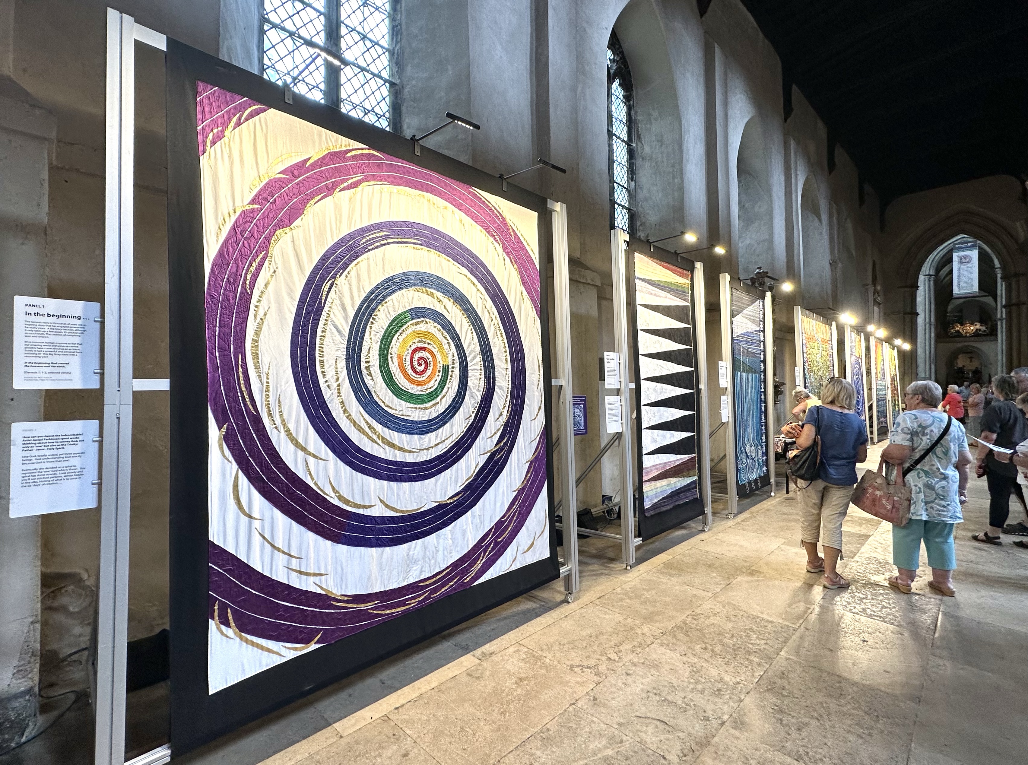 In the aisles either side of the nave was an exhibition called ‘Threads Through Creation’, twelve huge embroidered panels depicting the story of the creation and the Garden of Eden. They’re by Jacqui Parkinson and will be at the cathedral until next Sunday, 3rd September. We all had a look and were very impressed by the size, colour and detail of all the panels.