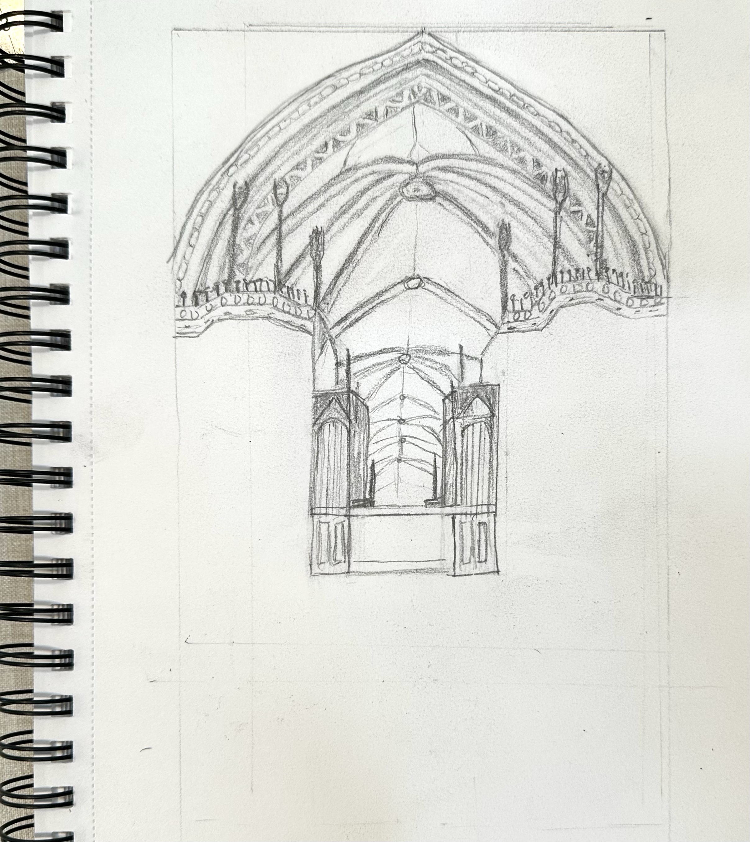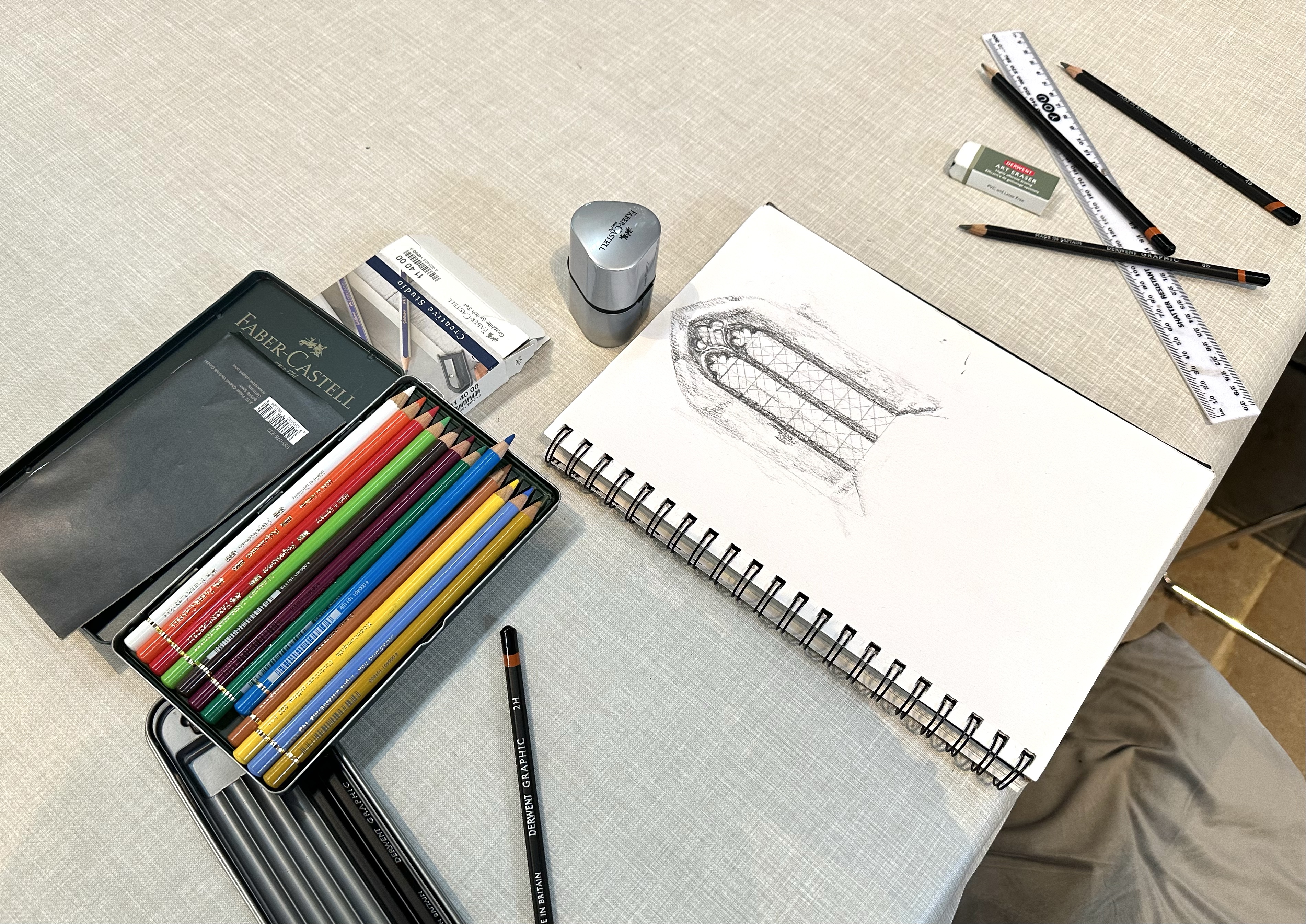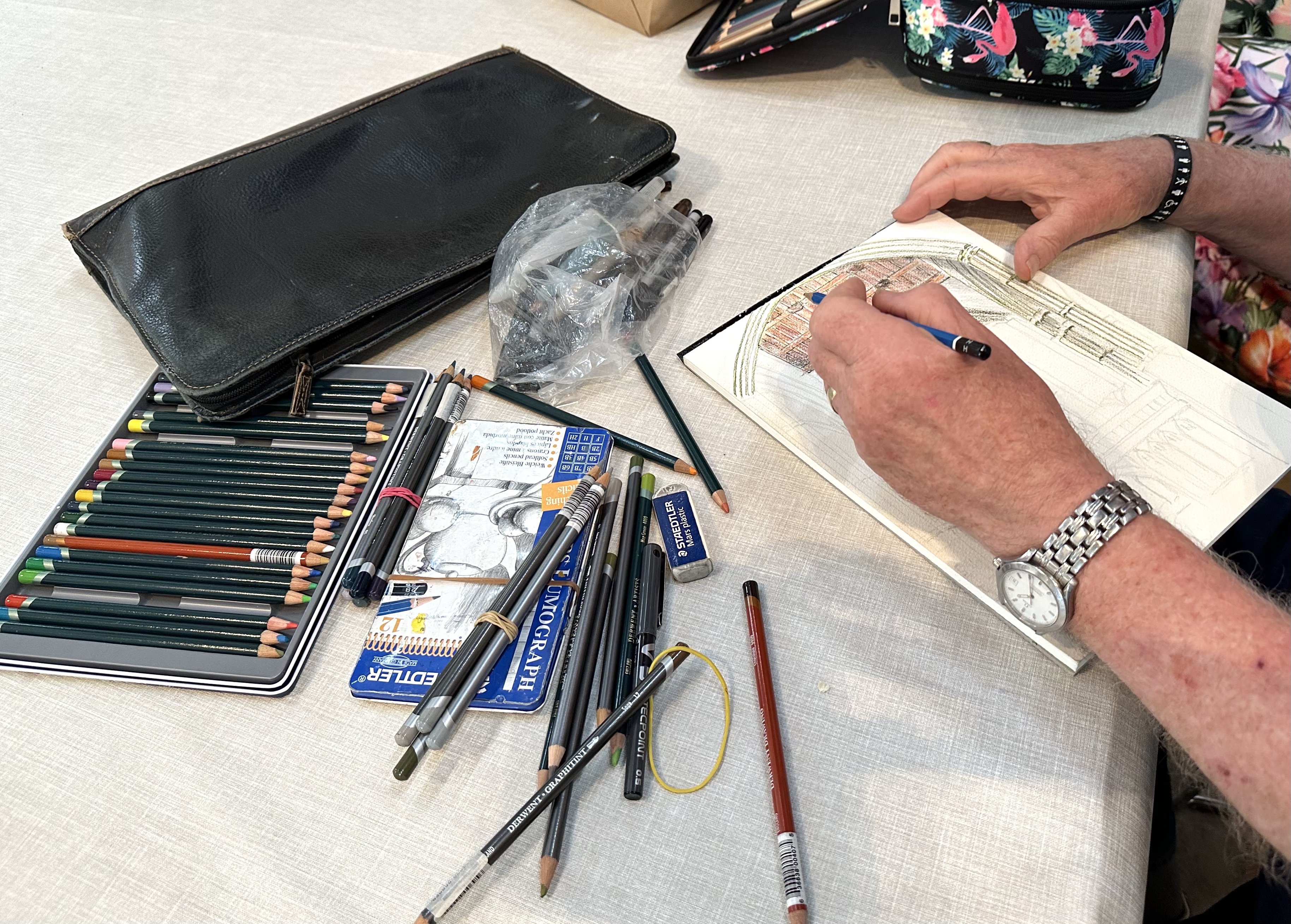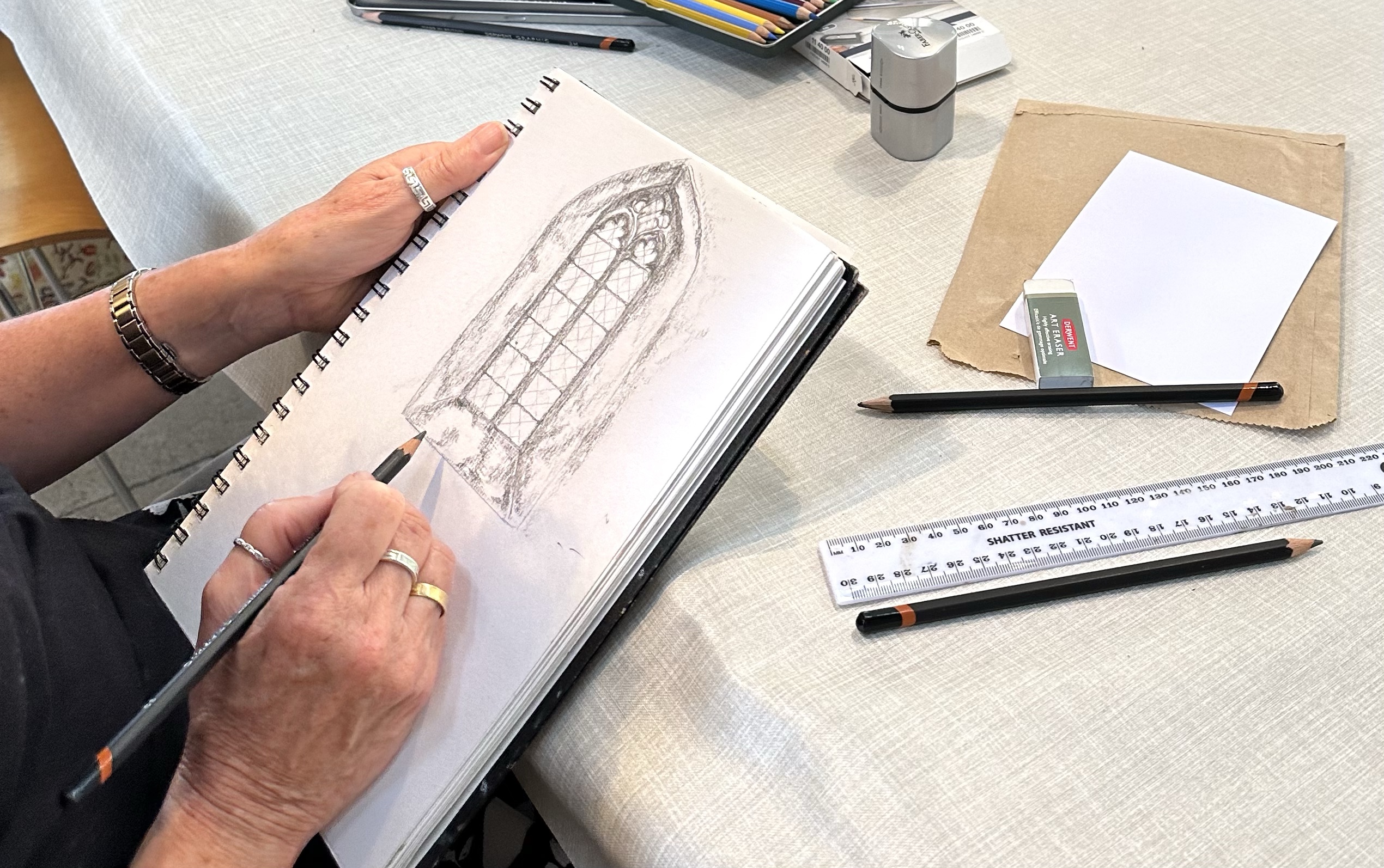 Most members sketched the view to the front or side of them, whilst others photographed parts of the cathedral inside and out, then used the photos on their phones or iPads as reference.