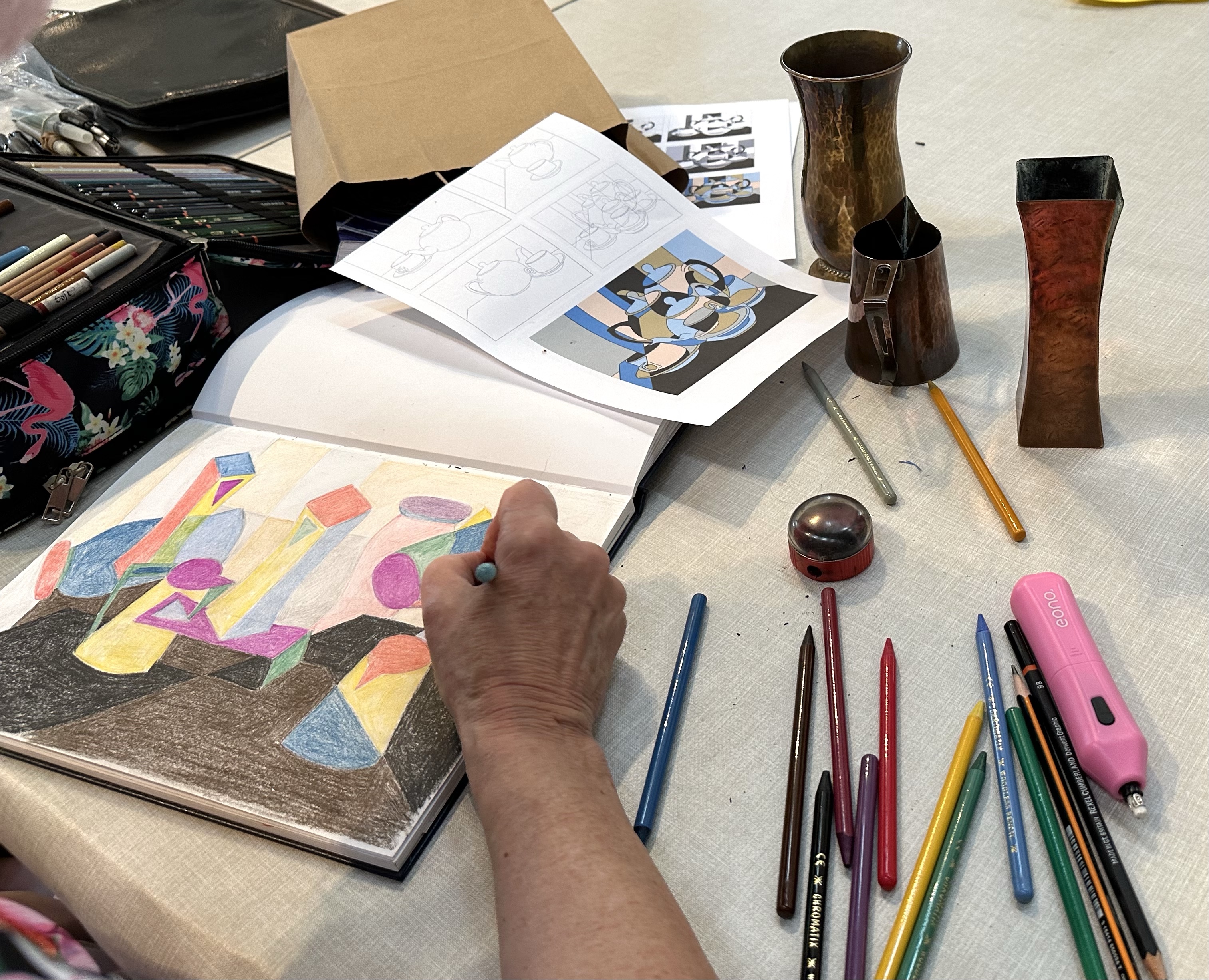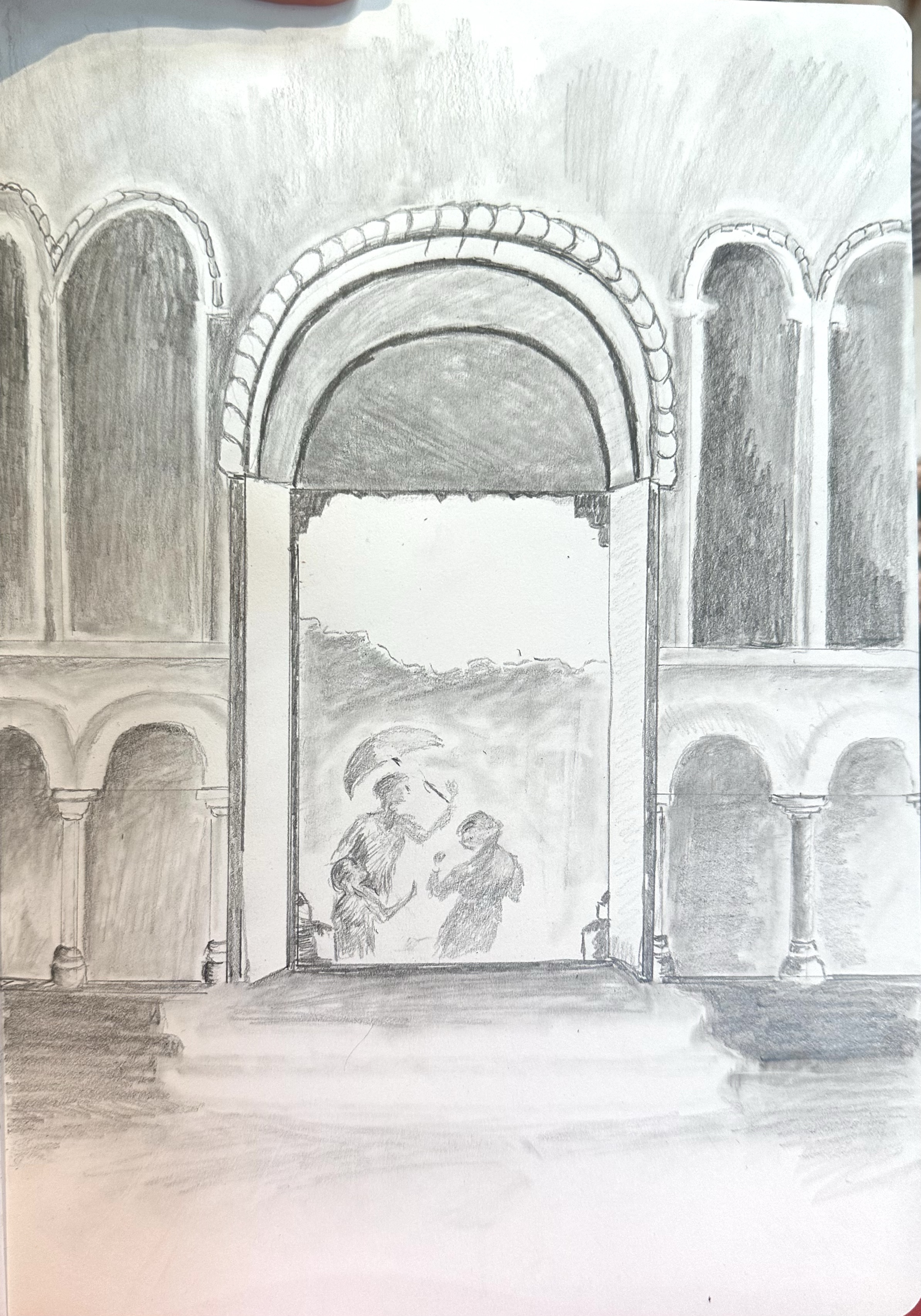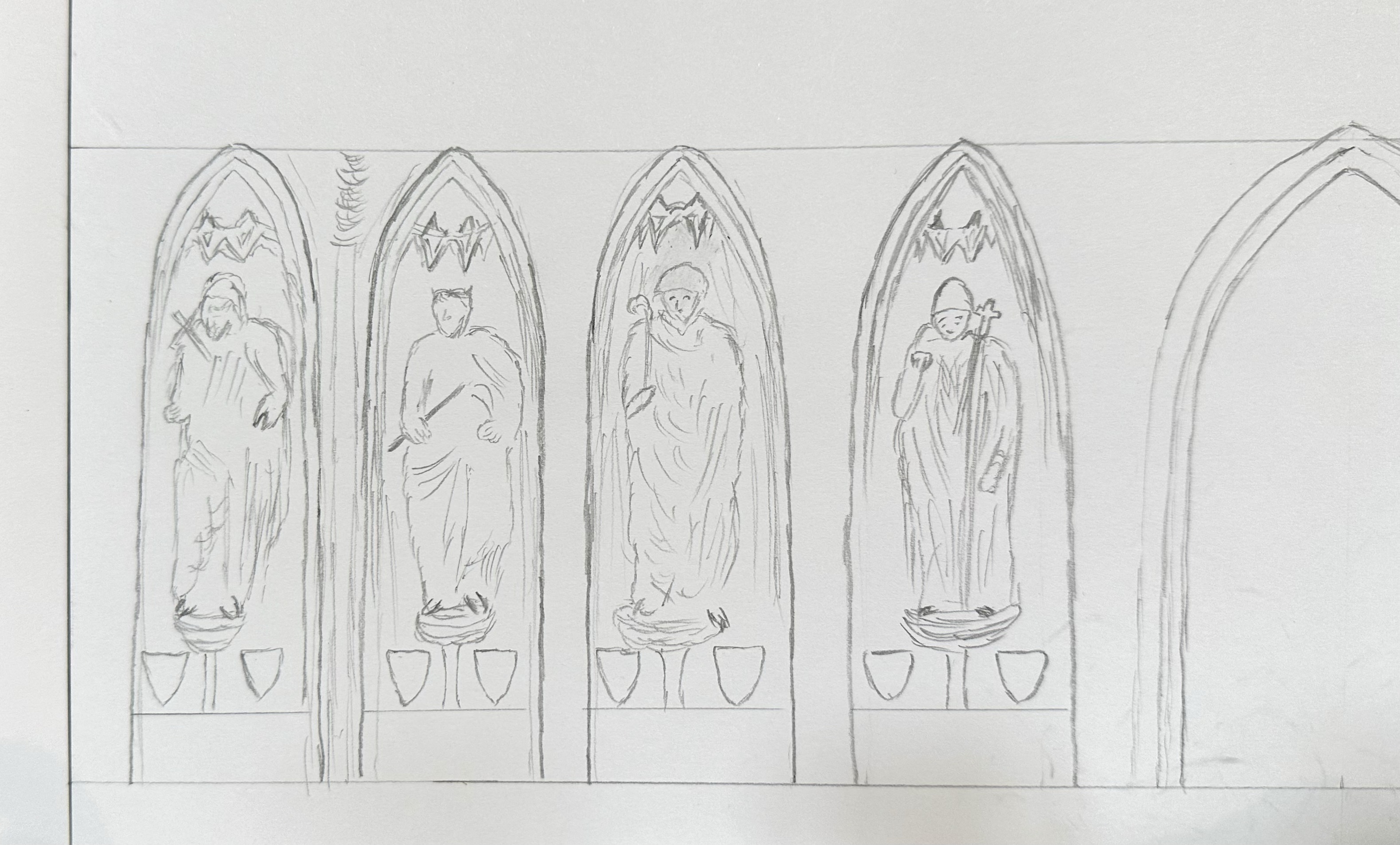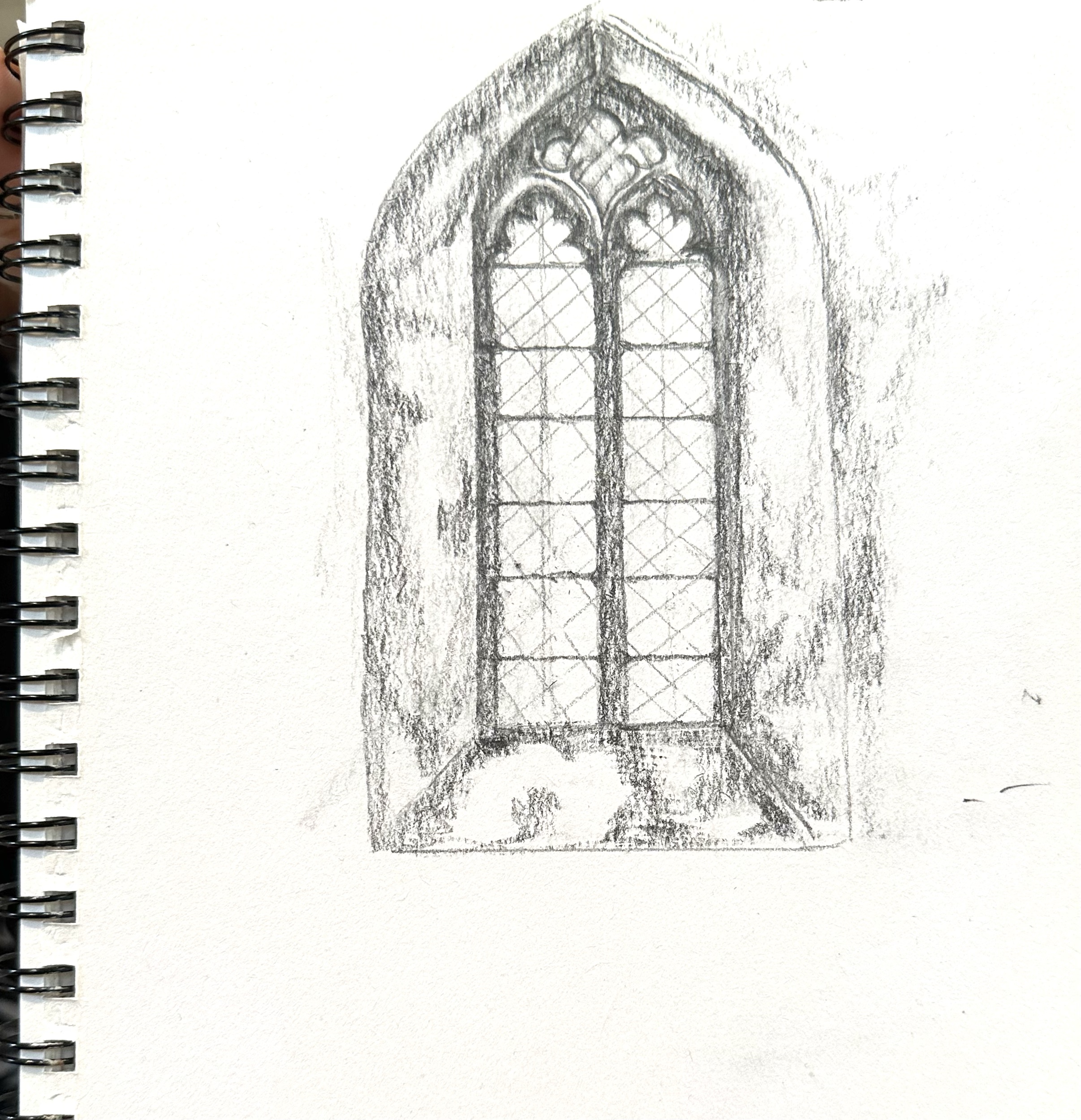 Most members sketched the view to the front or side of them, whilst others photographed parts of the cathedral inside and out, then used the photos on their phones or iPads as reference.