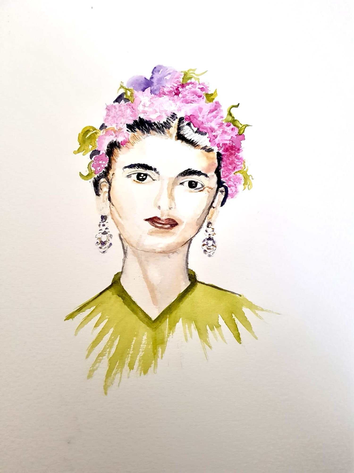 Draw or paint a picture inspired by Mexican artist Frida Kahlo (July 1907-July 1954). Her colourful paintings are full of colour but often filled with angst as she suffered life-long injuries from polio as a child and a terrible bus crash when she was 18.