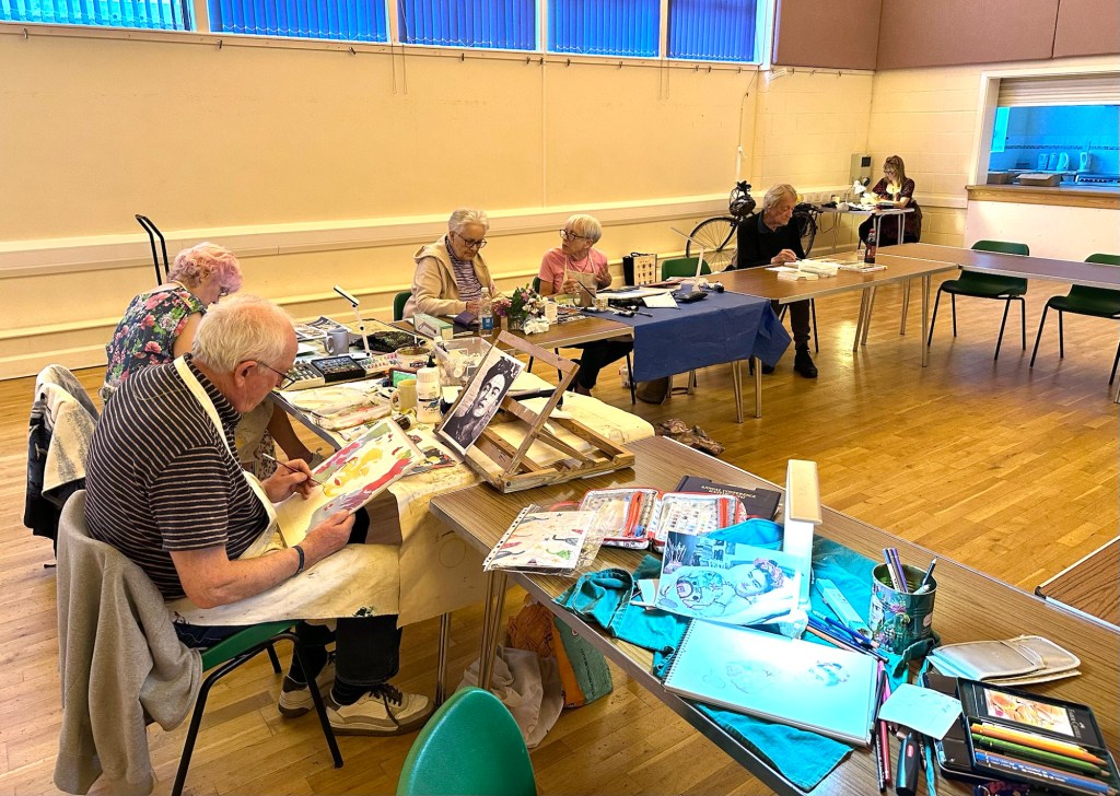 Some members drew and painted the view in front of them and others created pictures to their own theme.