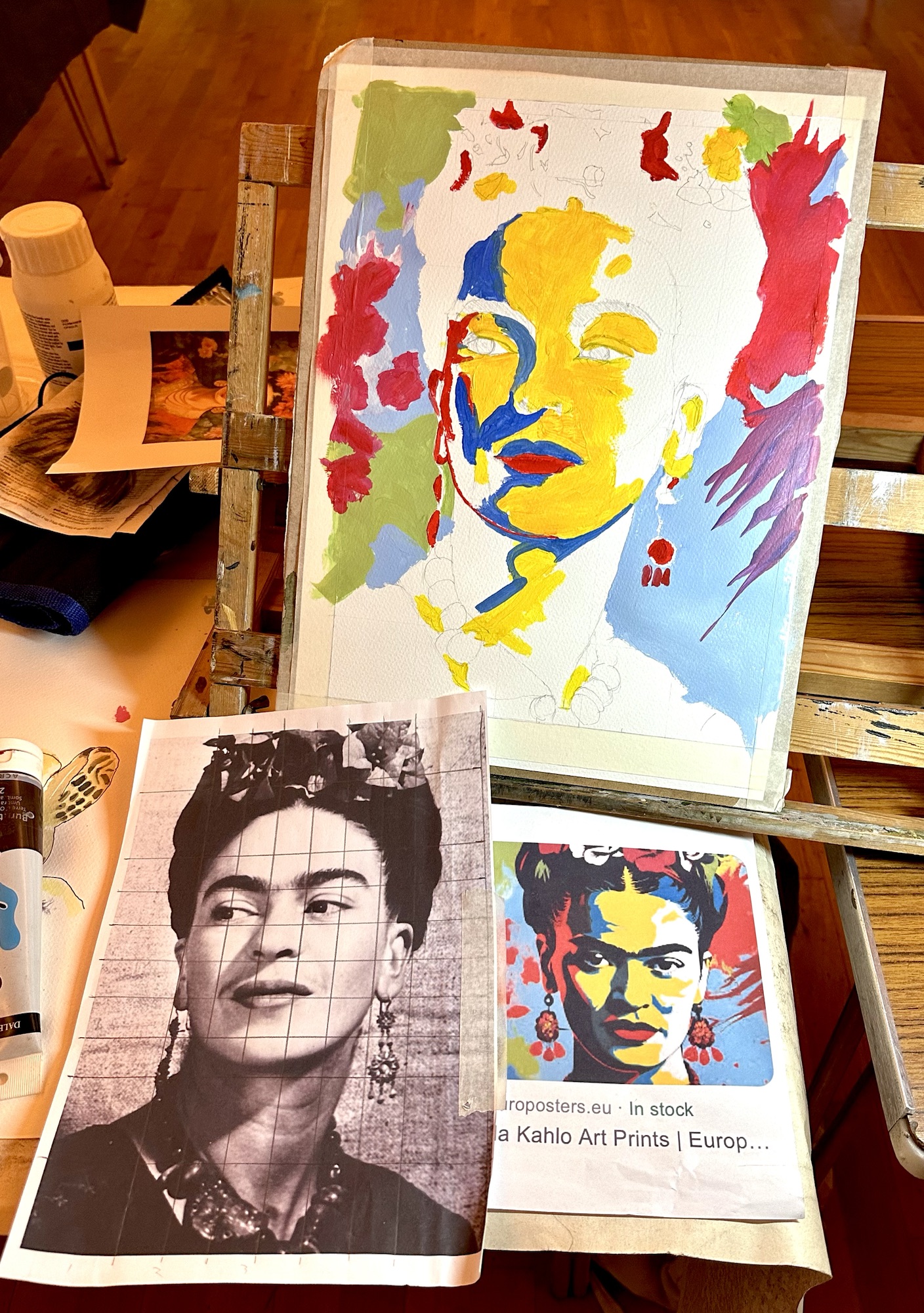 Many of us have painted these several times, so instead start any project for our Open Day(Saturday 23rd November), continue or start a Frida Kahlo inspired picture or bring paintings you want to finish.