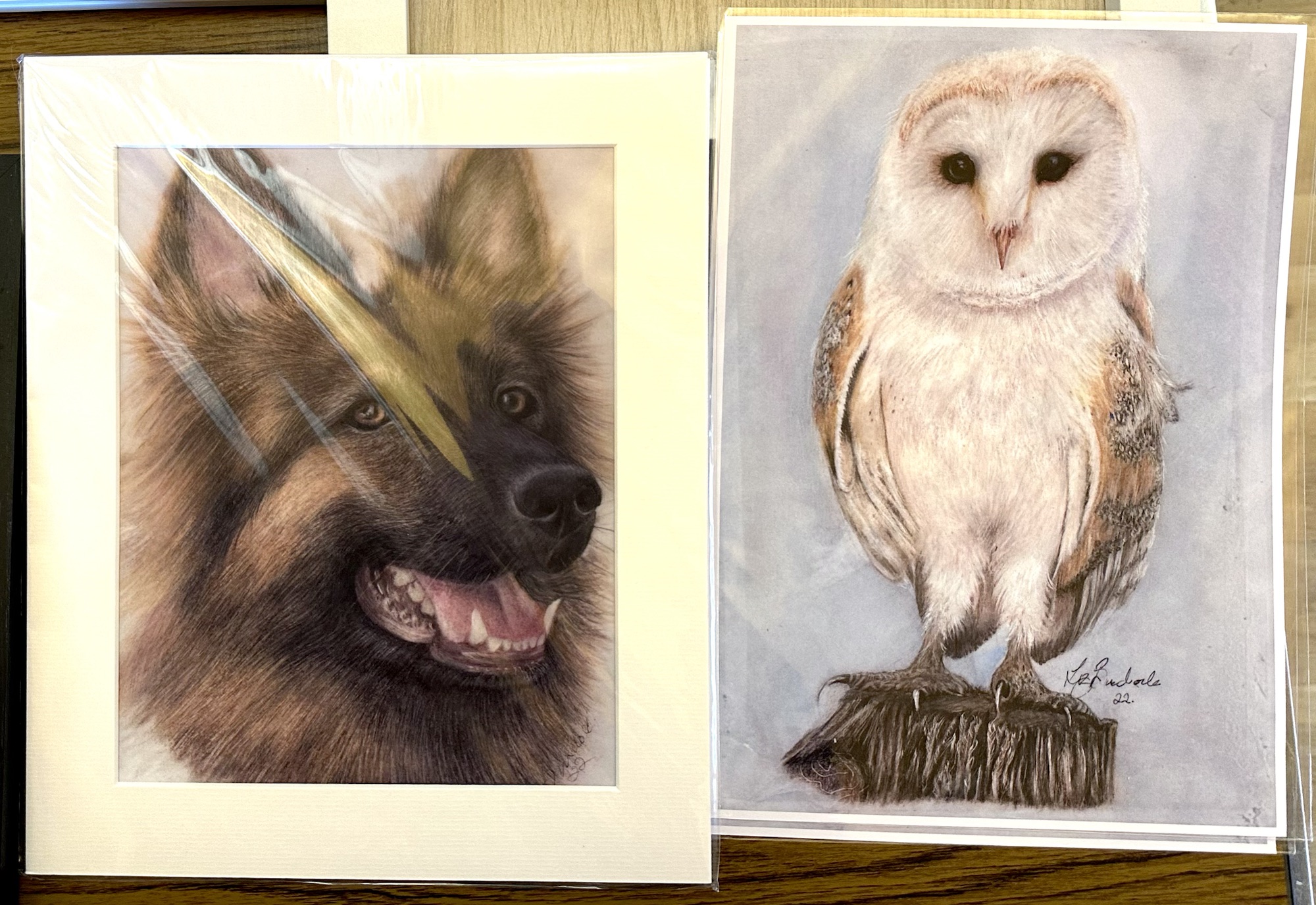 Fourteen members enjoyed an animal coloured pencil workshop run by local artists Liz and Helen. They met at Gravesend Art Group and both love creating pictures of animals using coloured pencil techniques learnt through online courses. Here are examples of their work that they sell at exhibitions and they also take commissions (apologies for the reflections of the hall lights). It’s amazing artwork with so much detail to look at.