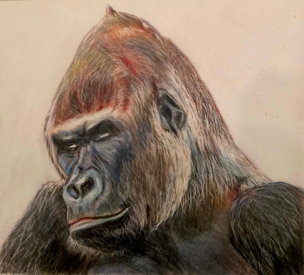 Steve has created a picture of a gorilla which looks 3-D. He used several colours of browns and black for the gorilla’s hair and if you look closely the hair highlights are from using the ceramic slice to take off the colour. Well done, great work Steve.