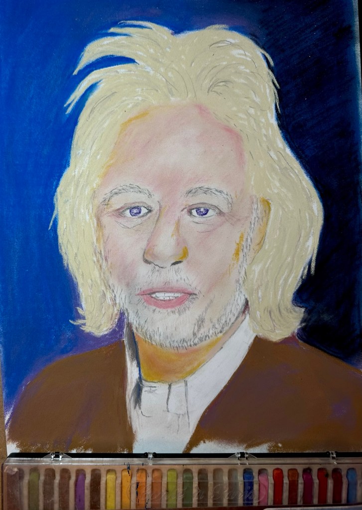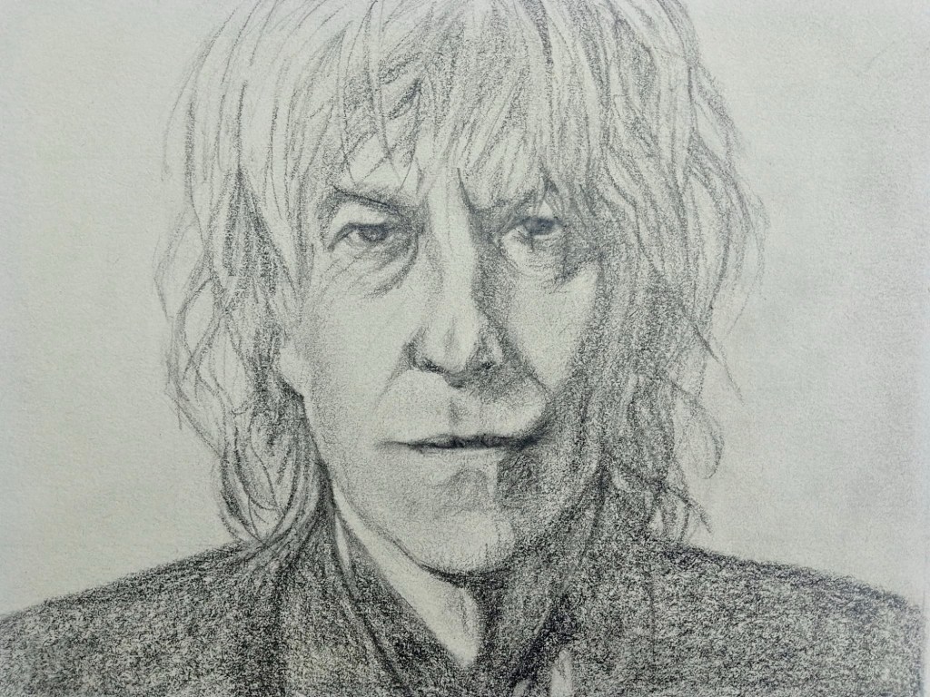 Angela drew Bob Geldof’s portrait for the recent Live Aid 1985 session and completed it at home. Beautifully drawn it captures Bob and his intense stare at the viewer. Good work, Angela!