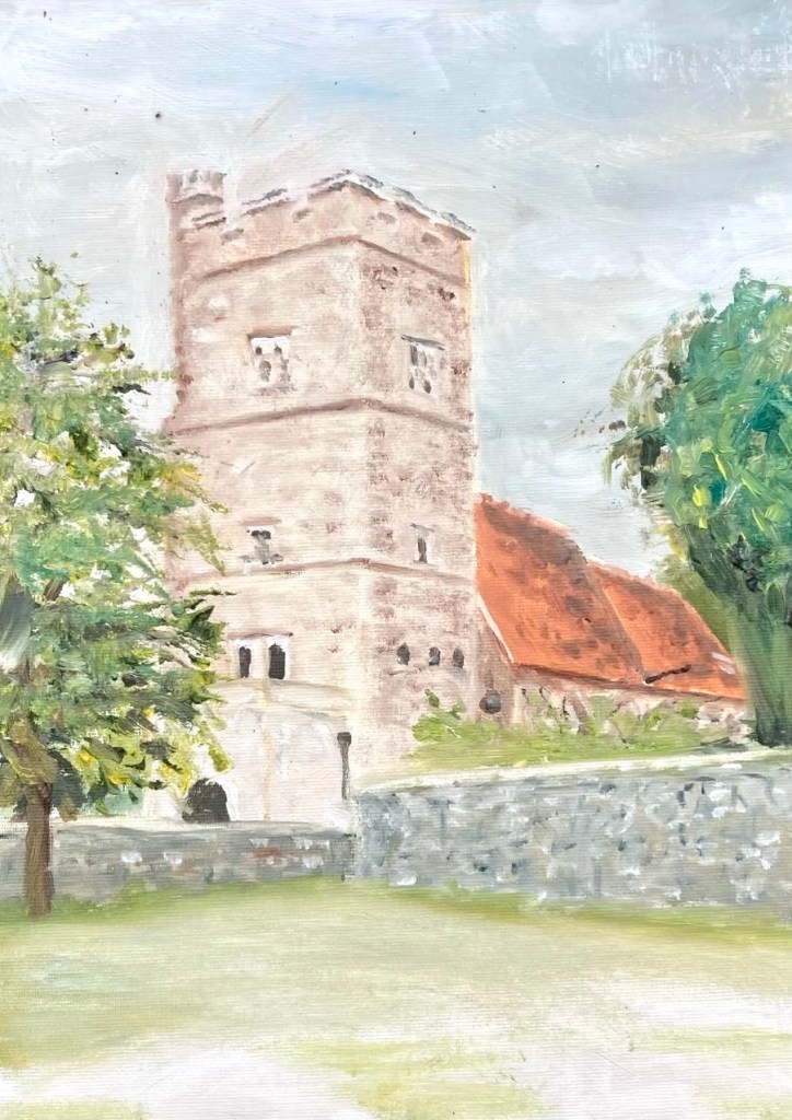 It’s a day to enjoy painting en plein air, but if it’s raining we still meet at the church as there’s an indoor room in the barn with tables and chairs for us to use, though we may have to move boxes around, and a sheltered area outside the barn with benches. If it’s really sunny there are plenty of trees with shade to sit under. There’s a large car park, toilet, and tea, coffee and biscuits as usual.
