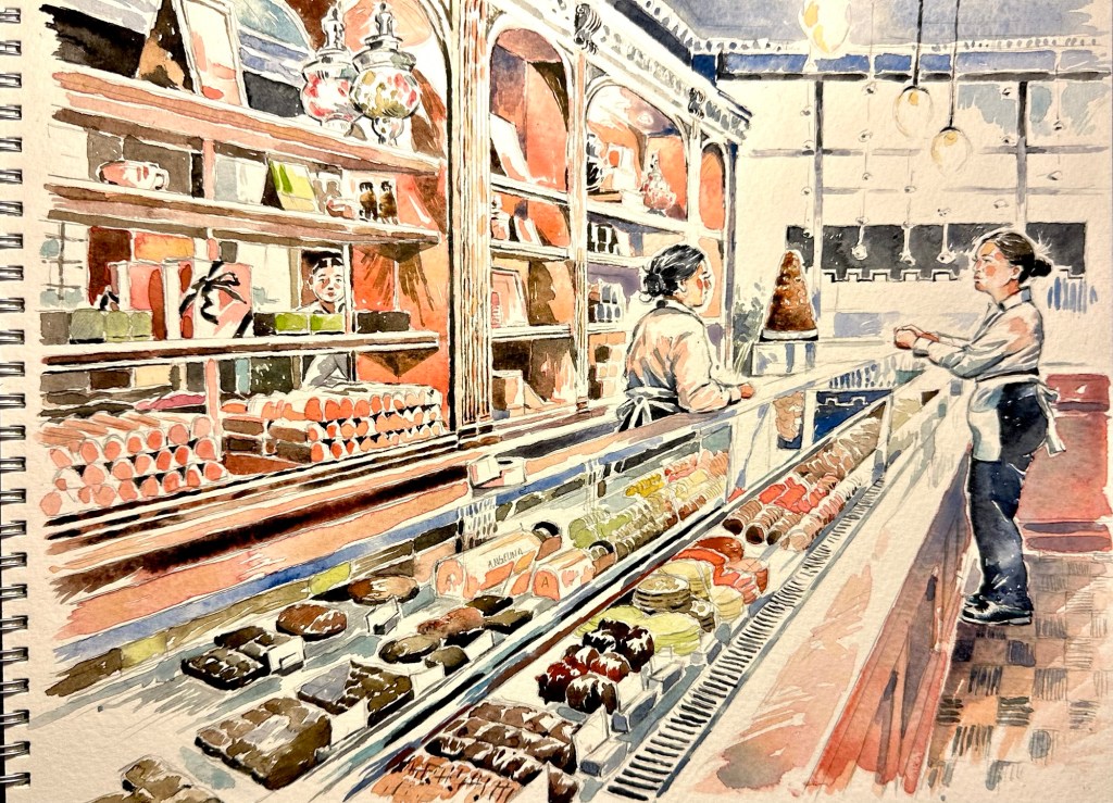 Other artists drew and painted to their own theme, including a finished picture from Peta of the Angelina Tea Room in Paris which she visited last year.