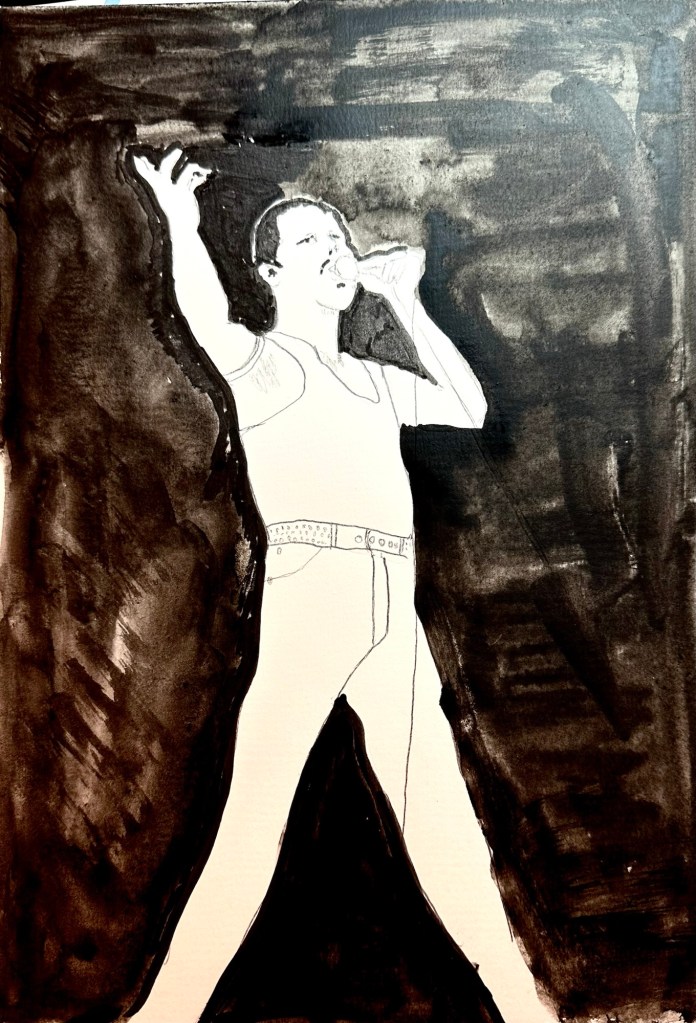 Thirteen members attended the session on a muggy summer’s evening, but the aircon kept us cool. Some artists painted the theme of Live Aid, the dual concerts held in London and Philadelphia in July 1985. Freddie Mercury and Bob Geldof were the most popular subjects to draw and paint.