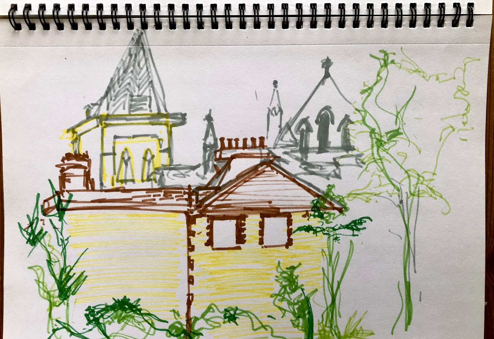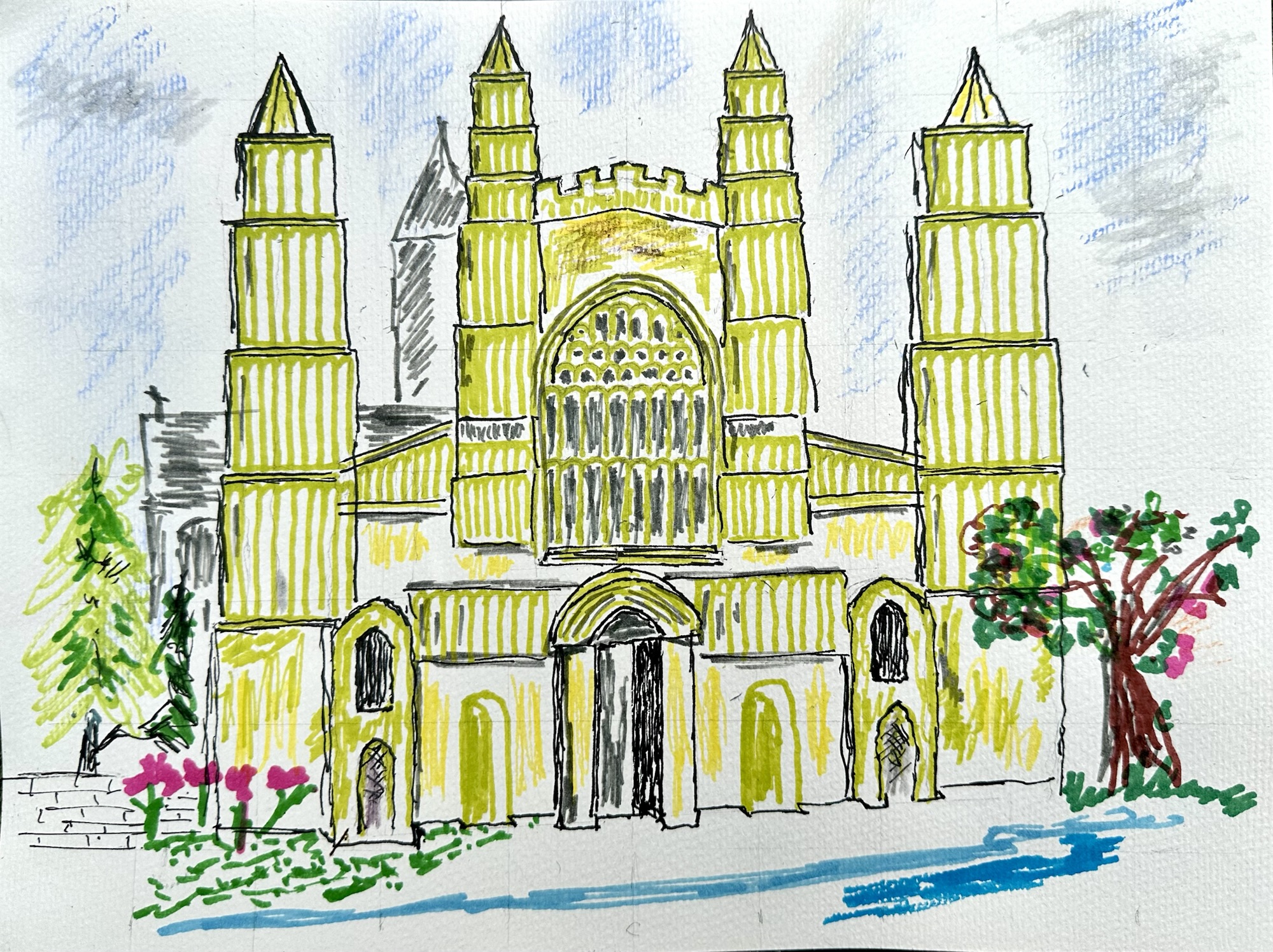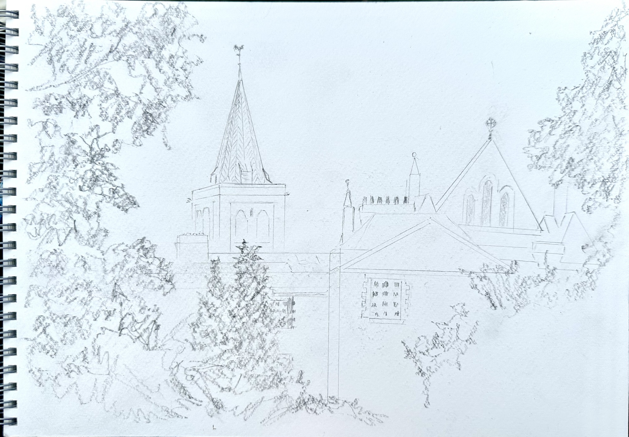 There are a couple of benches but not enough for everyone so you’ll need to bring a folding chair to sit on and your own water to rinse your brushes in. Bring lunch too, but hopefully the cafe in the crypt will be open on the day if you fancy eating there. Travel light with your art equipment, don’t bring everything or you’ll be stuck with a heavy bag on the day. If you use acrylics be aware there will be nowhere to rinse equipment, so bring a carrier bag to take home your unwashed palette and paintbrushes. Watercolours, pastels, coloured pencils, sketching pencils or ink pens would be a better choice.