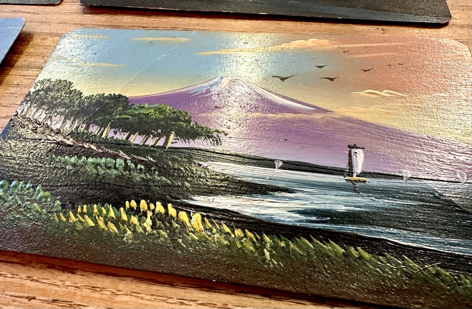 Whilst sorting through her late mum’s items, Susan came across some postcards of Mount Fuji which have been painted in rich colours. Aren’t they beautiful?