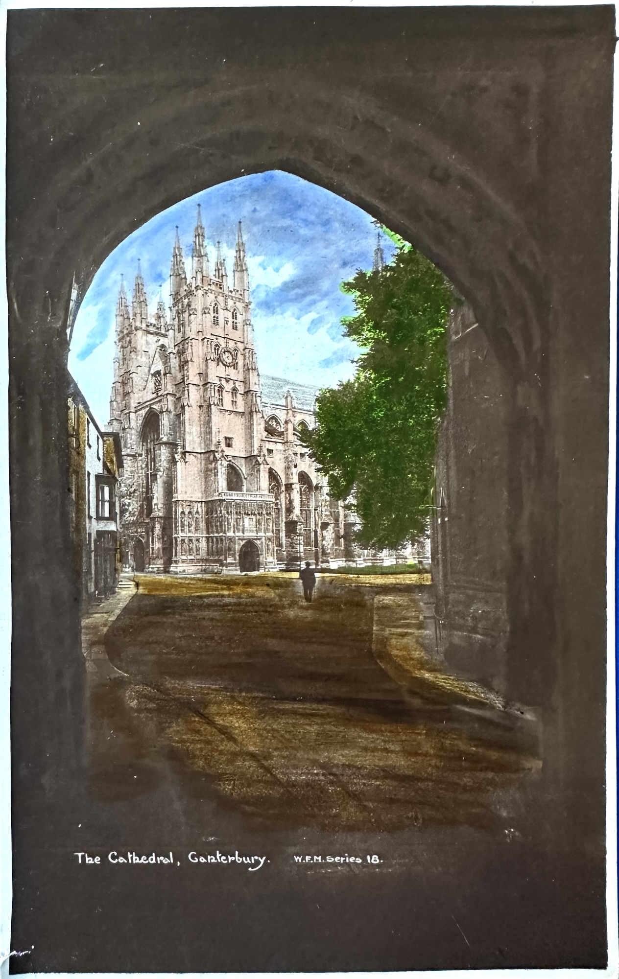 Use colours that would be in the scene or use different colours for a more mysterious or abstract effect. A few postcard have already been lightly tinted and the subtle effect is very pleasing.
