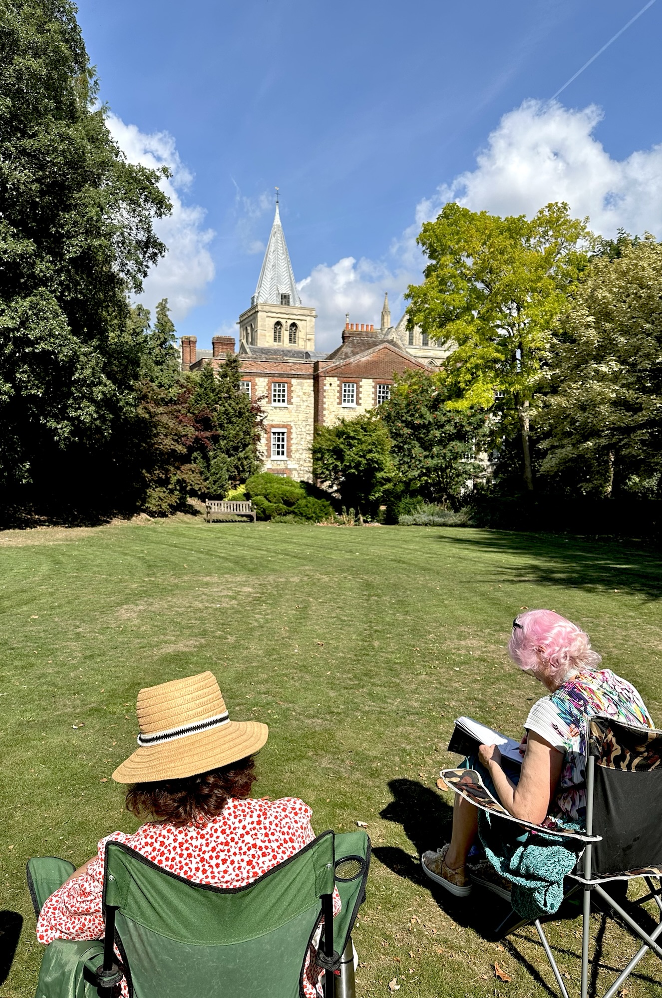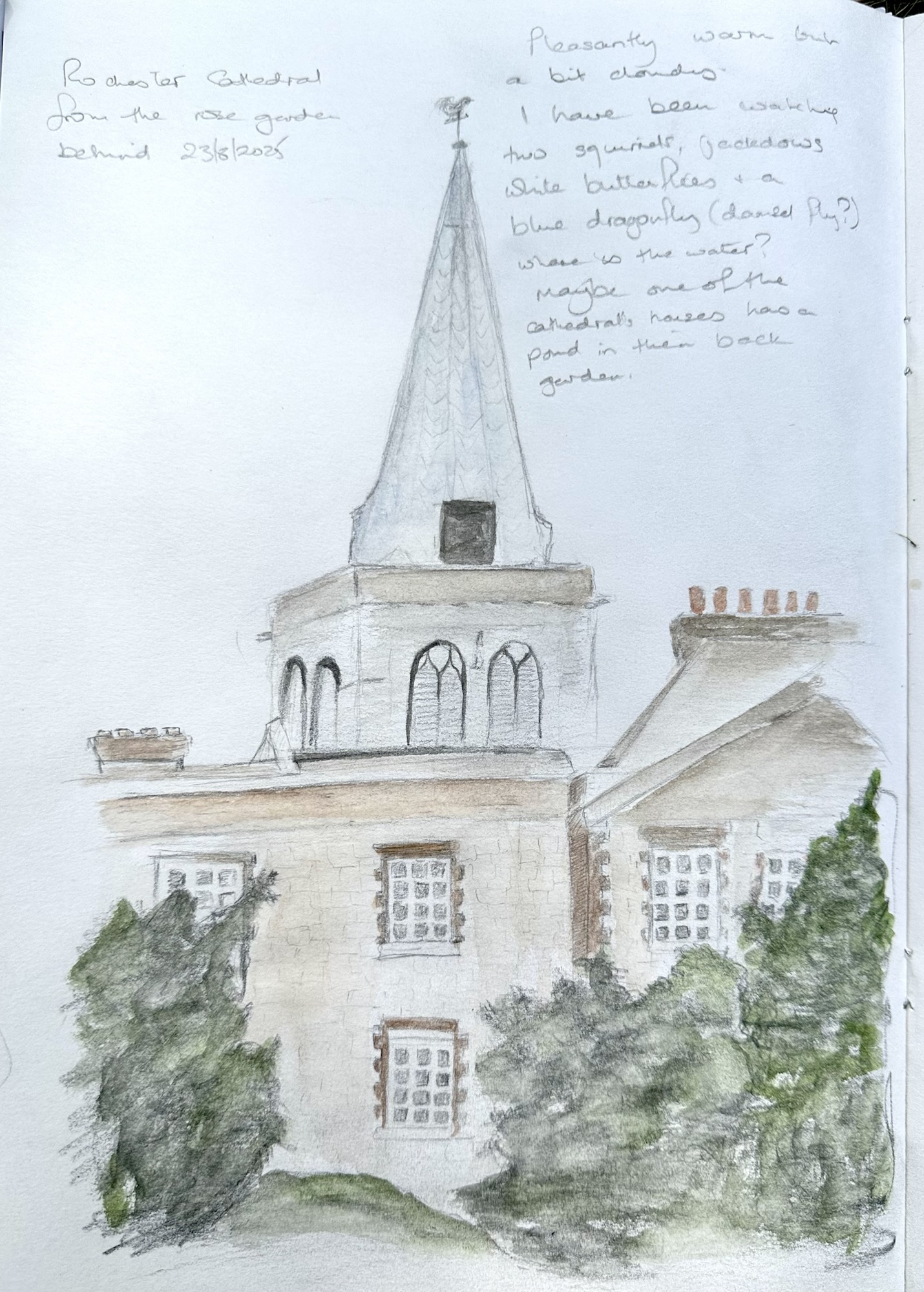 We will be meeting in the King’s Orchard, the private gardens behind Rochester Cathedral, for this month’s outdoor session. We first visited these gardens three years ago and Kay has kindly gained permission for us to sit and enjoy the gardens again whilst either drawing and painting the view or painting our own ideas.