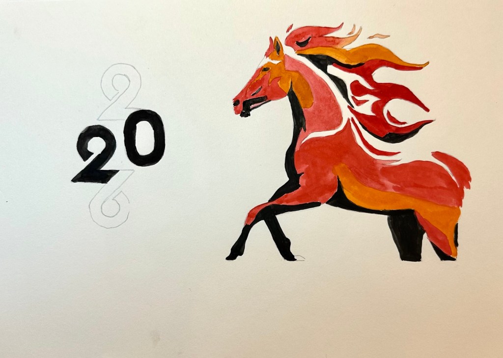 Fourteen members met on Wednesday evening and one artist worked at home. The Chinese New Year of the Fire Horse begins next week and happens only once every 60 years.