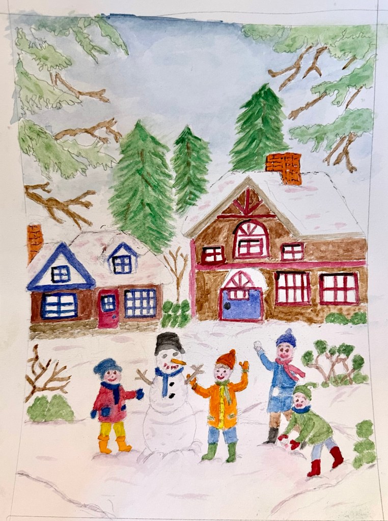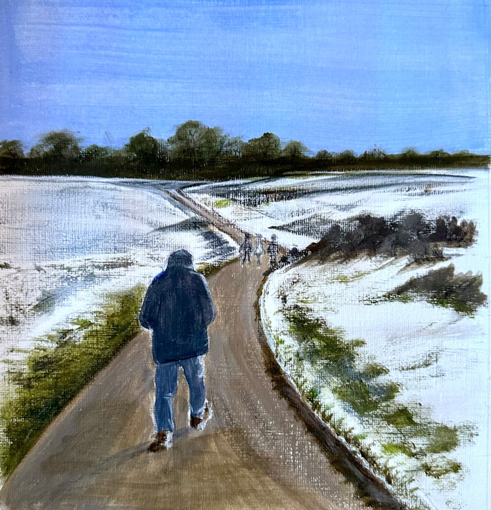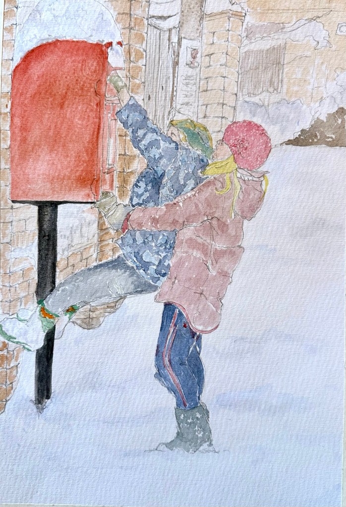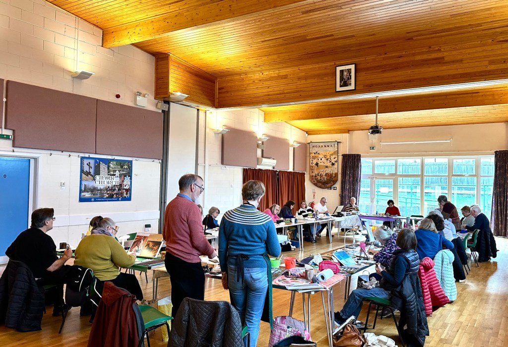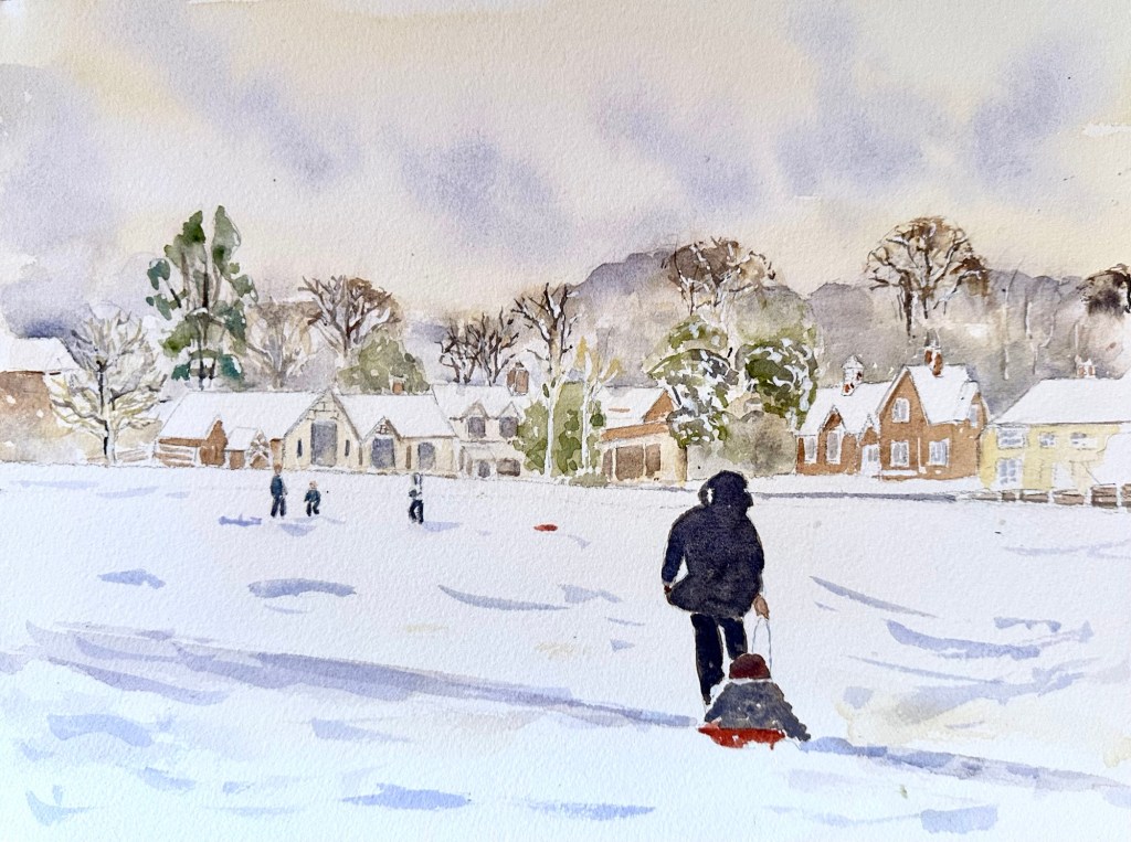 The hall was abuzz with chatter and laughter on Saturday with 26 members attending the session. The suggested subject of People in Winter was popular and everyone worked industriously on their pictures.
