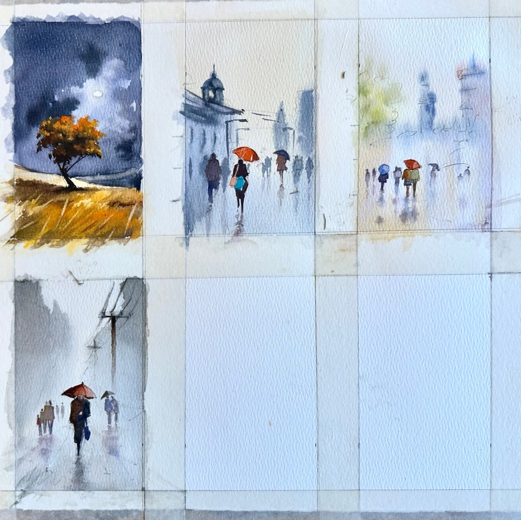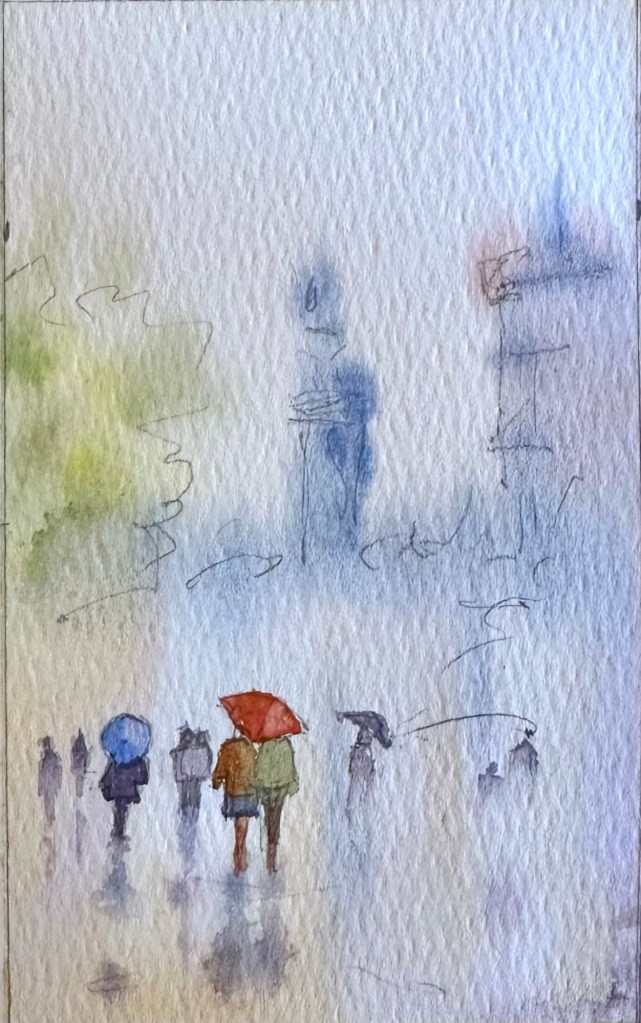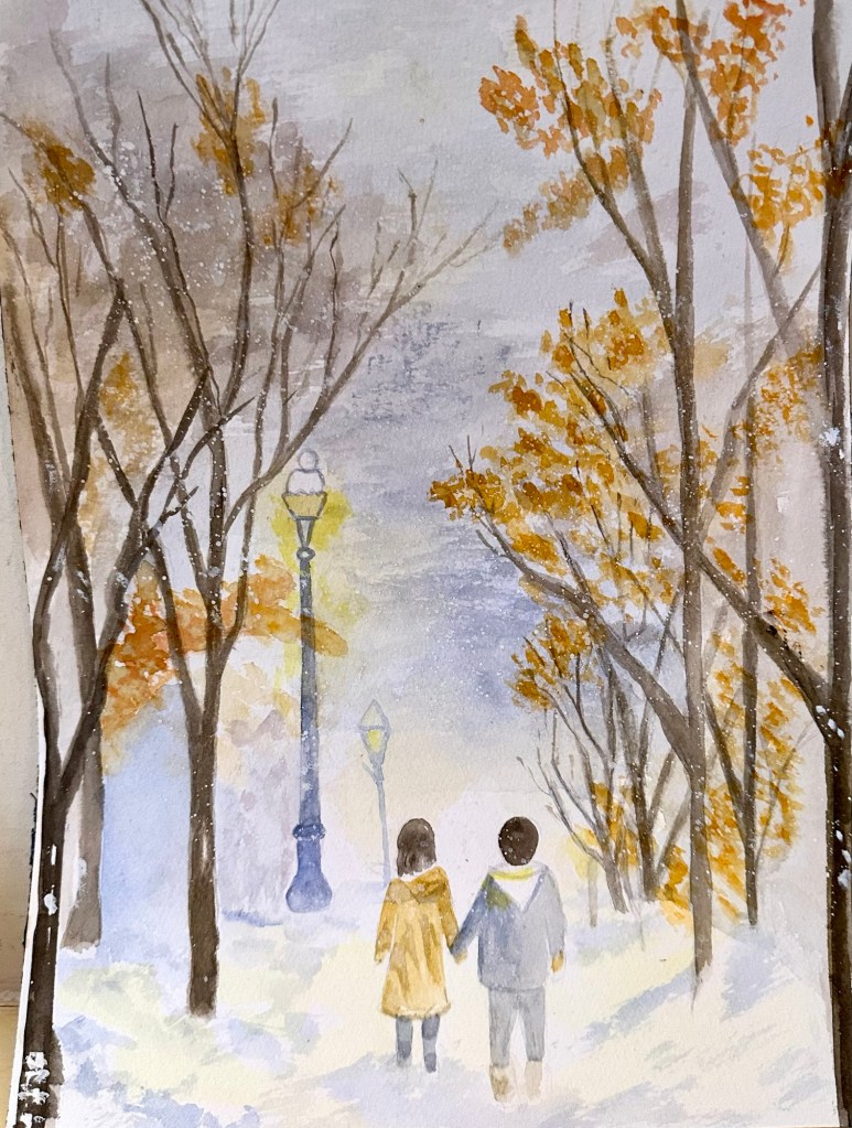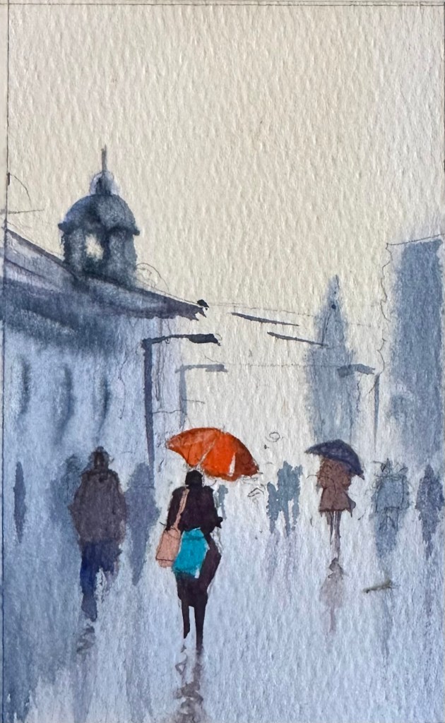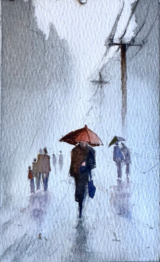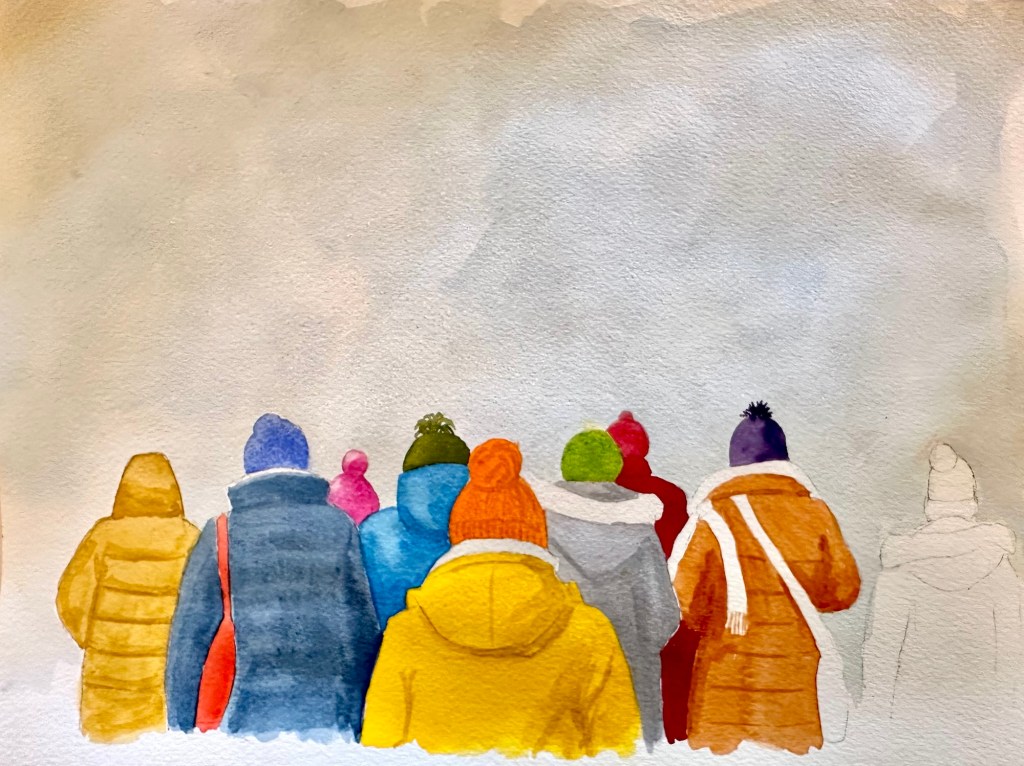 The hall was abuzz with chatter and laughter on Saturday with 26 members attending the session. The suggested subject of People in Winter was popular and everyone worked industriously on their pictures.