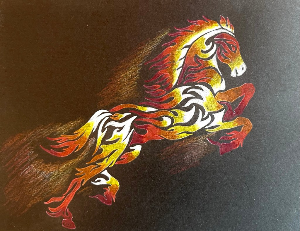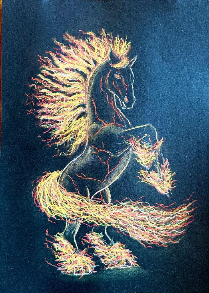 Paintings from previous sessions on Animals in Winter and the Chinese New Year of the Fire Horse were worked on and some completed.