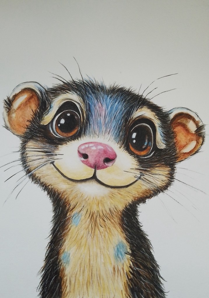 Some artists drew and painted their own themes. Sandra’s stoat is beautifully drawn in many colours and looks a cheeky chappy.