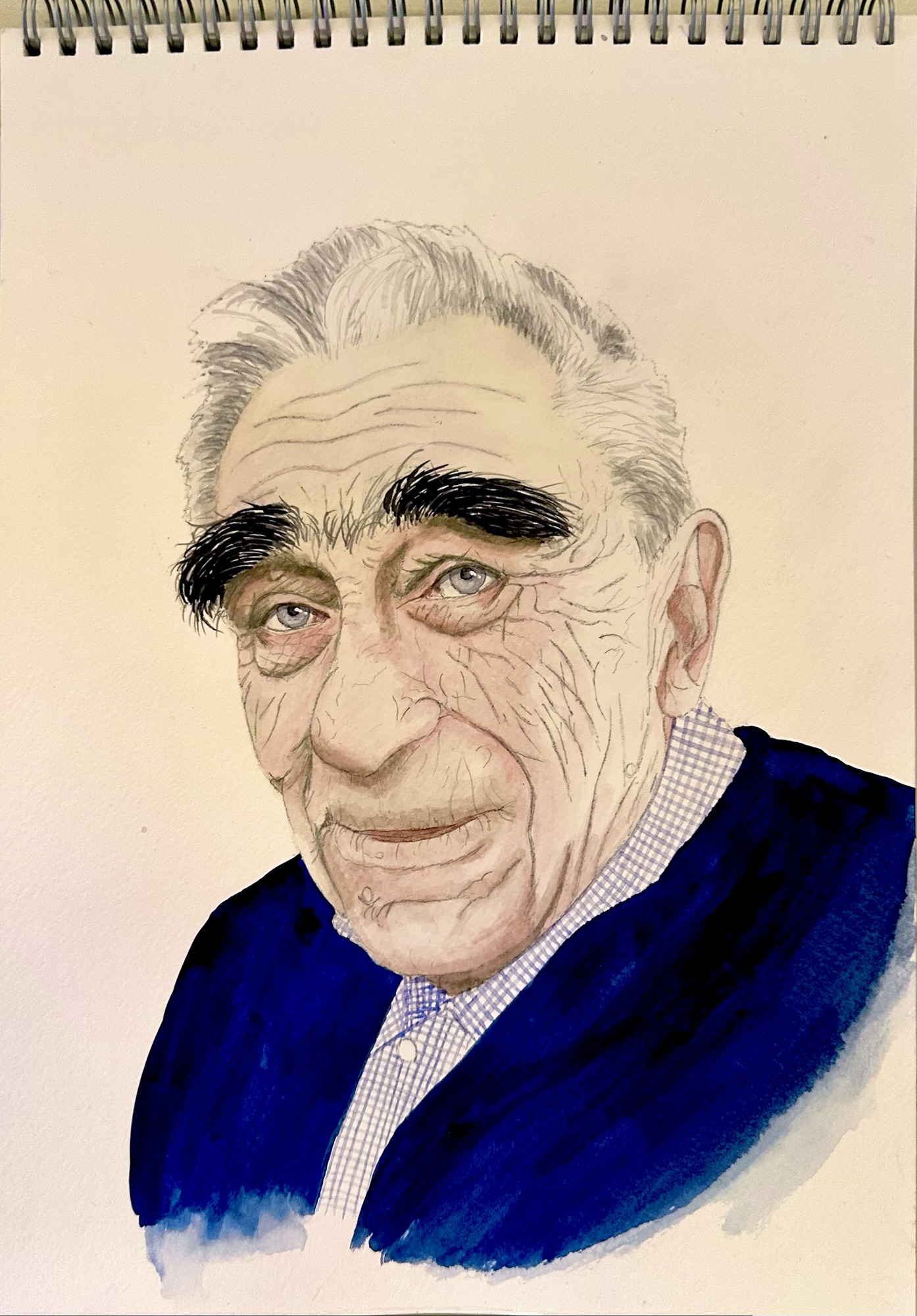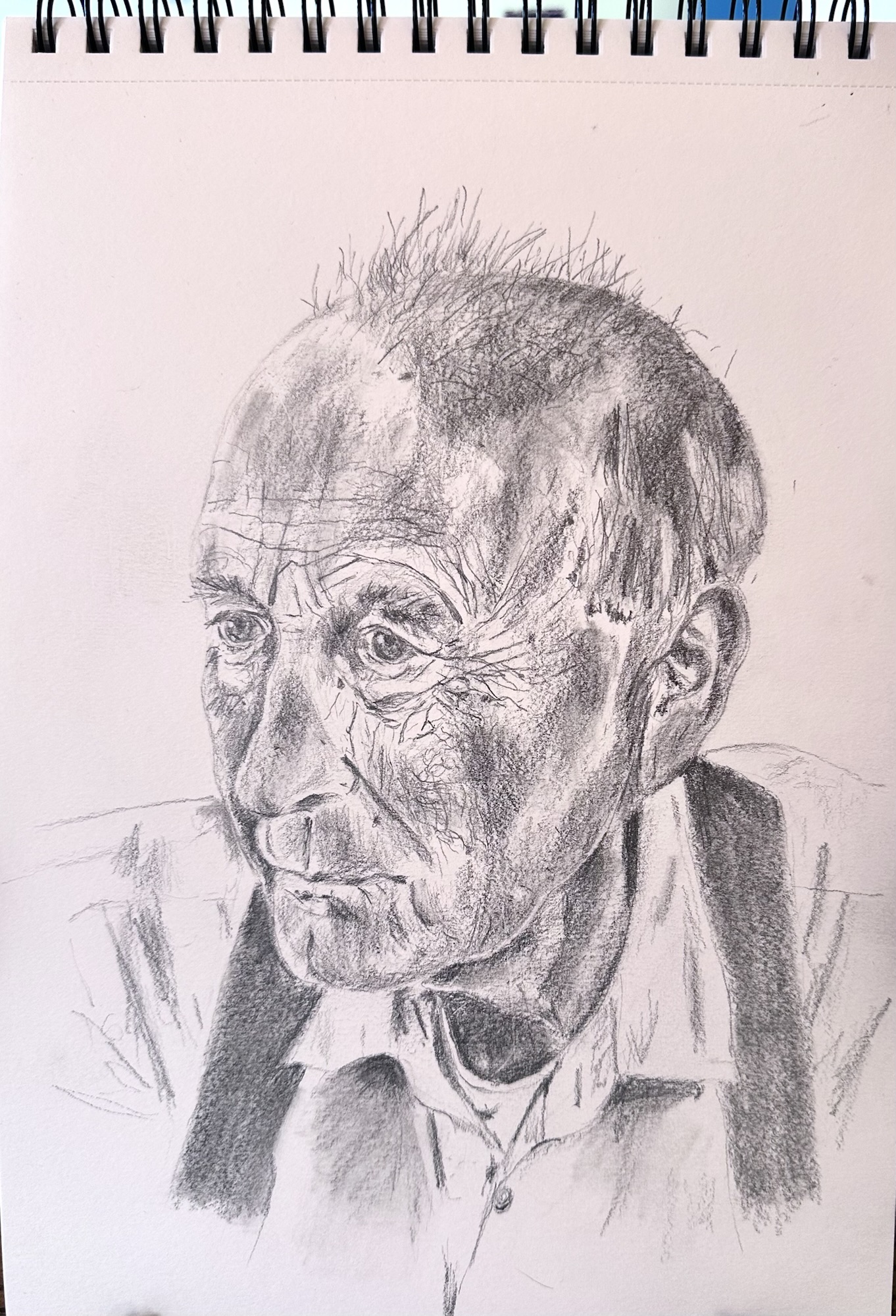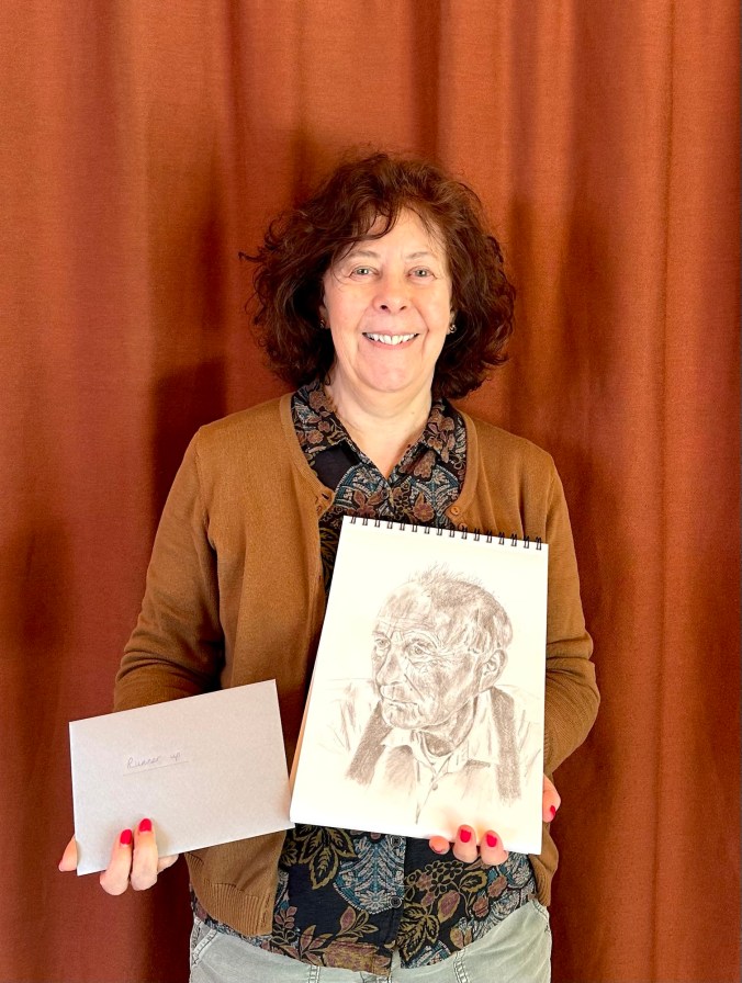 The runner-up was Susan with her pencil study of Devon based sculptor Peter Randall-Page, RA. The portrait was in pencil with delicate marks and bold strokes defining Peter’s face. Well done, Susan!
