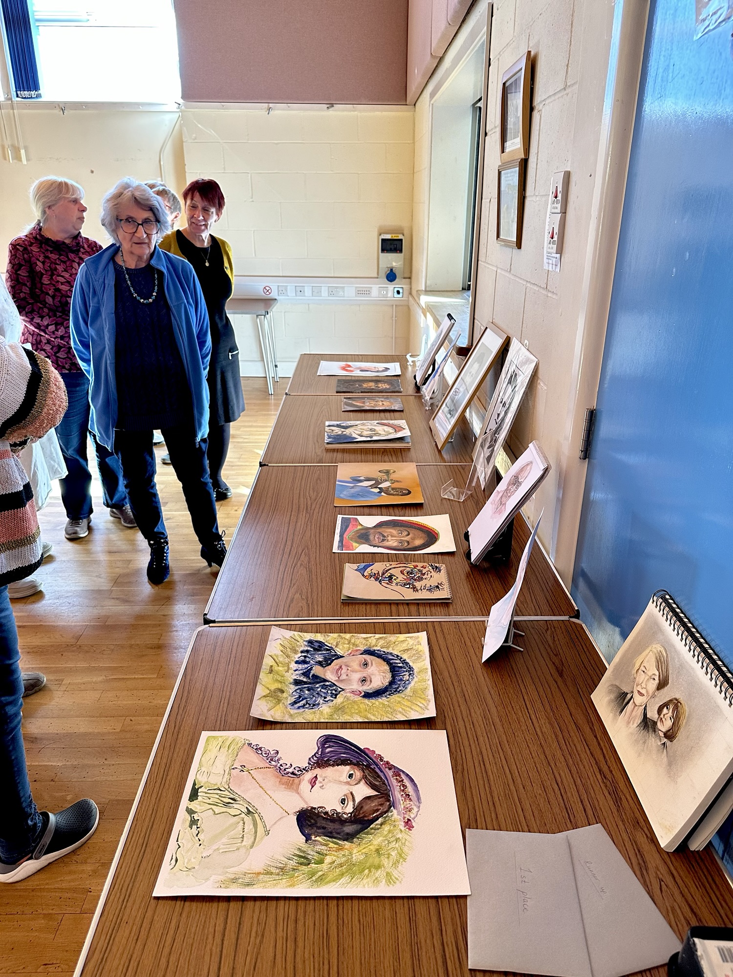 Twenty members met on Saturday to start or continue drawing and painting for our annual competition, this year on ‘Portraits’. Our competitions are friendly affairs and not fiercely contended so there was lots of chatter throughout the day over a cuppa and biscuits.