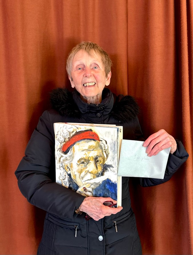 The winner was Mary with her portrait of Keith Richards from the Rolling Stones. Painted with energy and positive mark-making the portrait was bold and outstanding. Well done, Mary, we loved your painting!