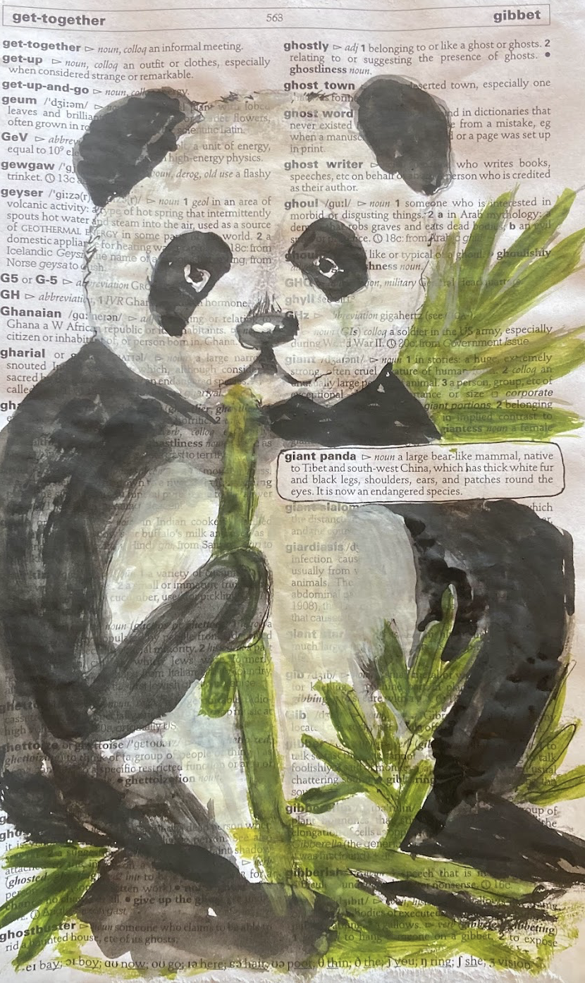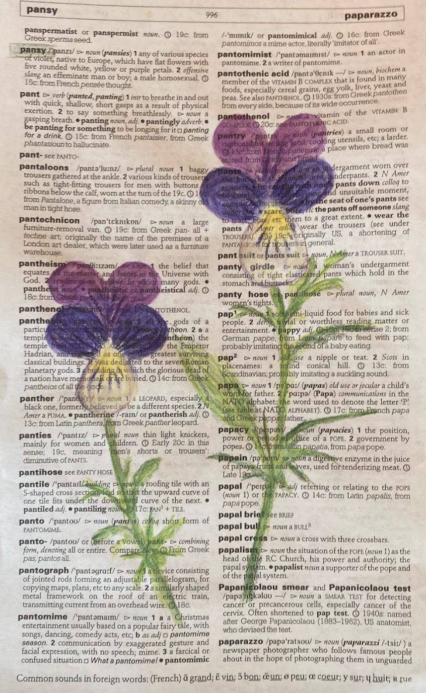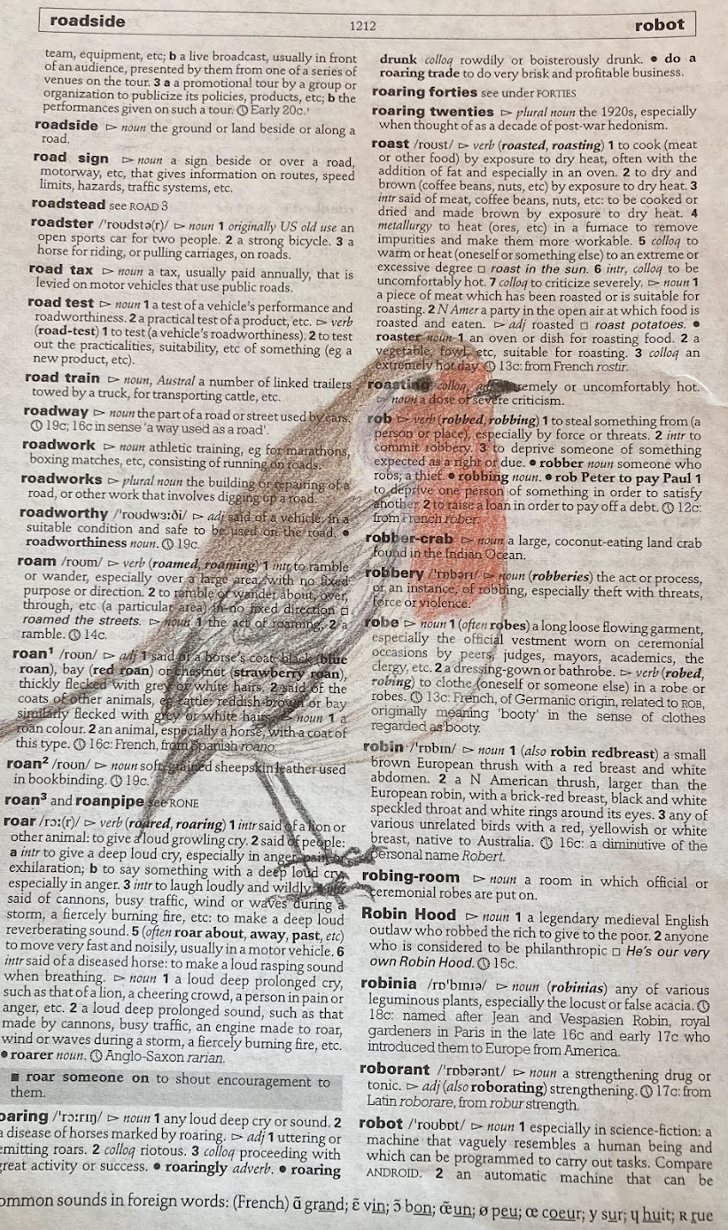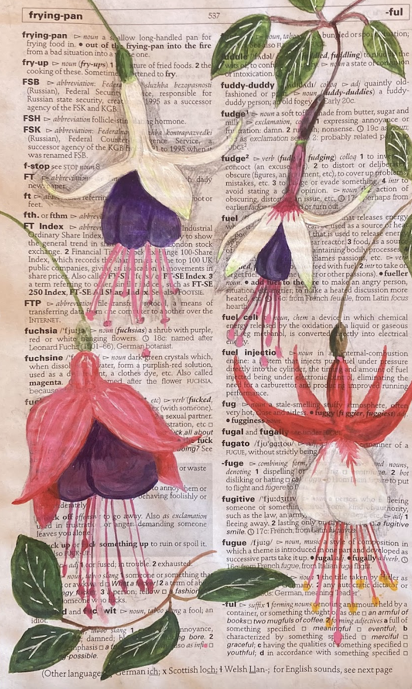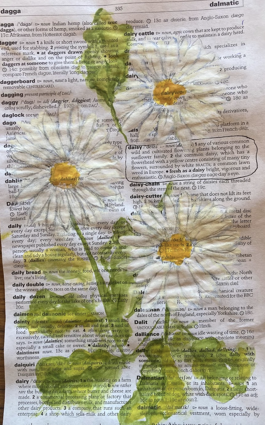 Some members continued with the Wednesday challenge to paint or draw an image which related to a page from a book, newspaper or dictionary.