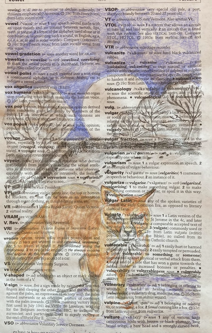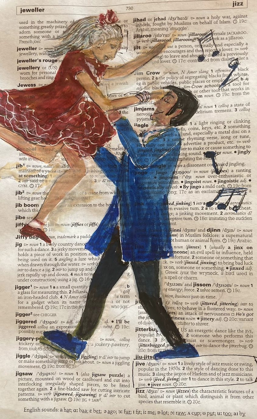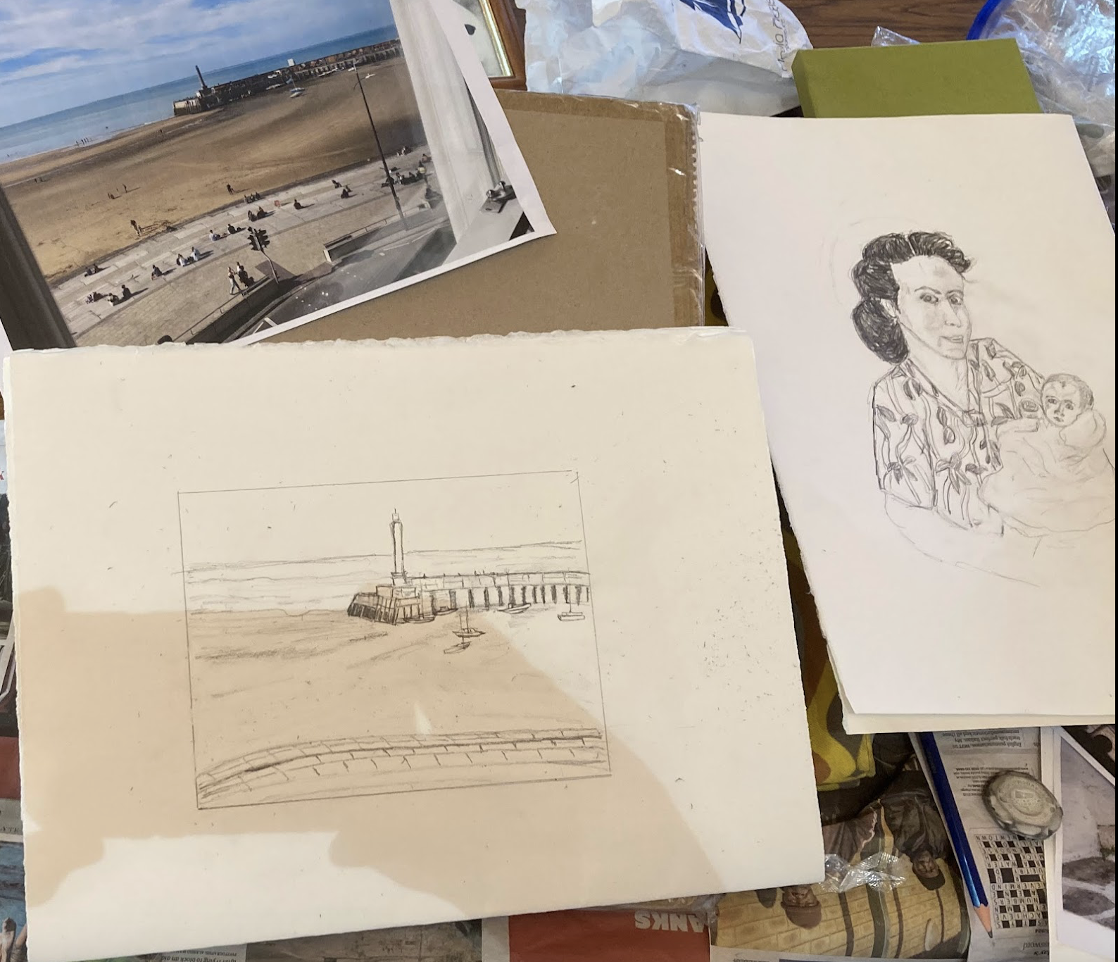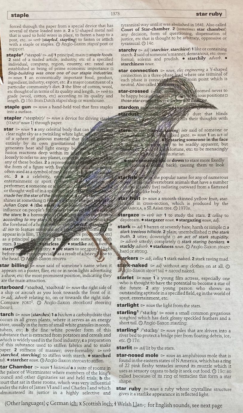 Some members continued with the Wednesday challenge to paint or draw an image which related to a page from a book, newspaper or dictionary.