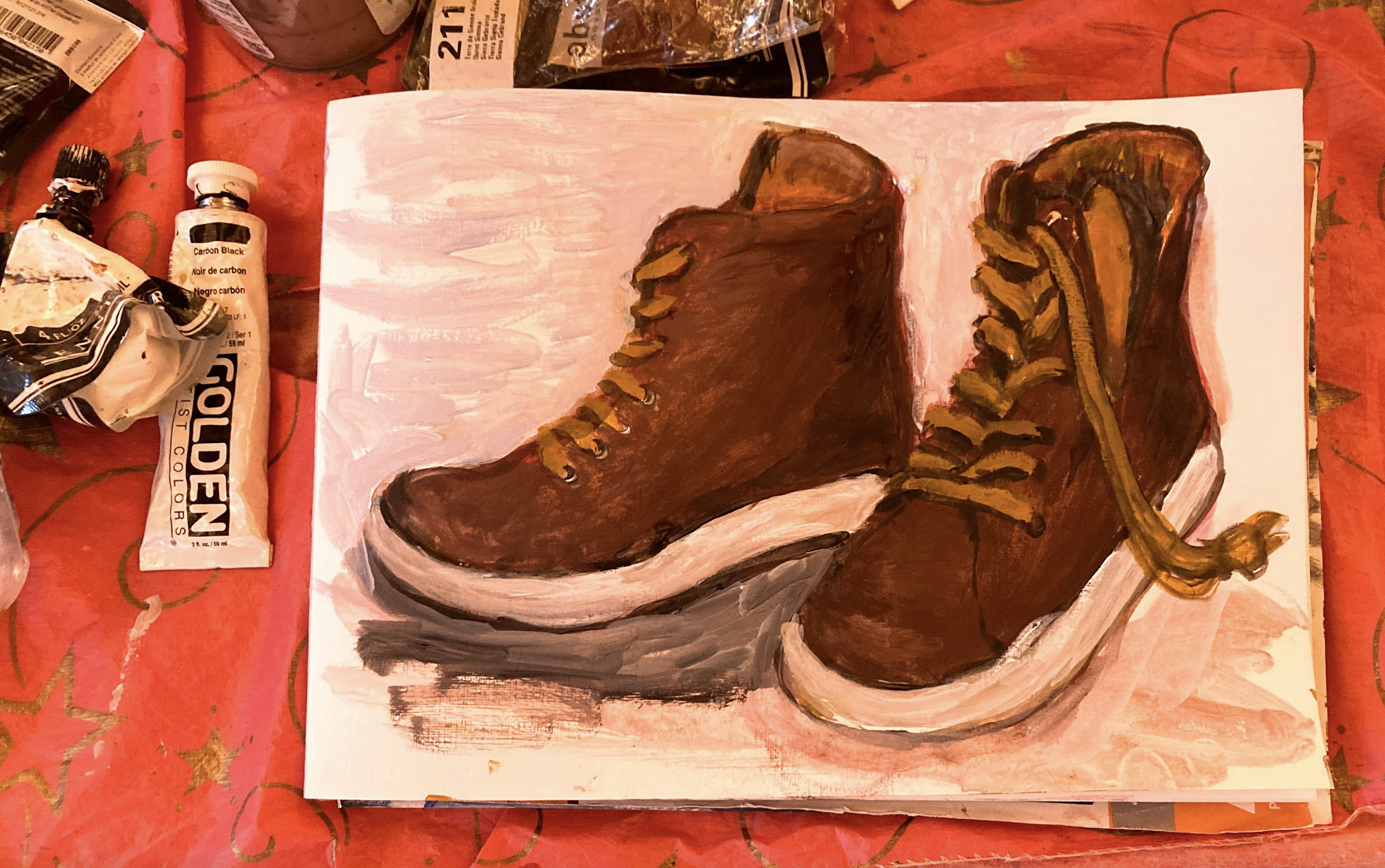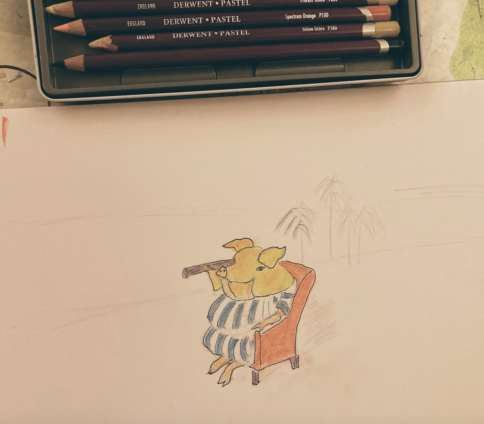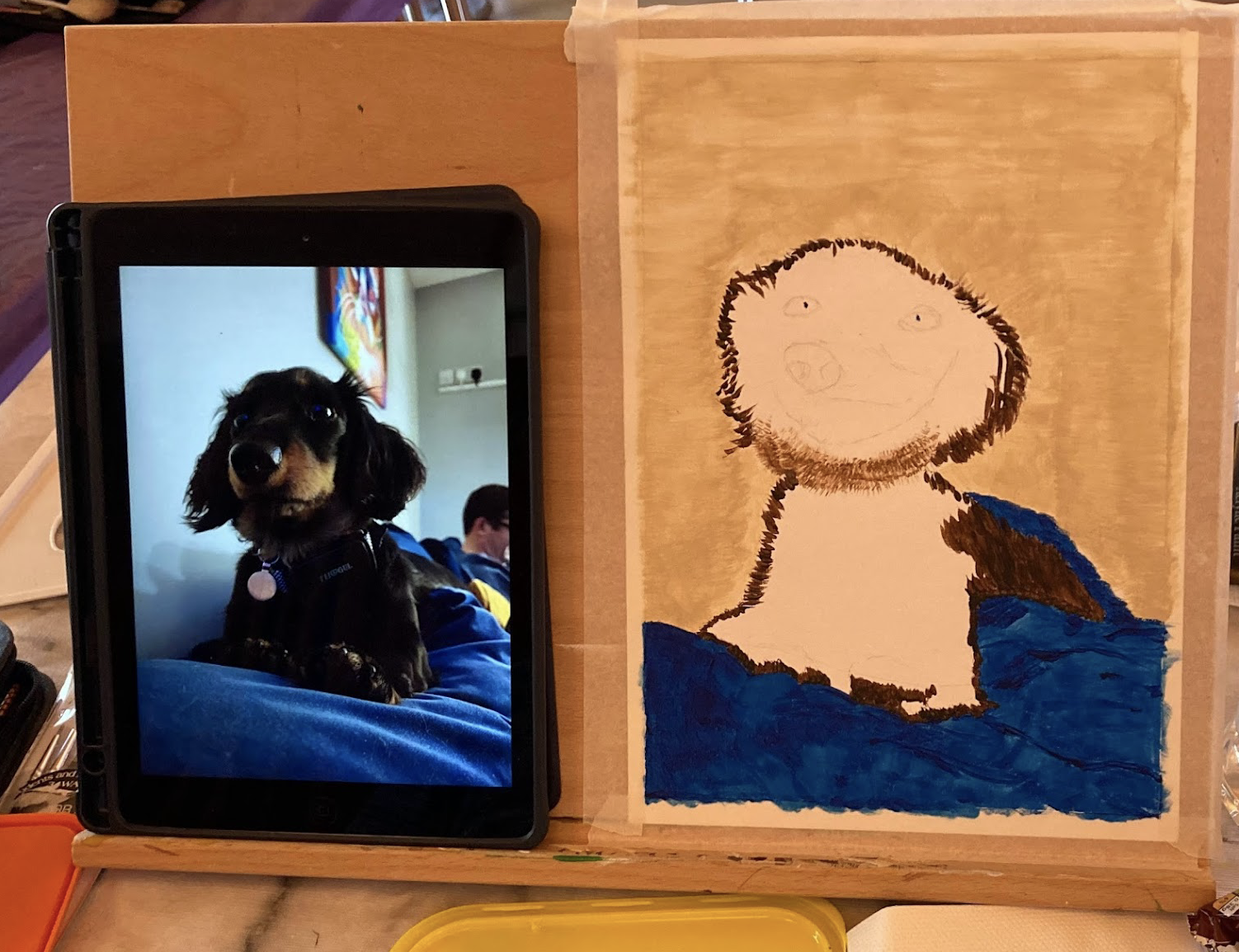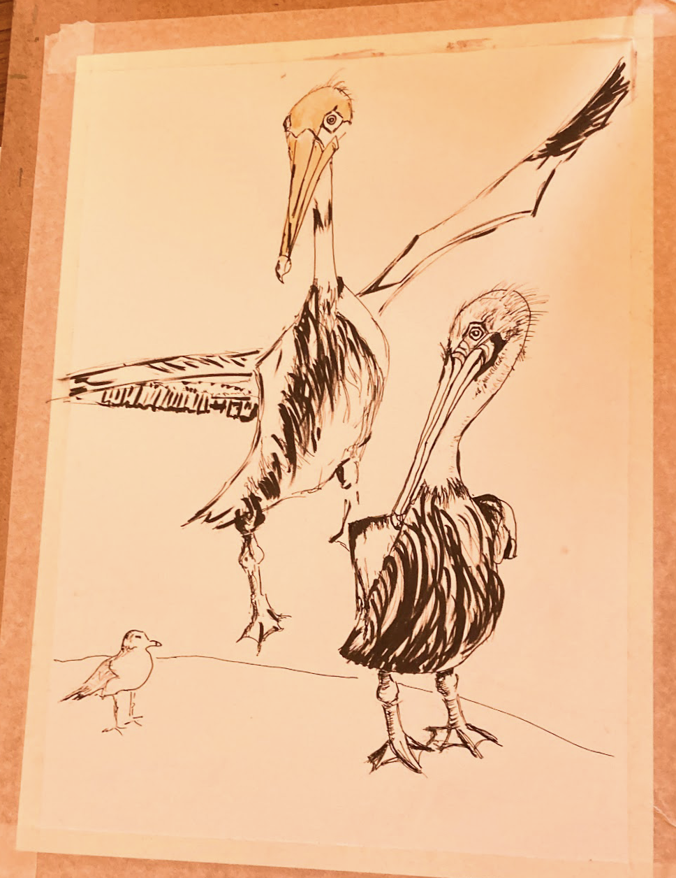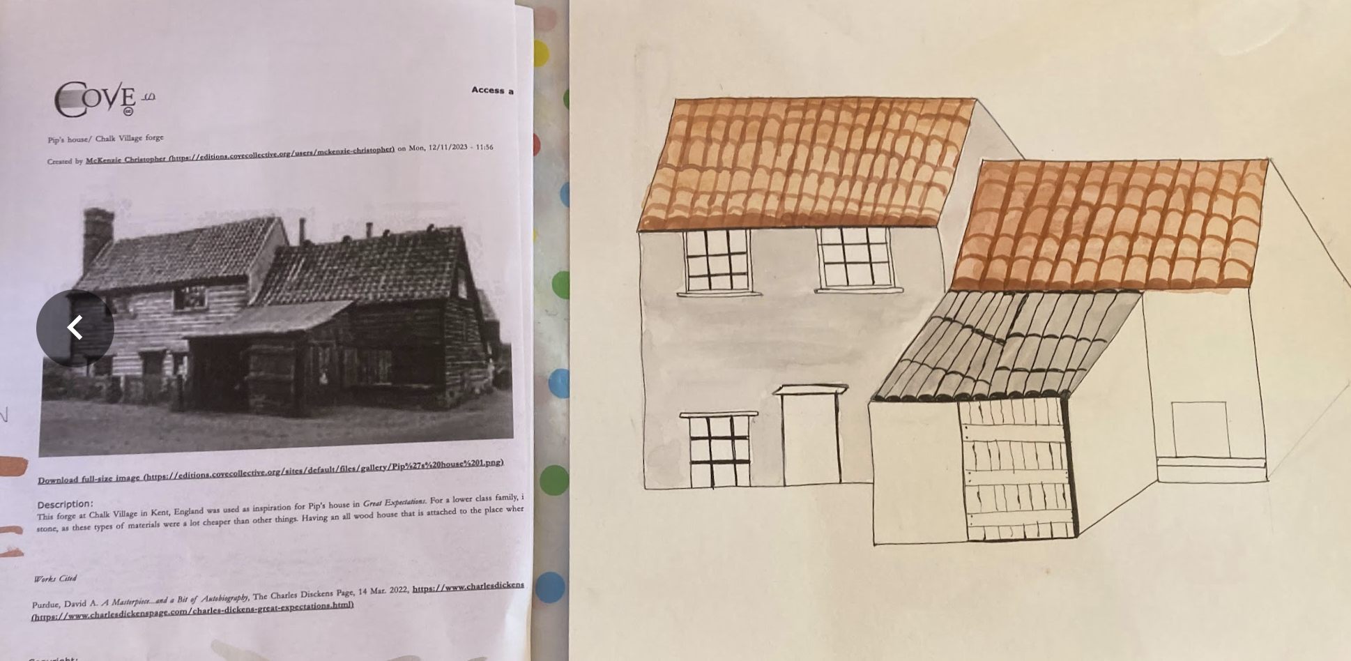 Some members continued with the Wednesday challenge to paint or draw an image which related to a page from a book, newspaper or dictionary.