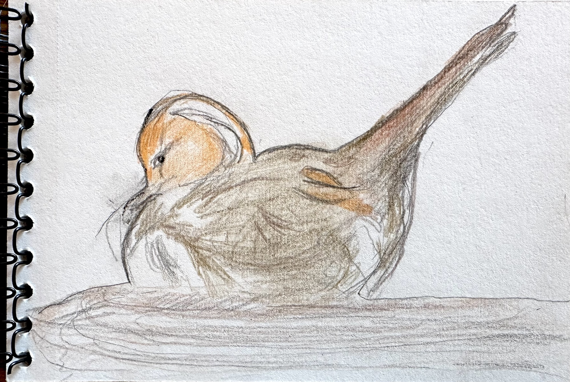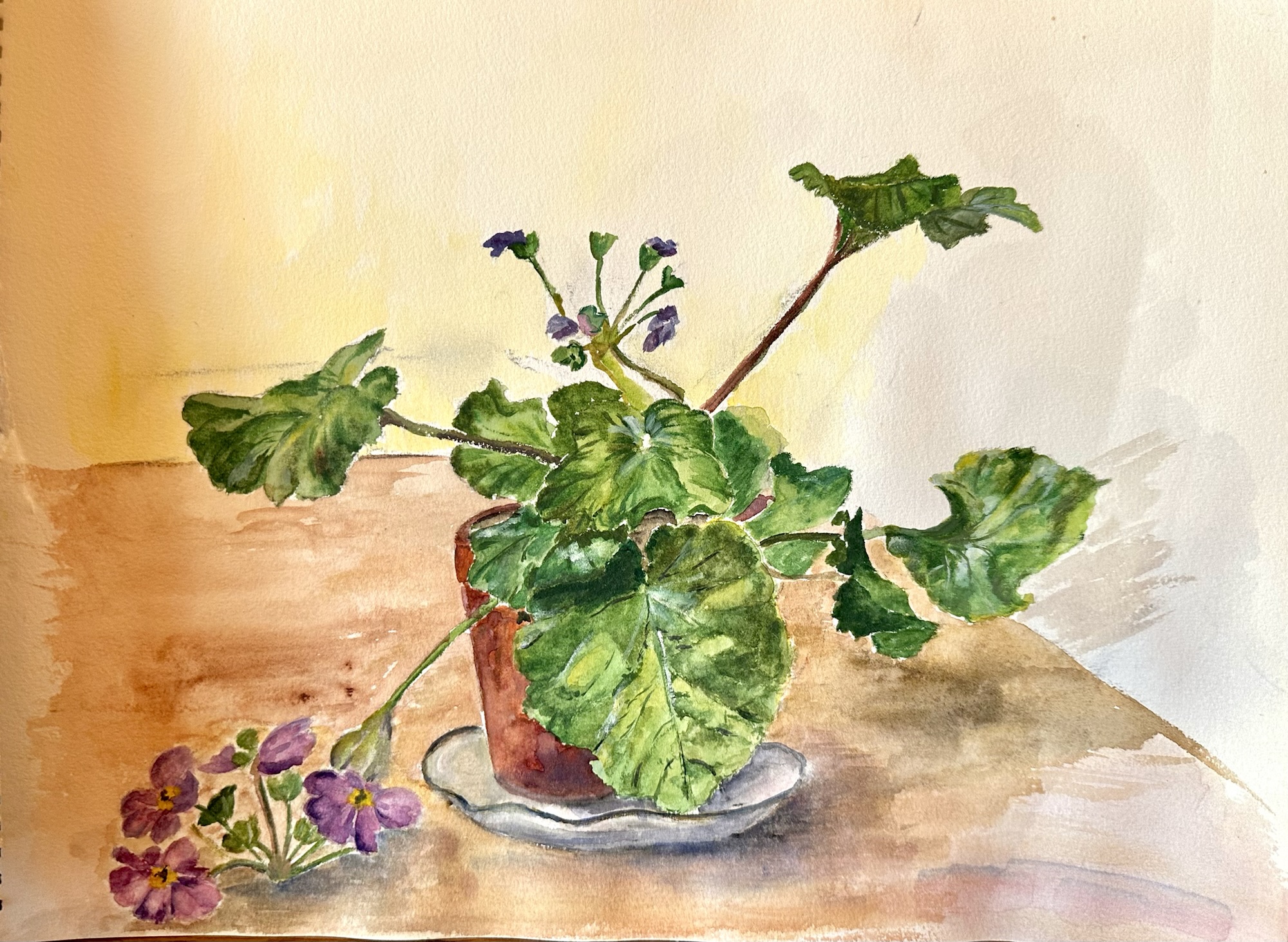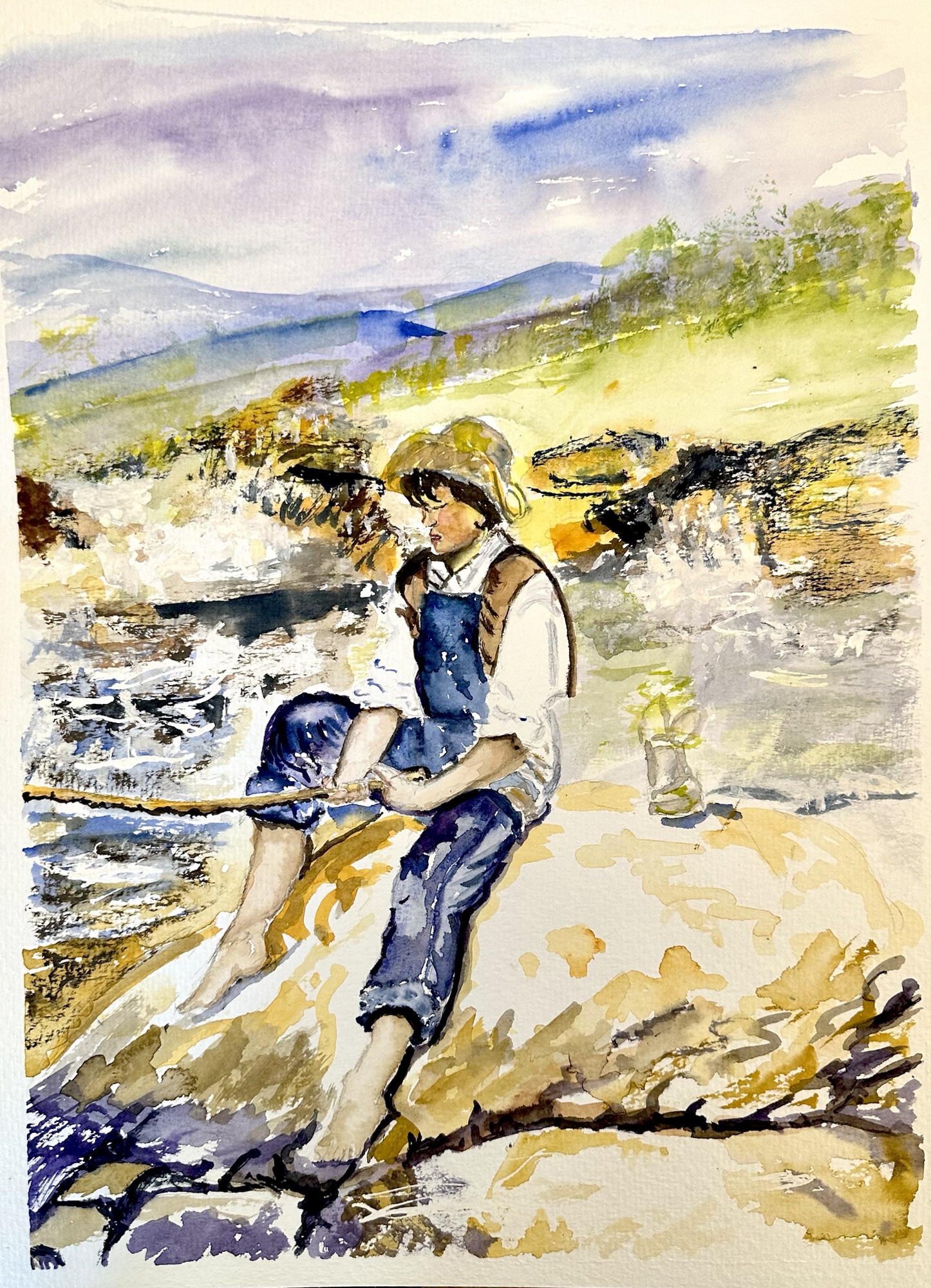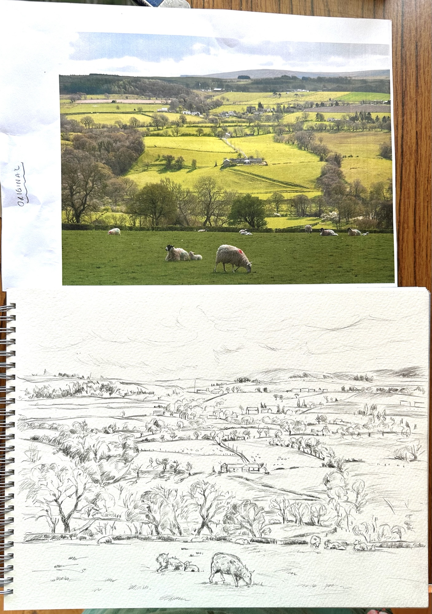 The suggested subject was Jane Austen as this year is the 250th anniversary of her birth. Unfortunately it was not a popular subject with only one member having a go. The picture took a long time to draw out so only a little watercolour paint was added at the session and it will be finished at home.