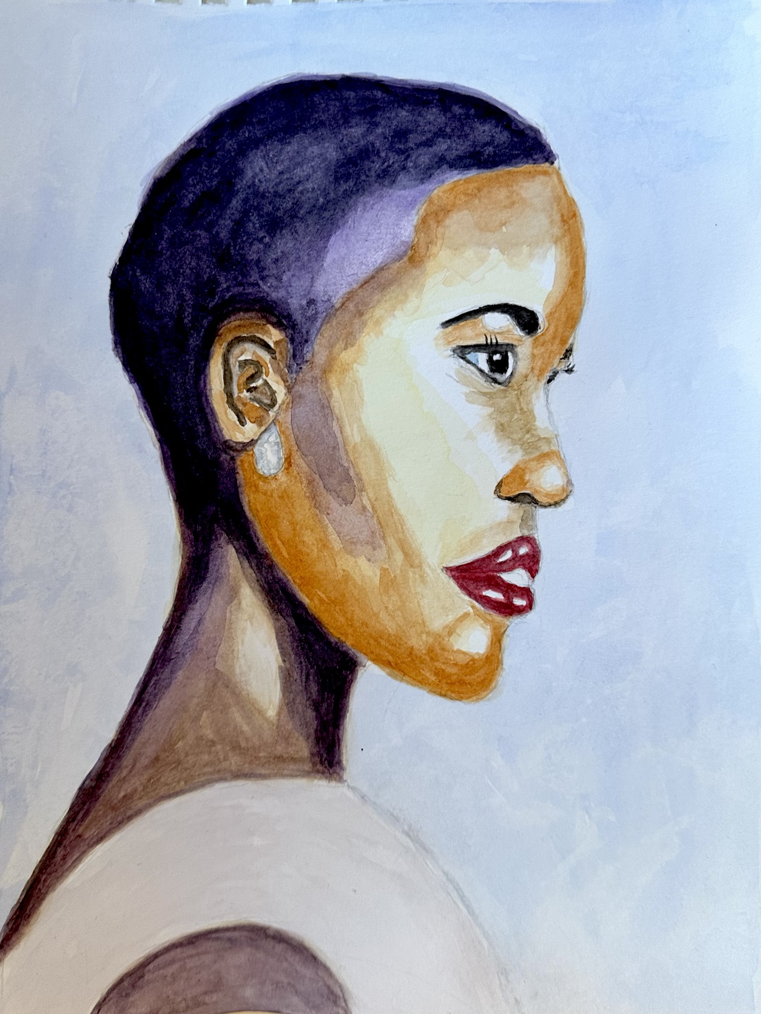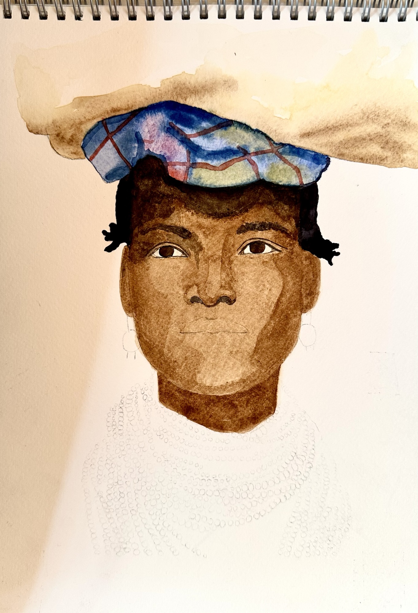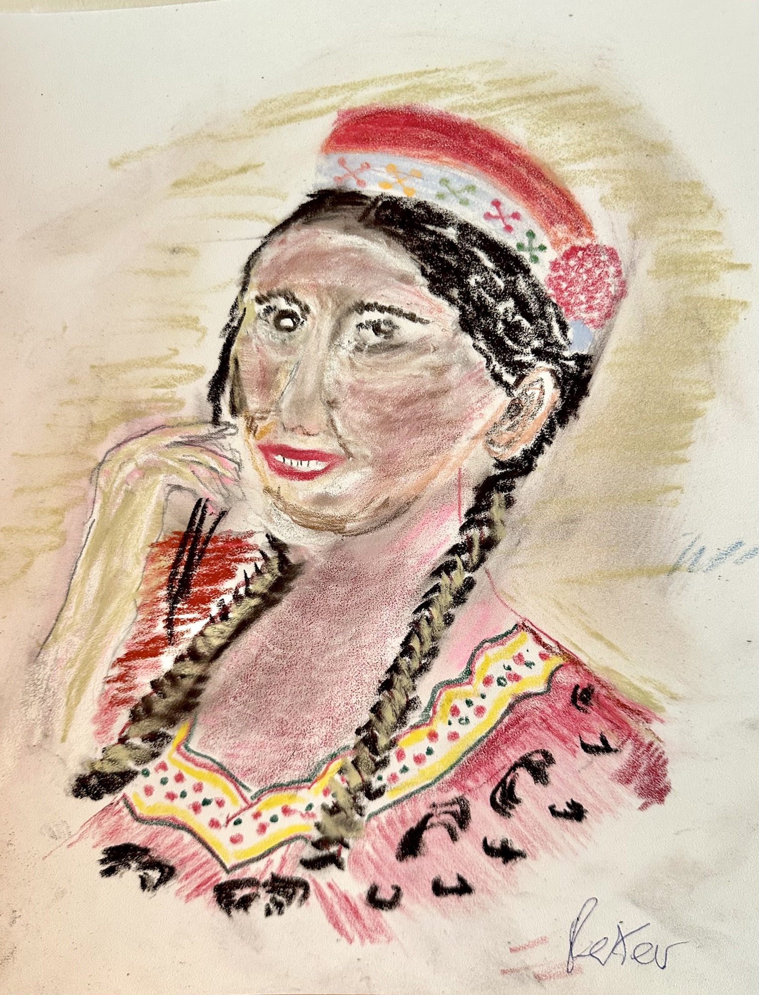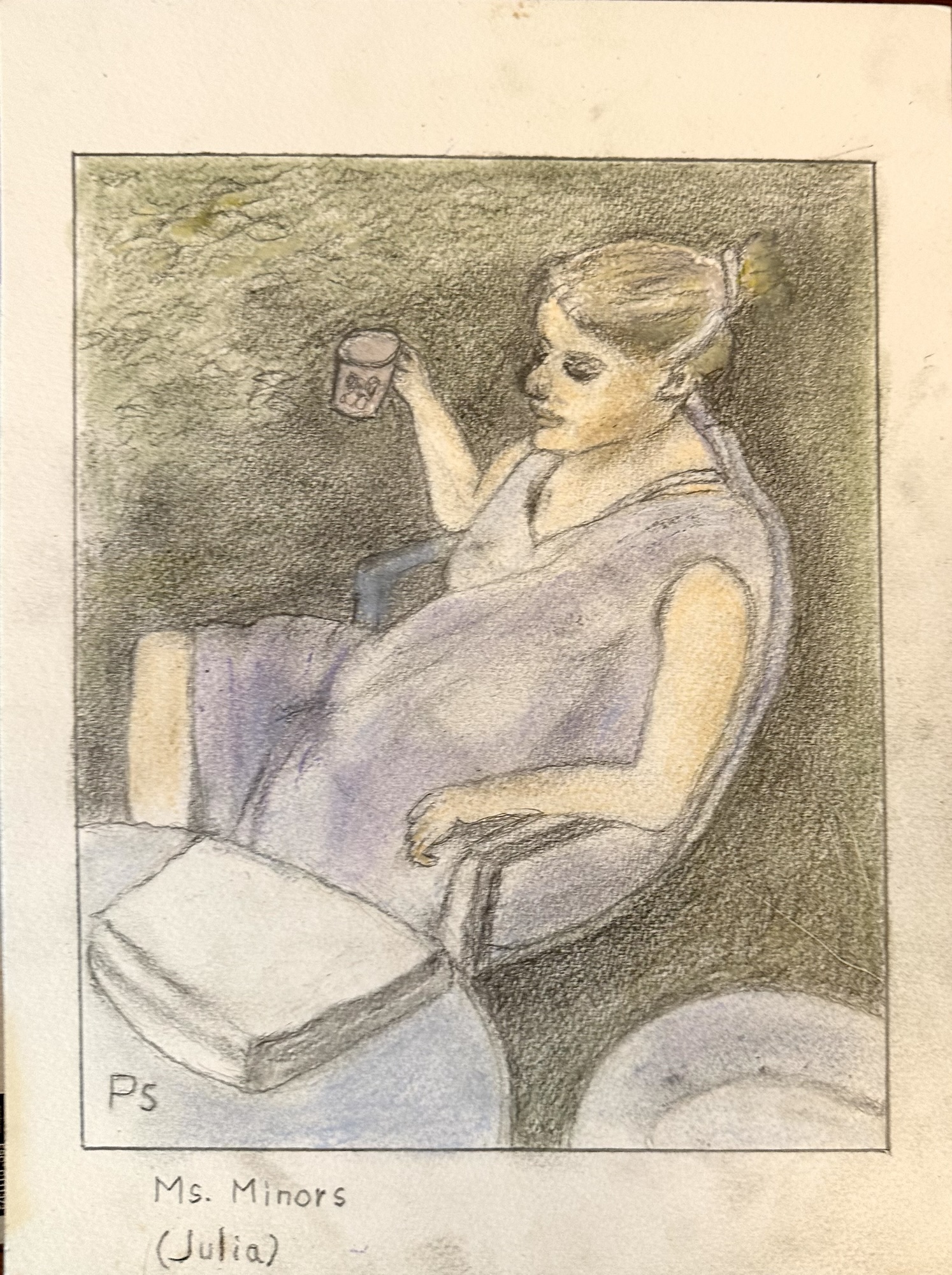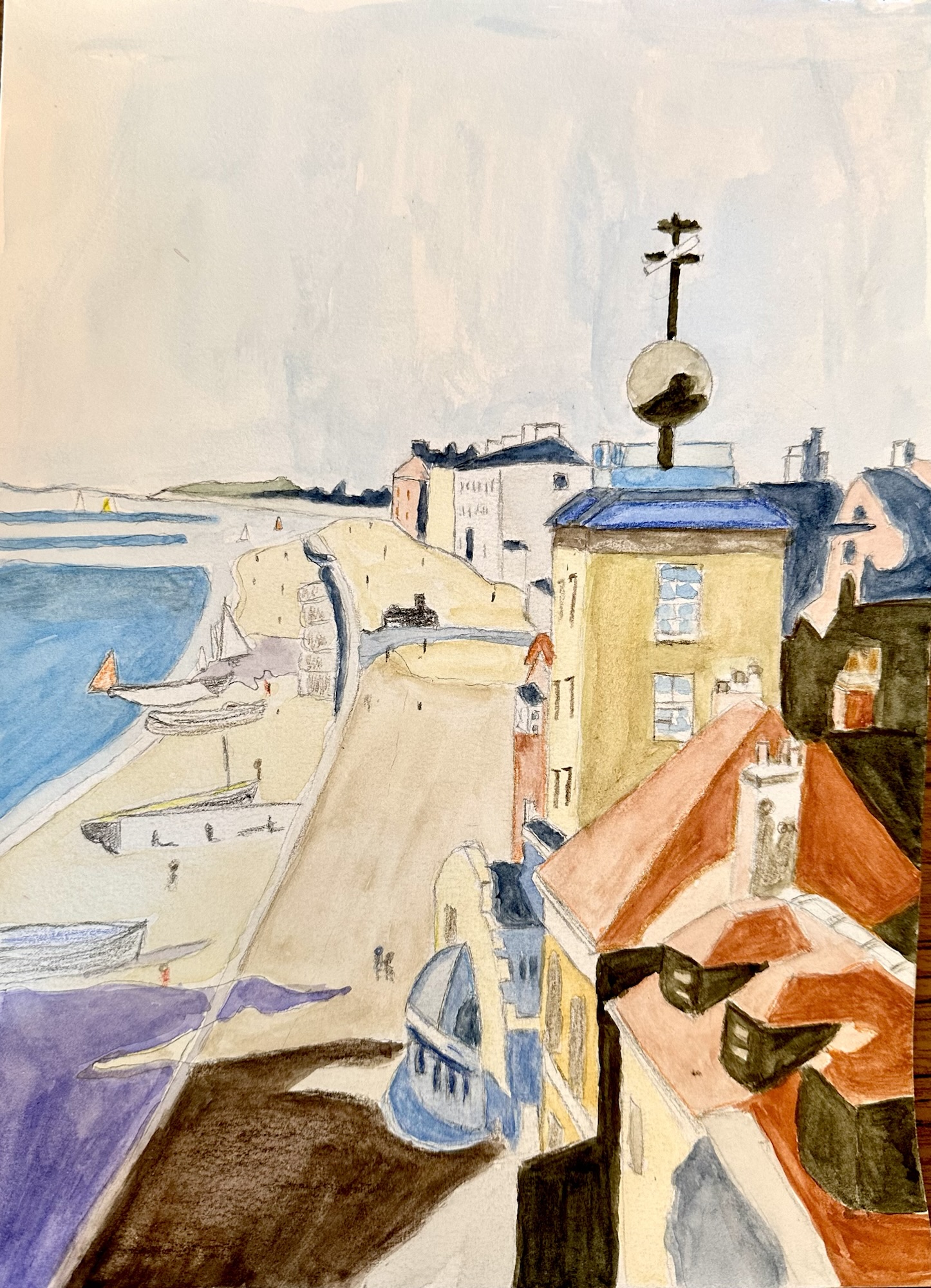The suggested subject was Jane Austen as this year is the 250th anniversary of her birth. Unfortunately it was not a popular subject with only one member having a go. The picture took a long time to draw out so only a little watercolour paint was added at the session and it will be finished at home.