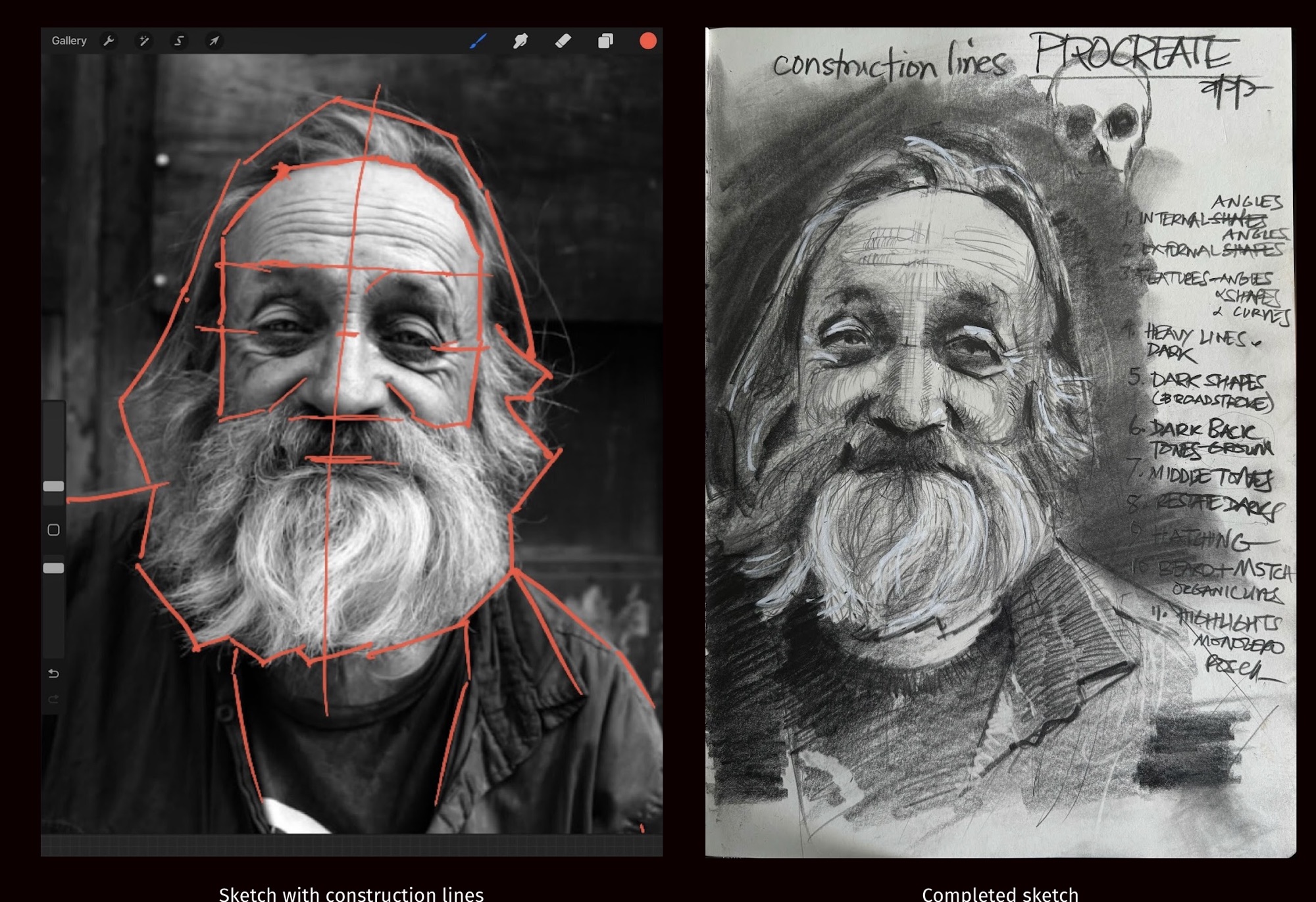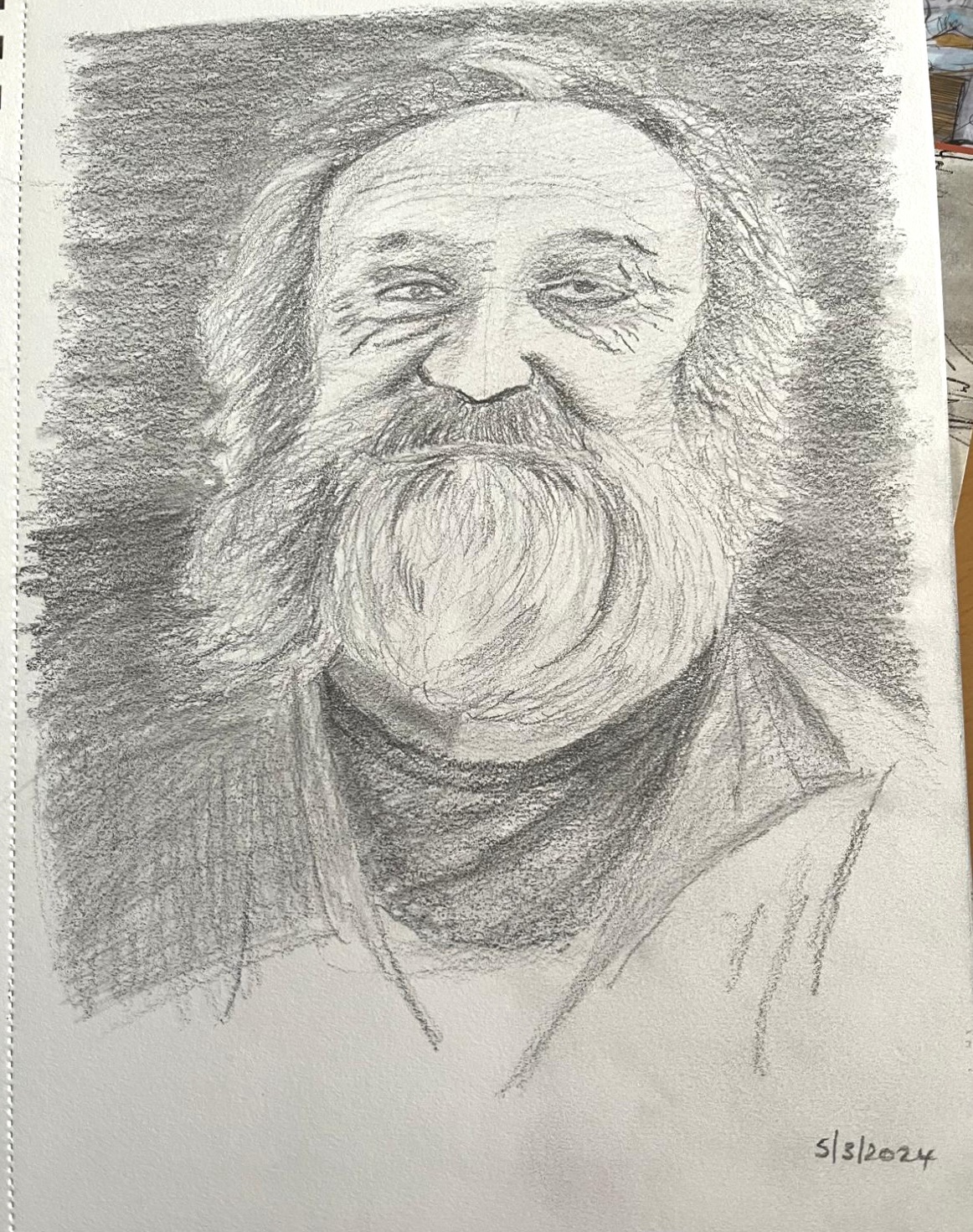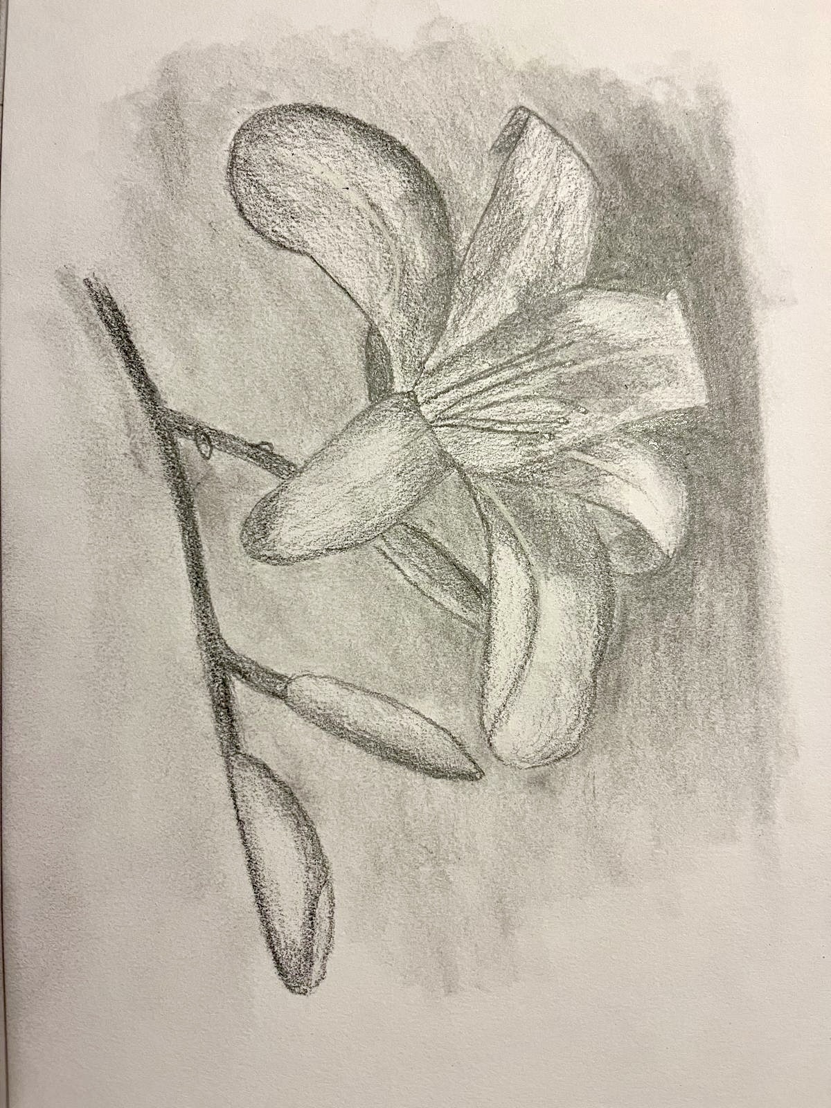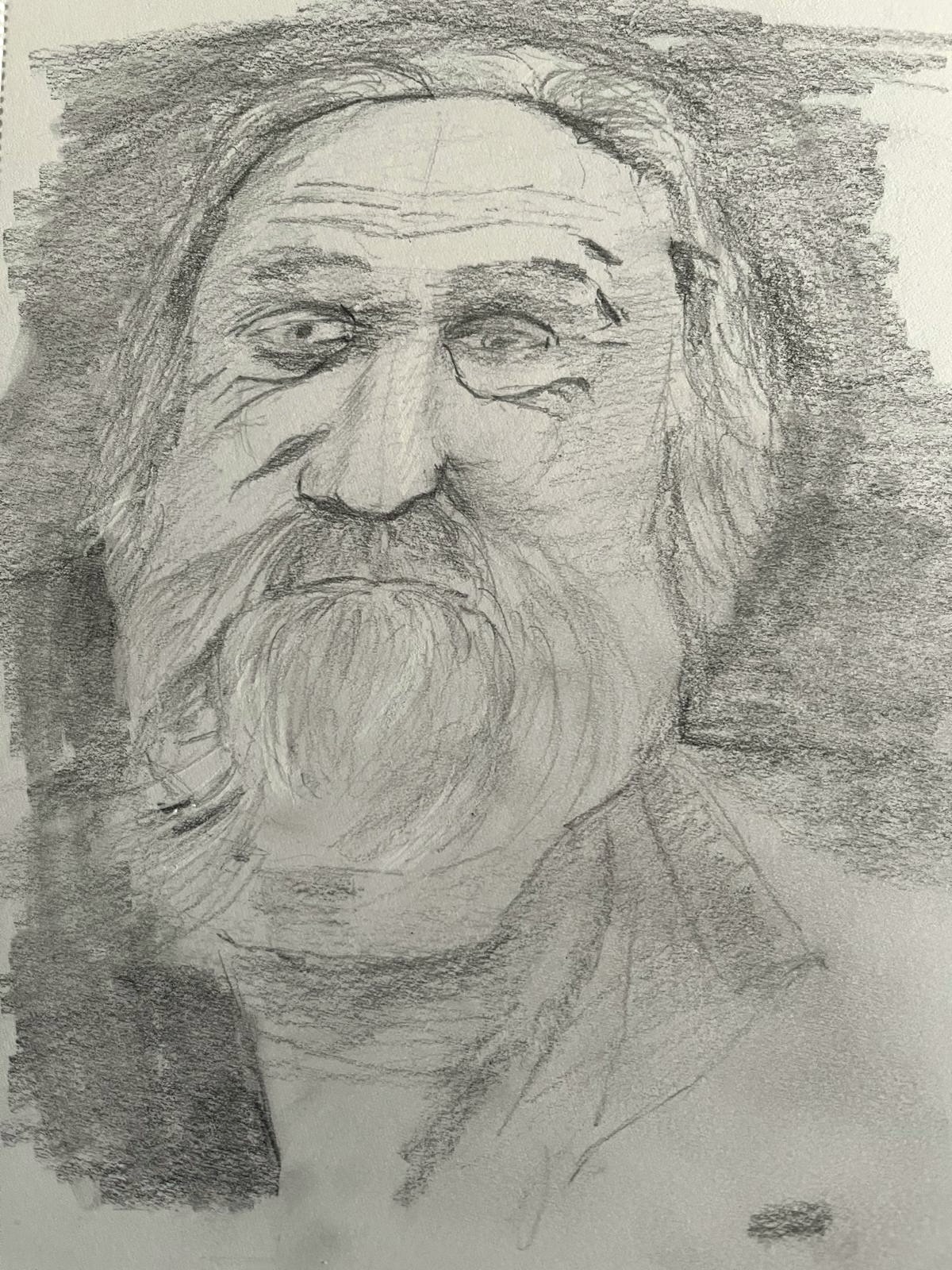 Brenda sketched the old man twice, once live and once on catch up. She also sketched a lily using the same techniques.