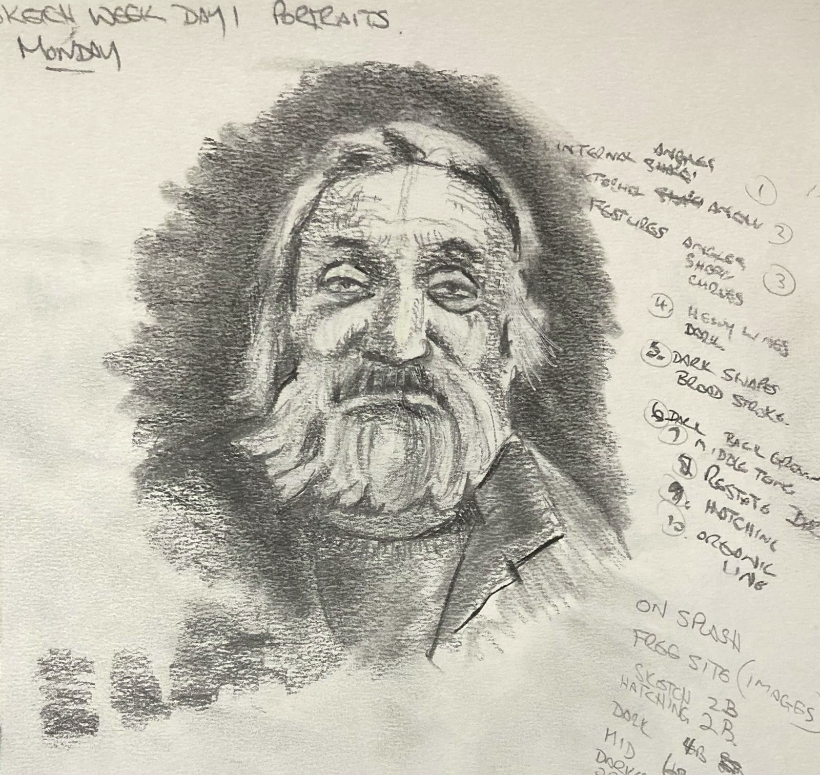 You could join a Facebook page if you wanted to see what other artists created. In the week we drew two portraits, a figure, a landscape and an animal.