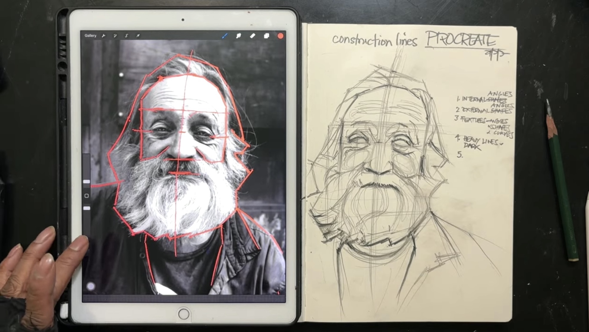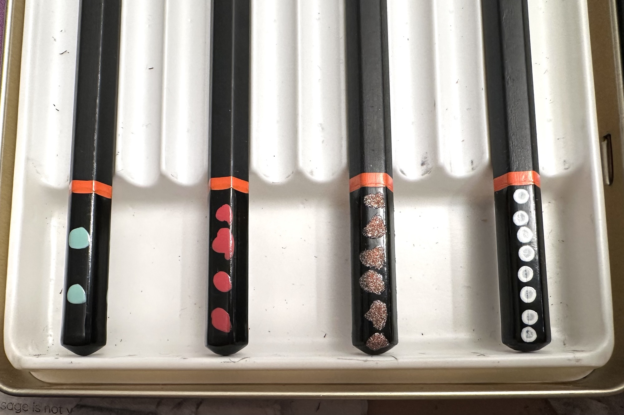 Tracy used an iPad for the reference pictures and after finding it difficult to swap between pencils quickly she used nail varnish to put dots on the pencils to see 2B to 8B much easier.