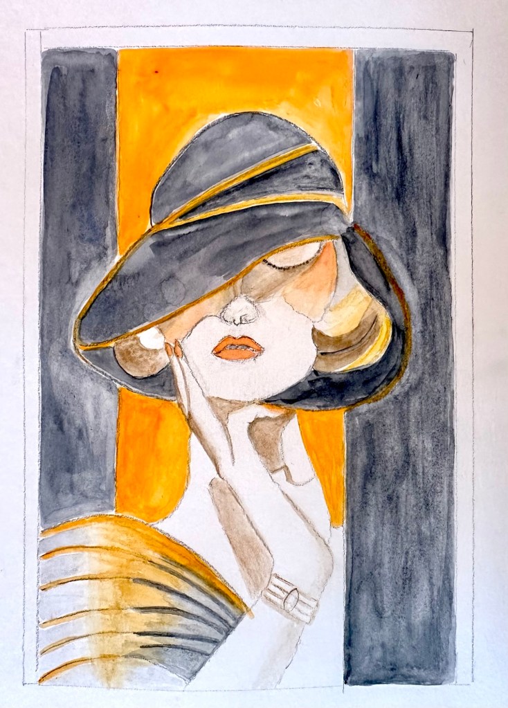 Art Deco is very broad subject, so decide if you’d like to draw or paint people, buildings, objects, jewellery or one or two of each.